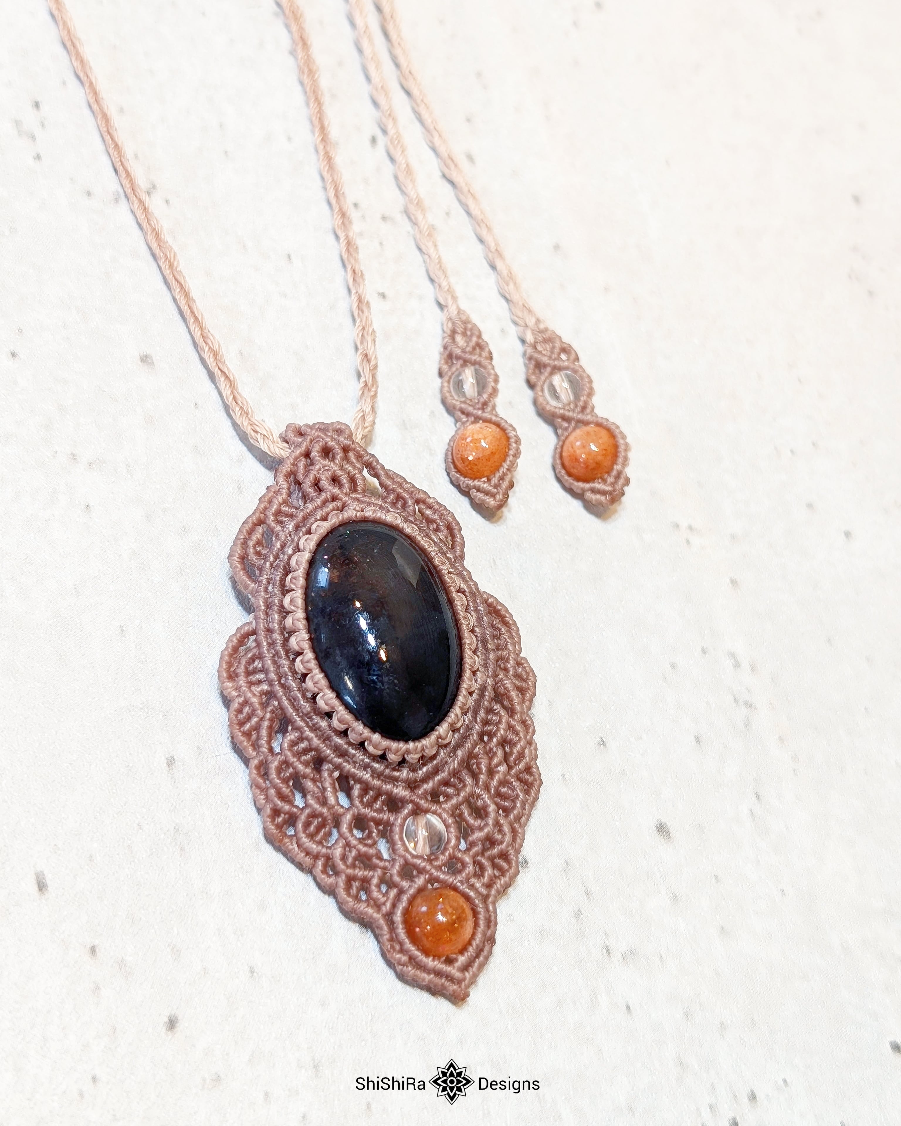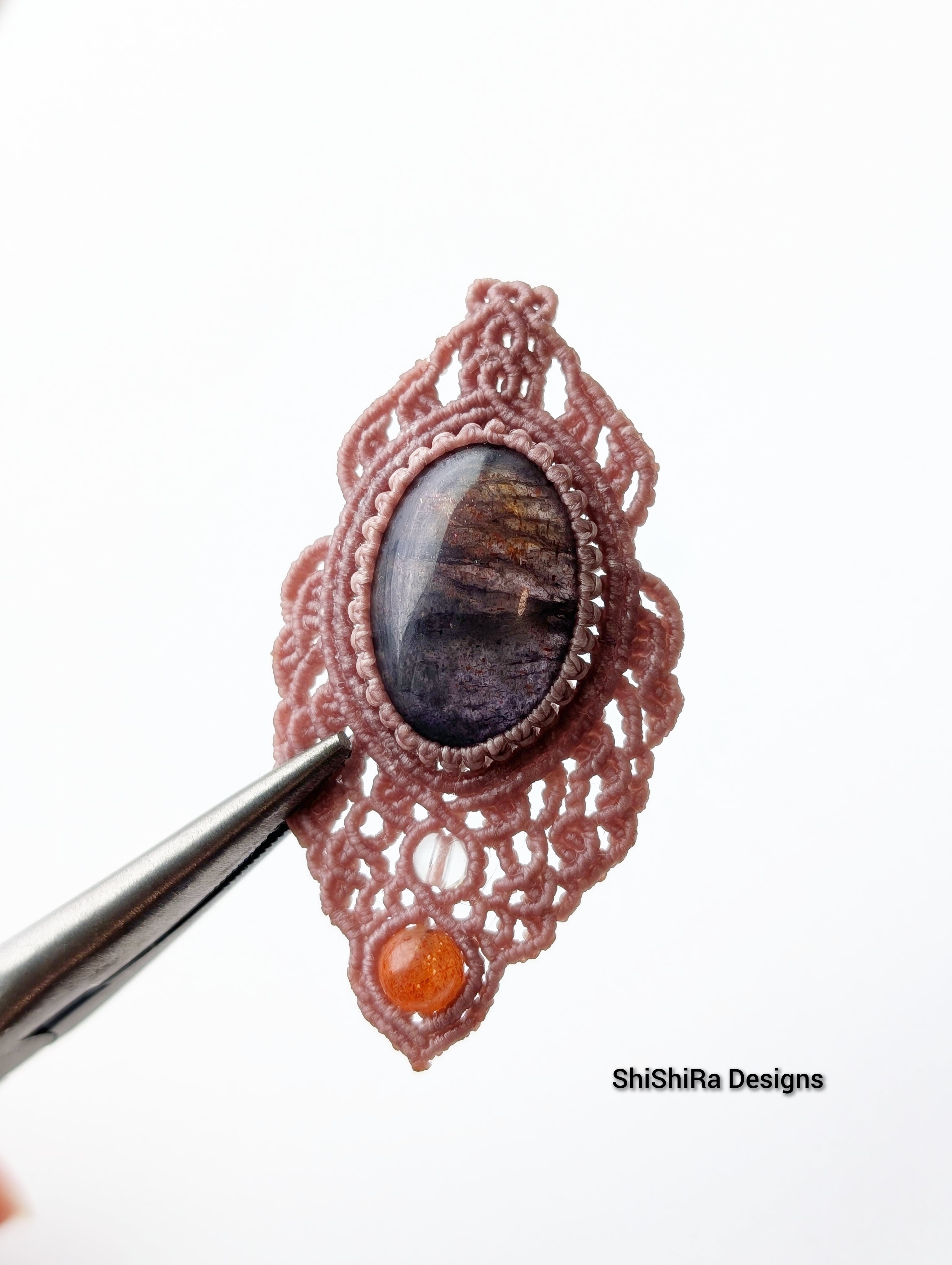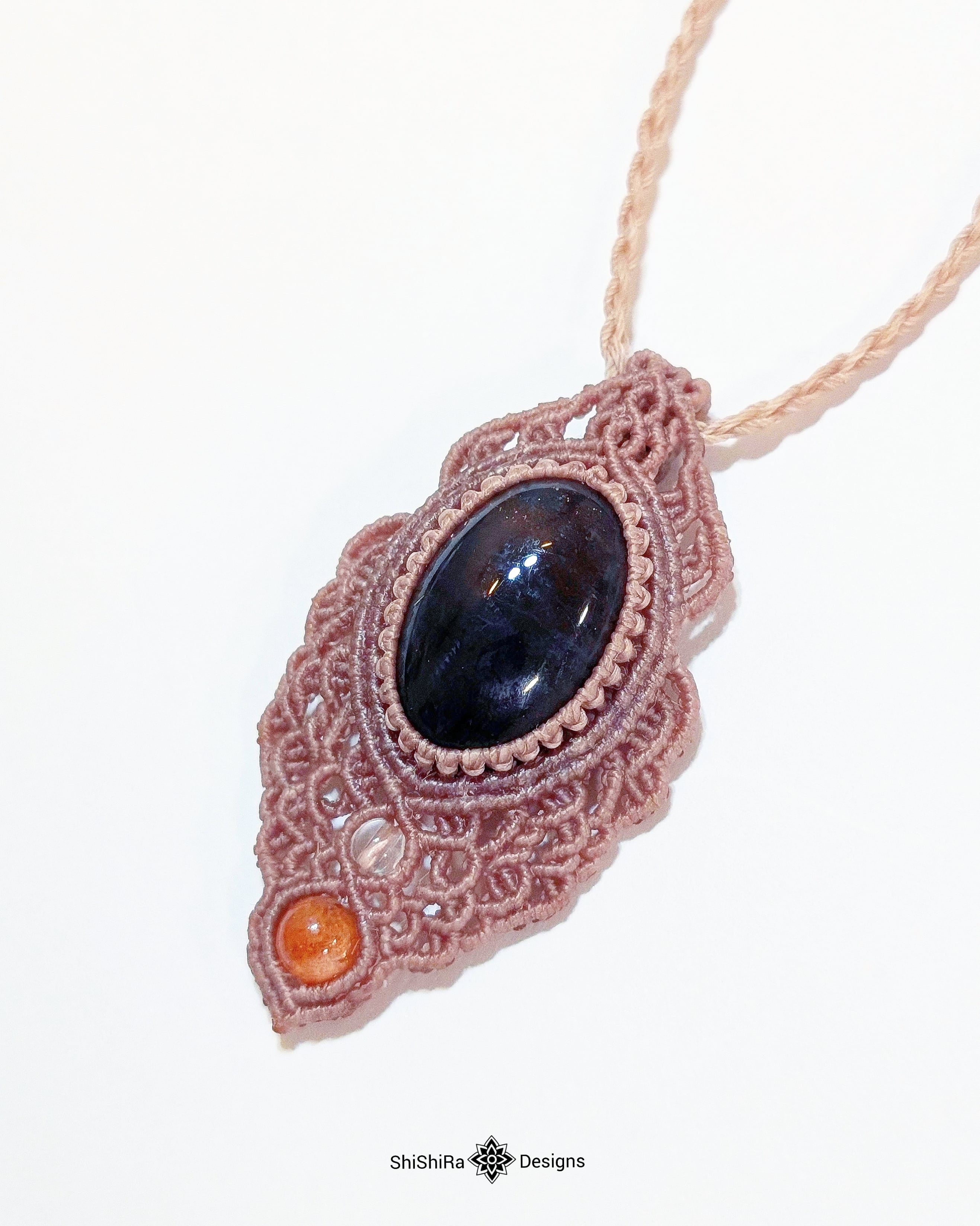 AAAアイオライトサンストーンのマクラメペンダント [金属アレルギー対応]