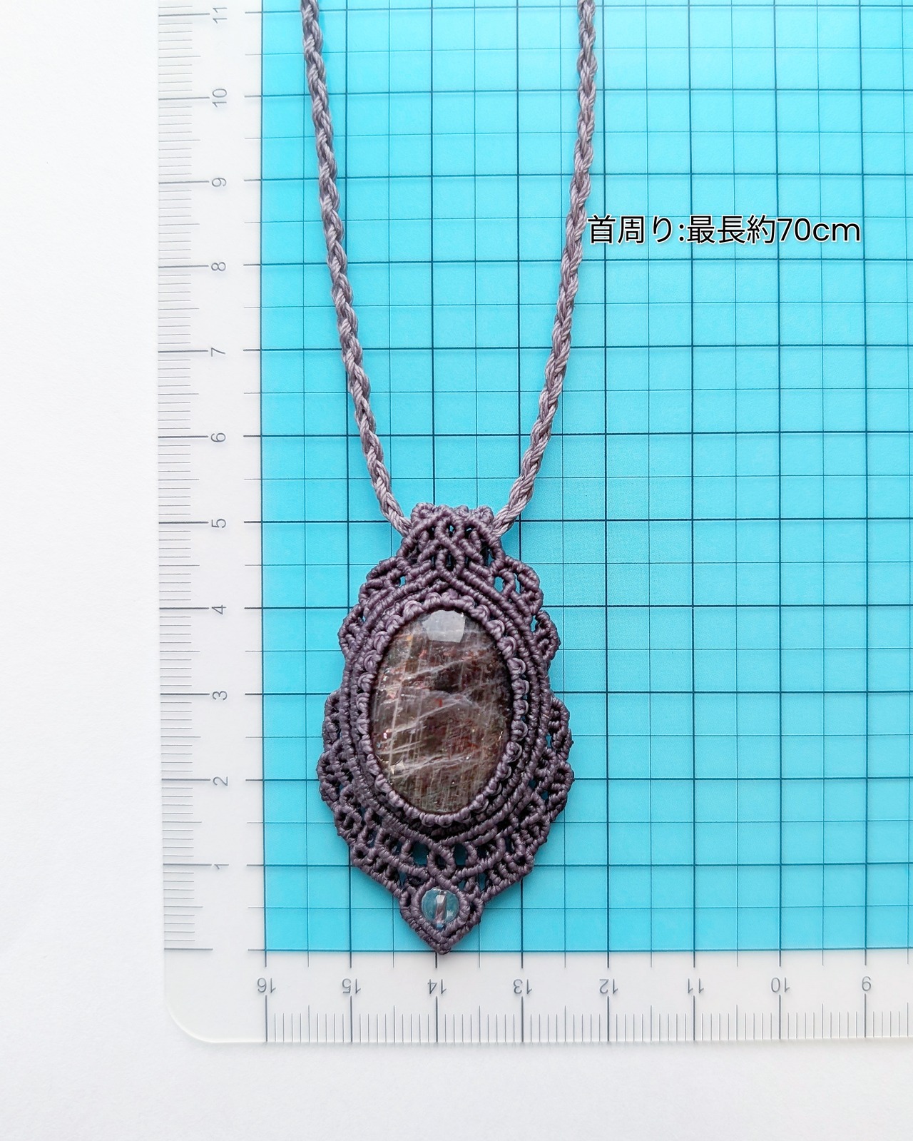 また、首紐のエンド部分にはスモーキークォーツも使いました。