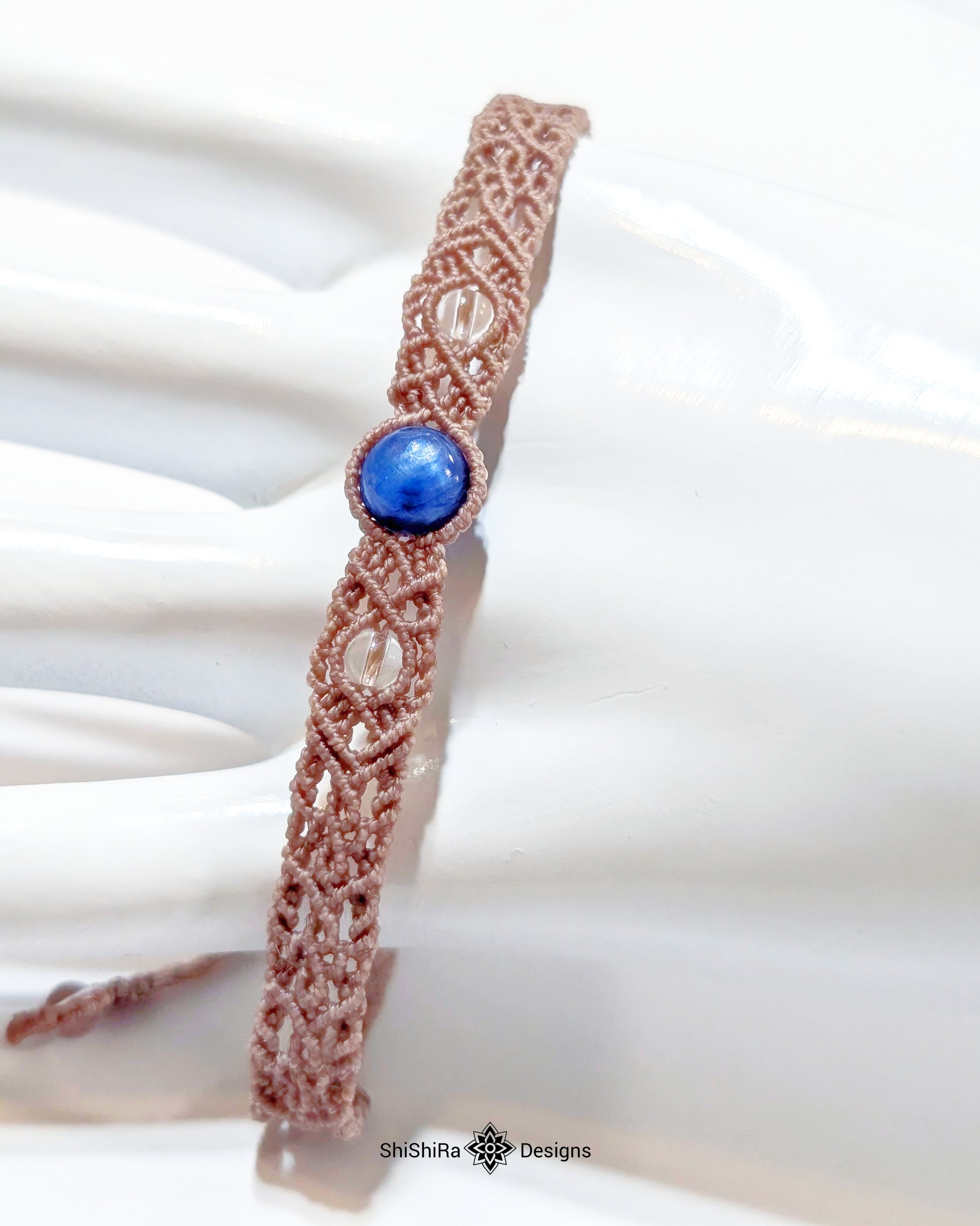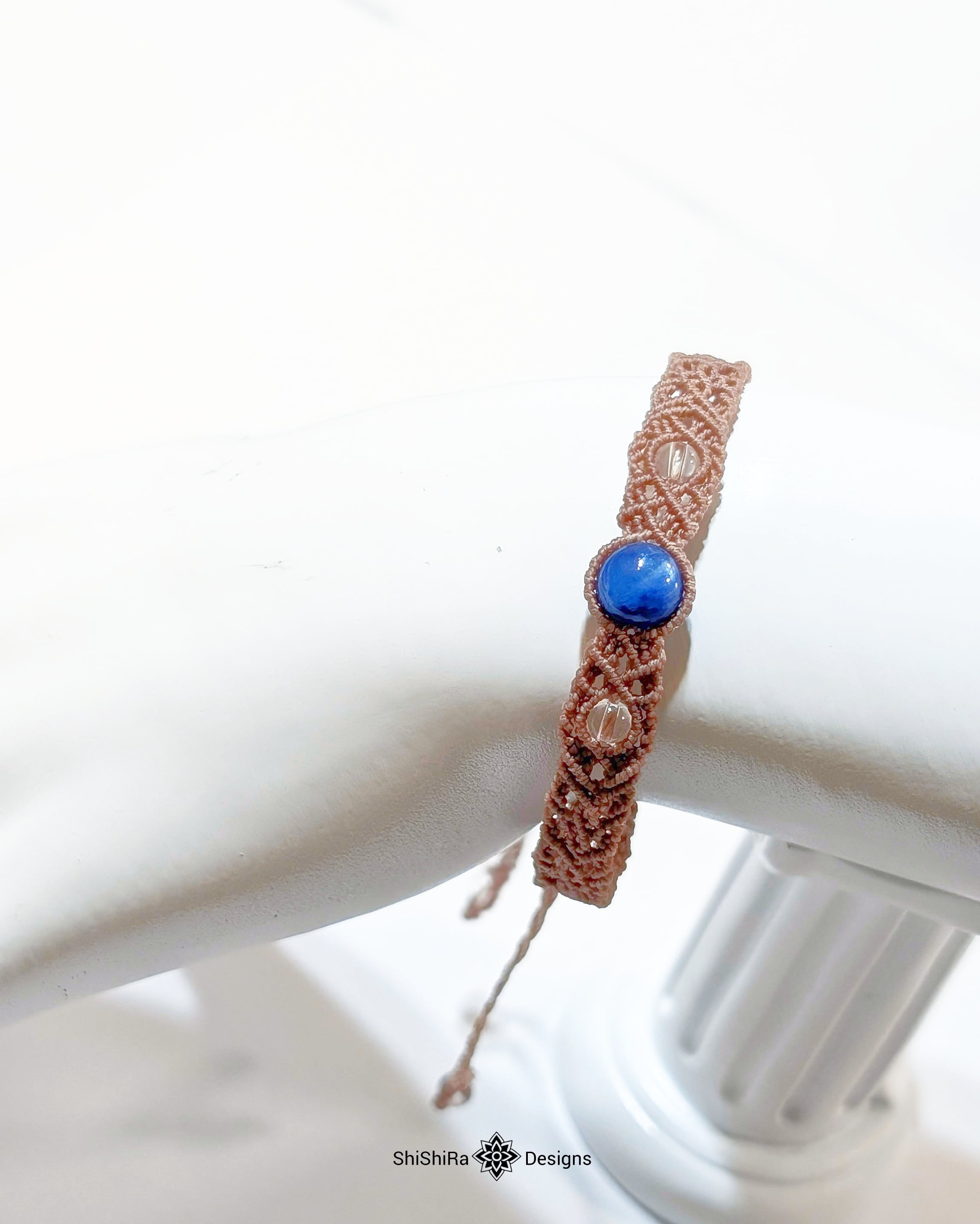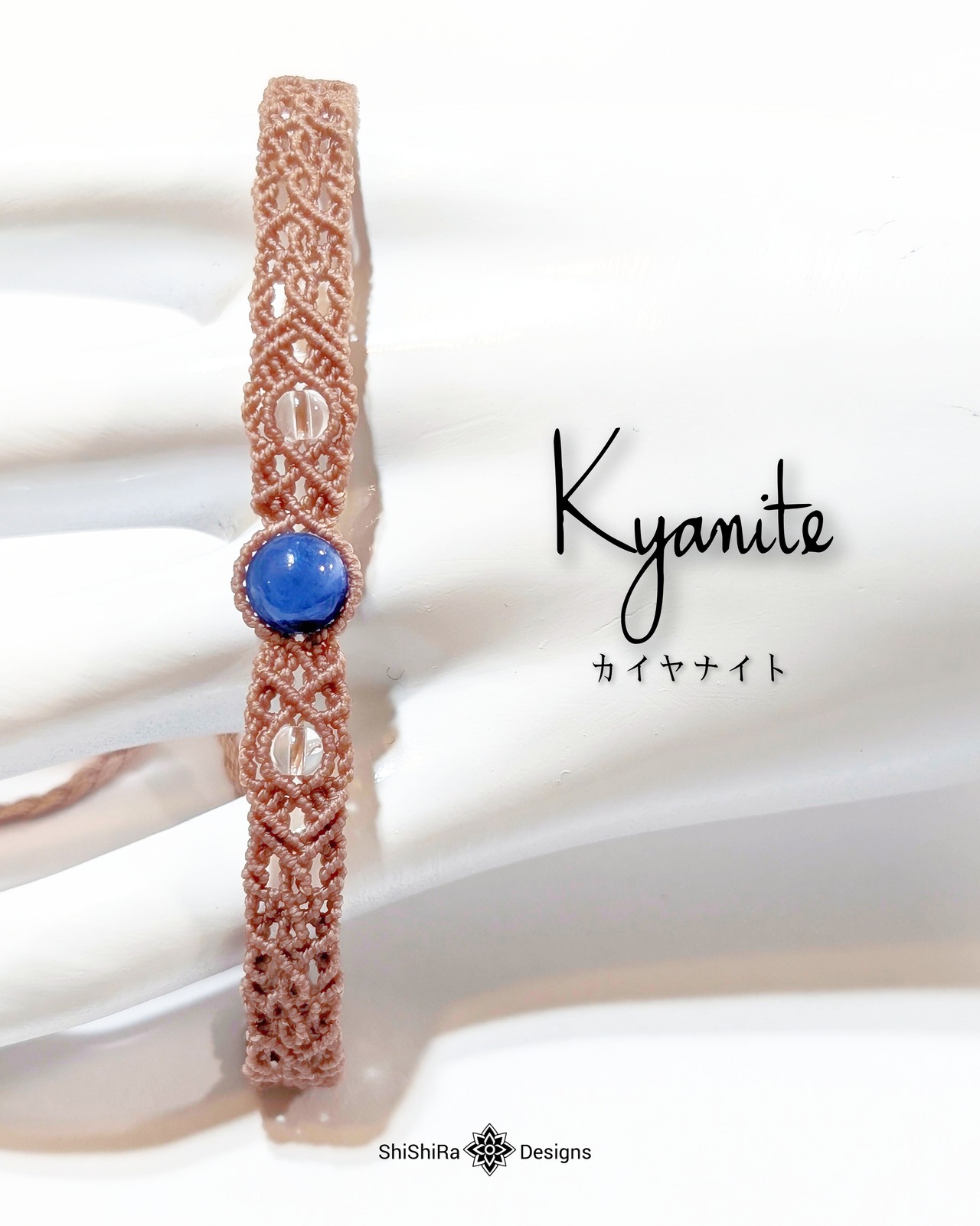こちらはカイヤナイトをマクラメ編みで編みこんだブレスレットです。