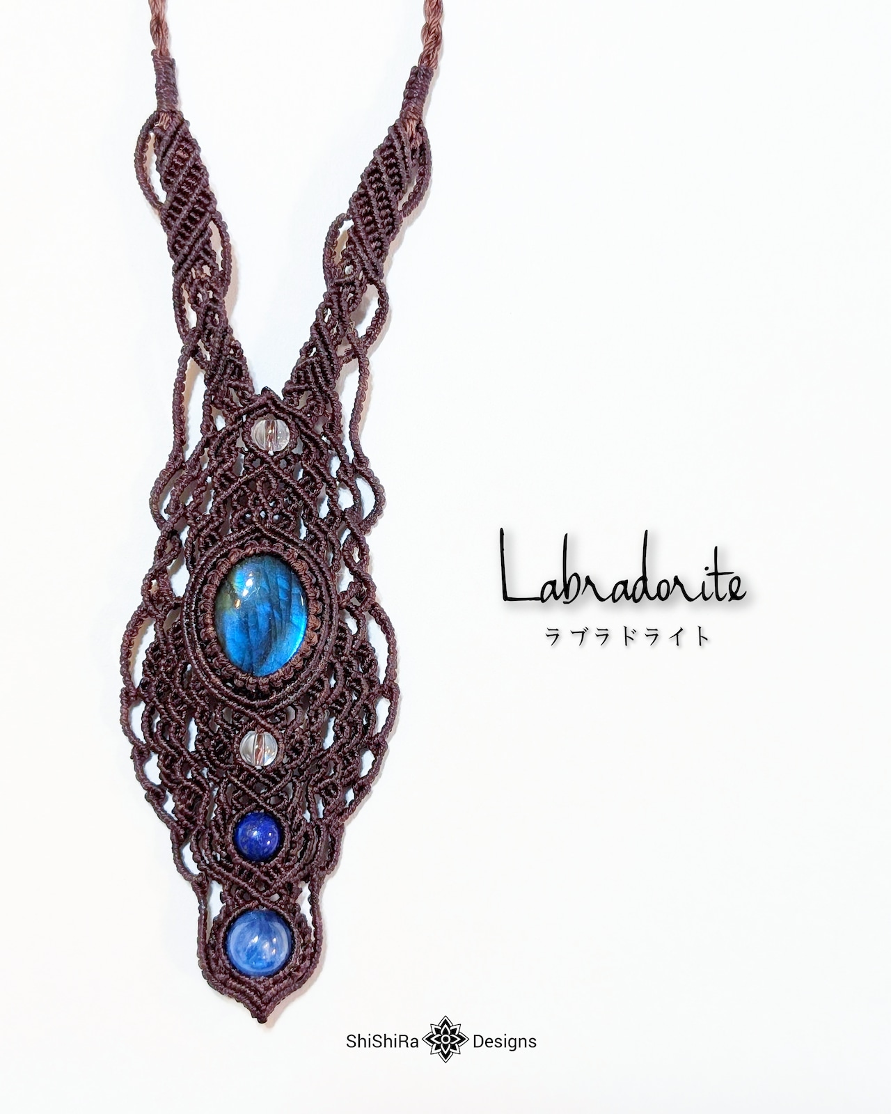 ShiShiRa Designsのオリジナルデザインであり、天然石の配置やマクラメの編み方は、一つとして同じものはありません。まさに、あなただけの特別な一点物です。