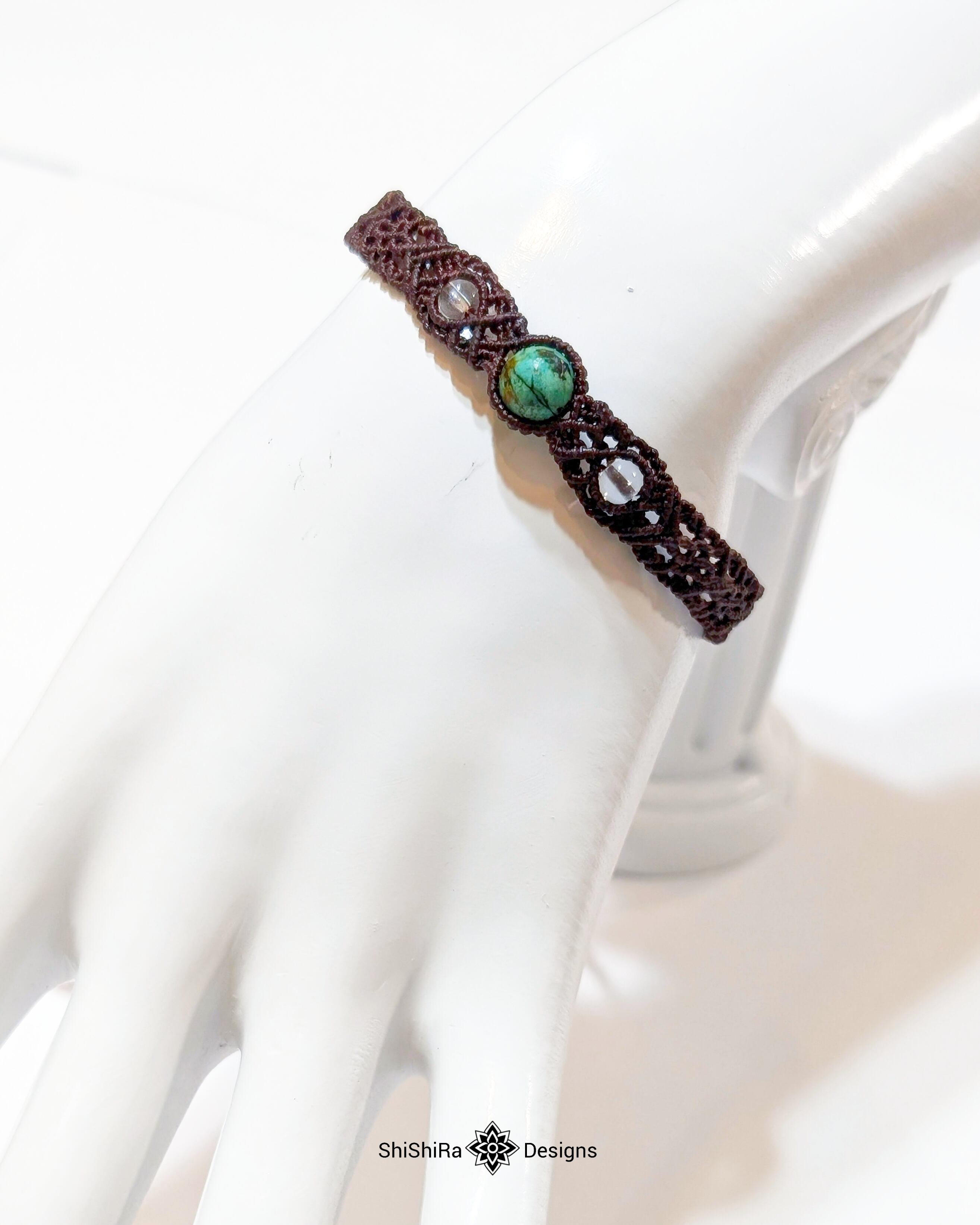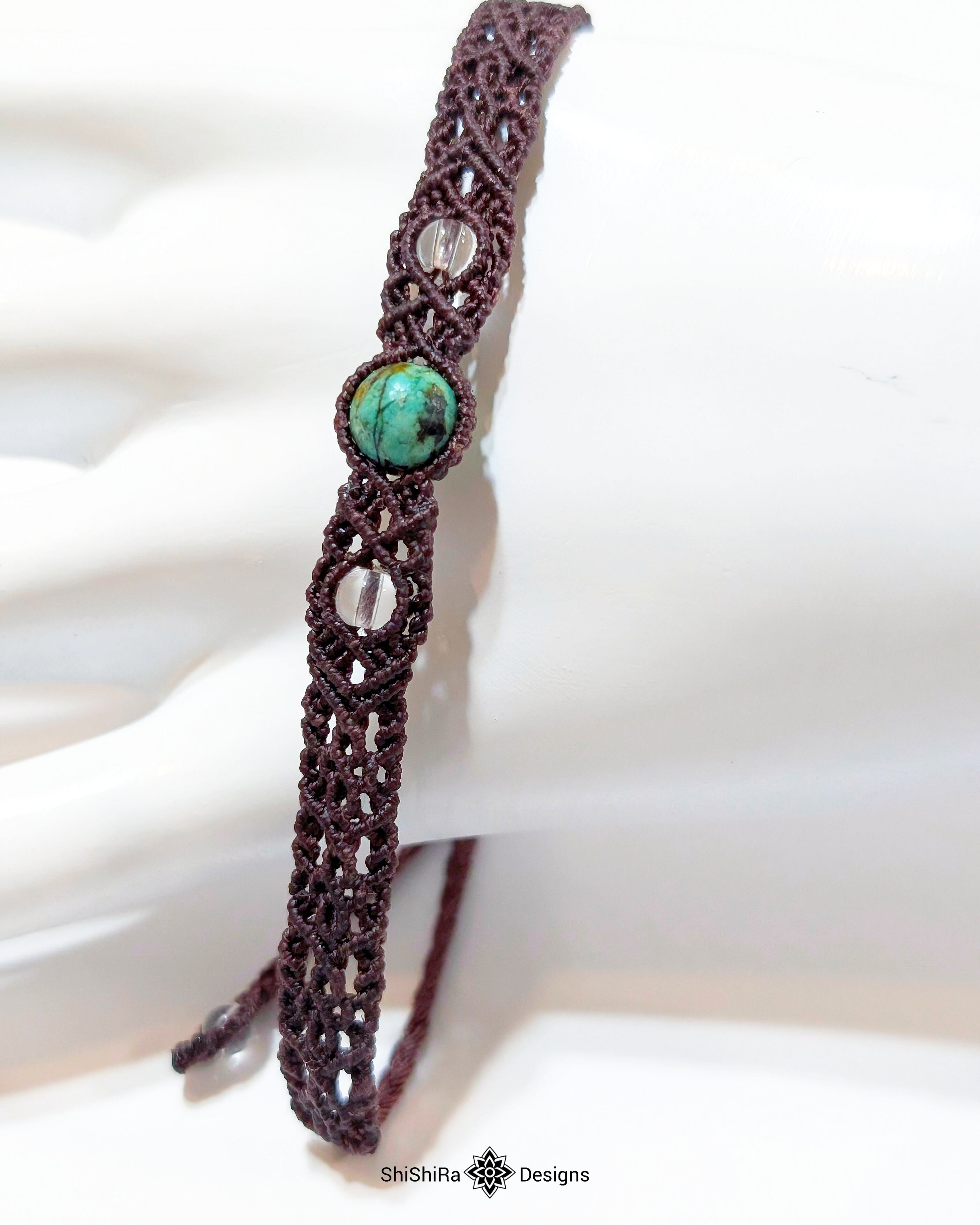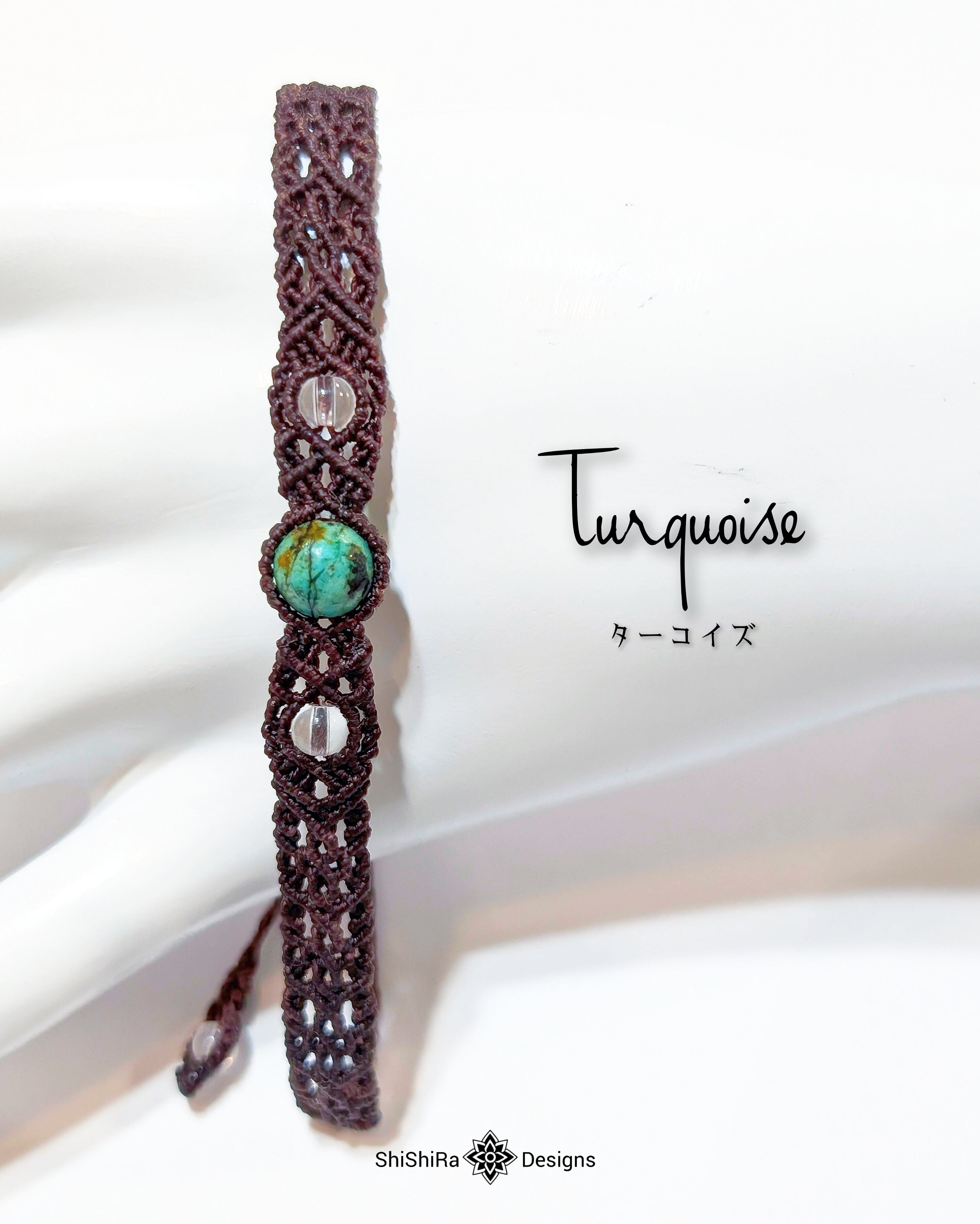 こちらはをアフリカンターコイズをマクラメ編みで編みこんだブレスレットです。