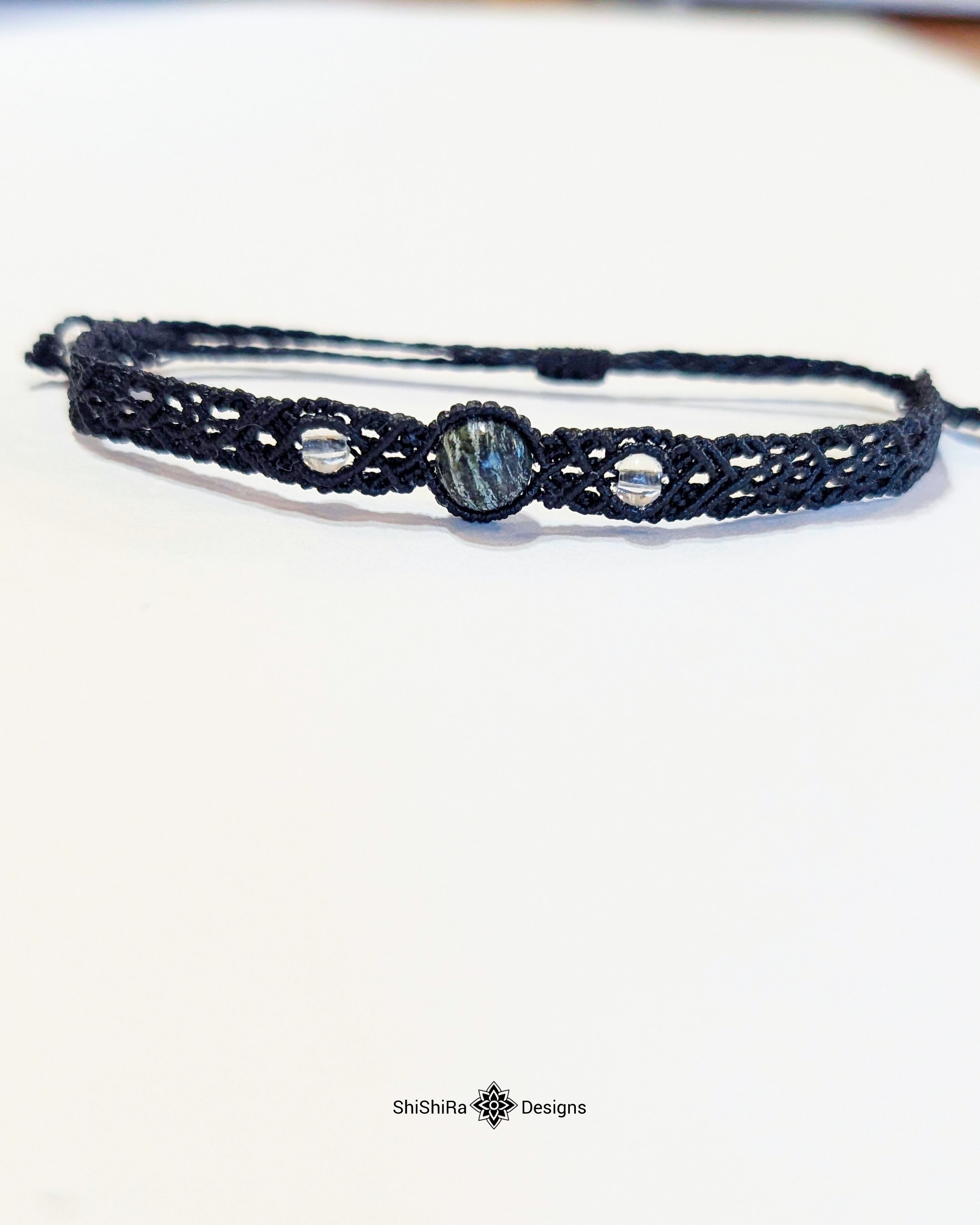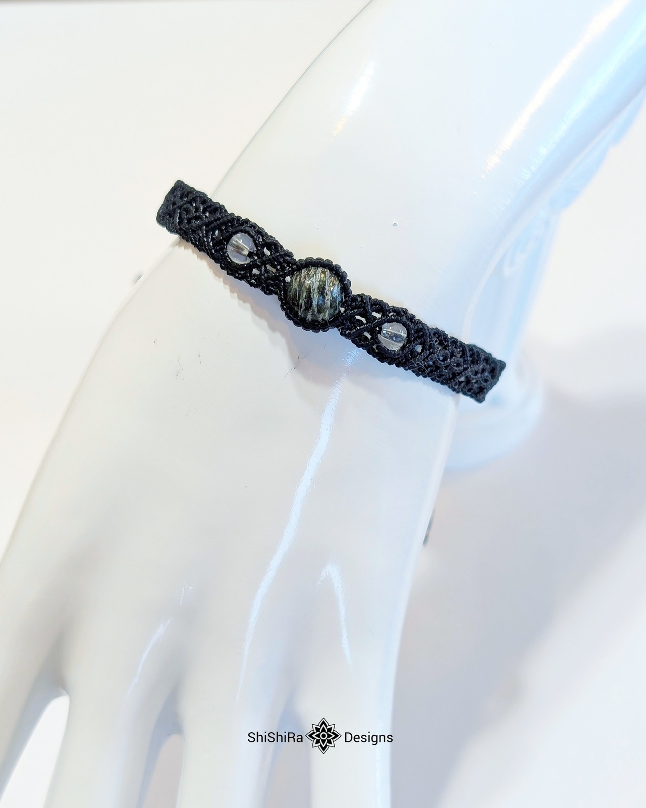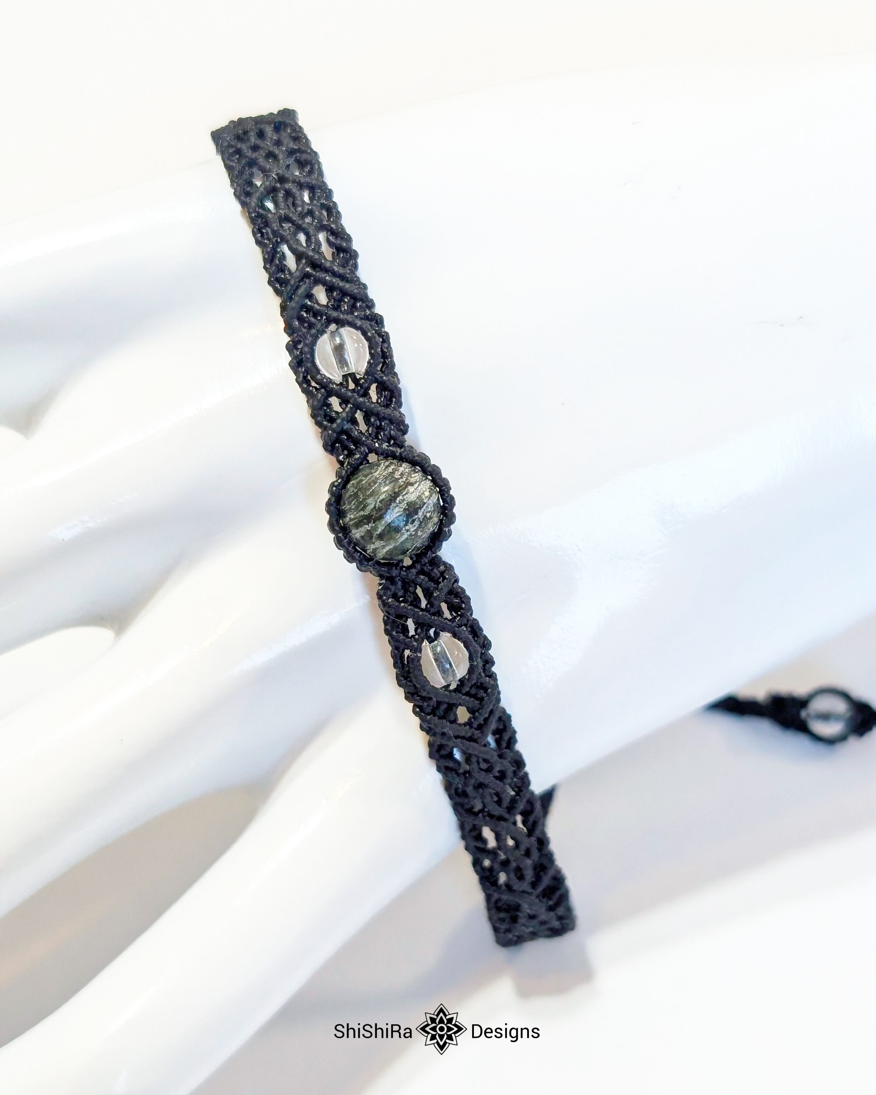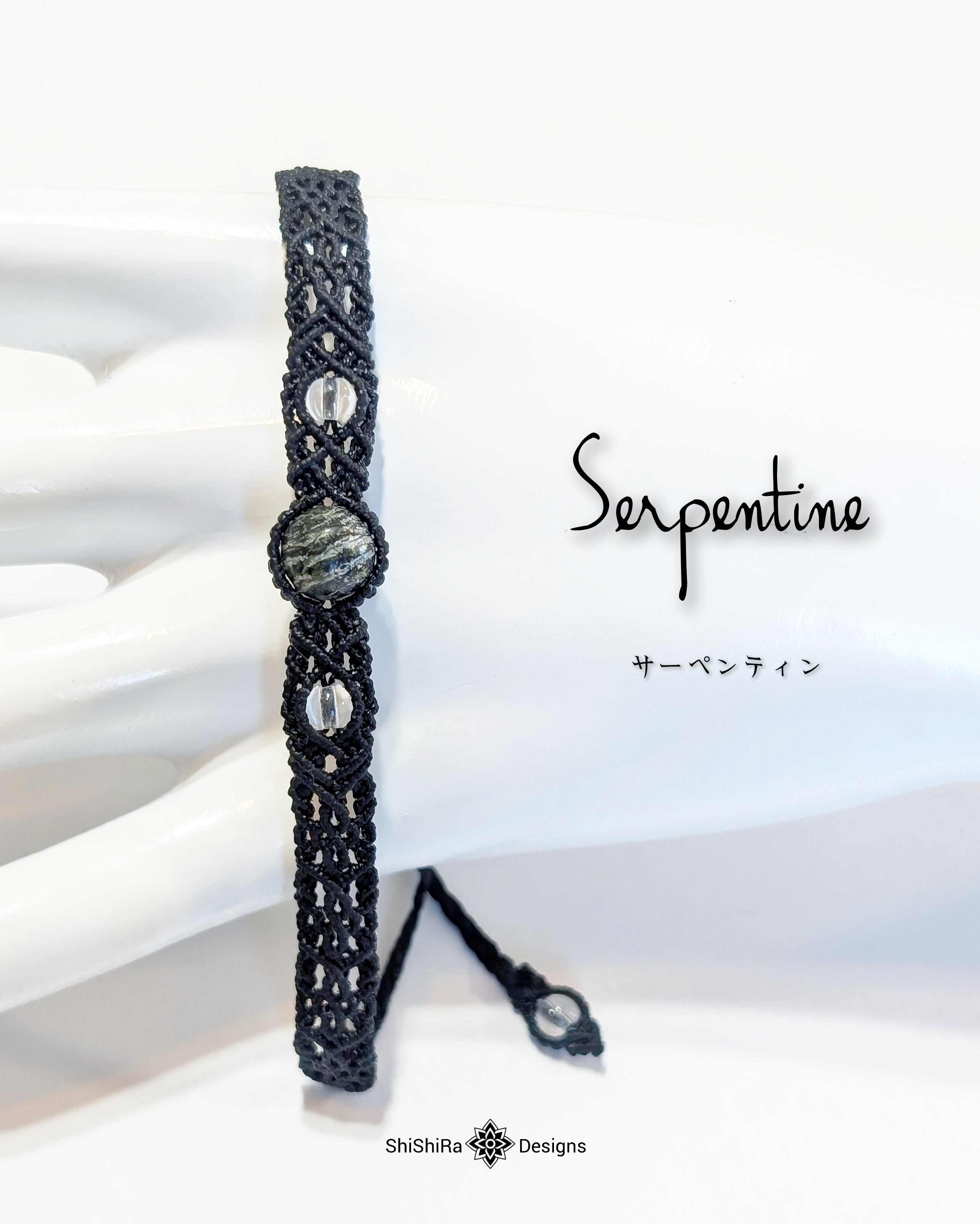 こちらはサーペンティンをマクラメ編みで編みこんだブレスレットです。