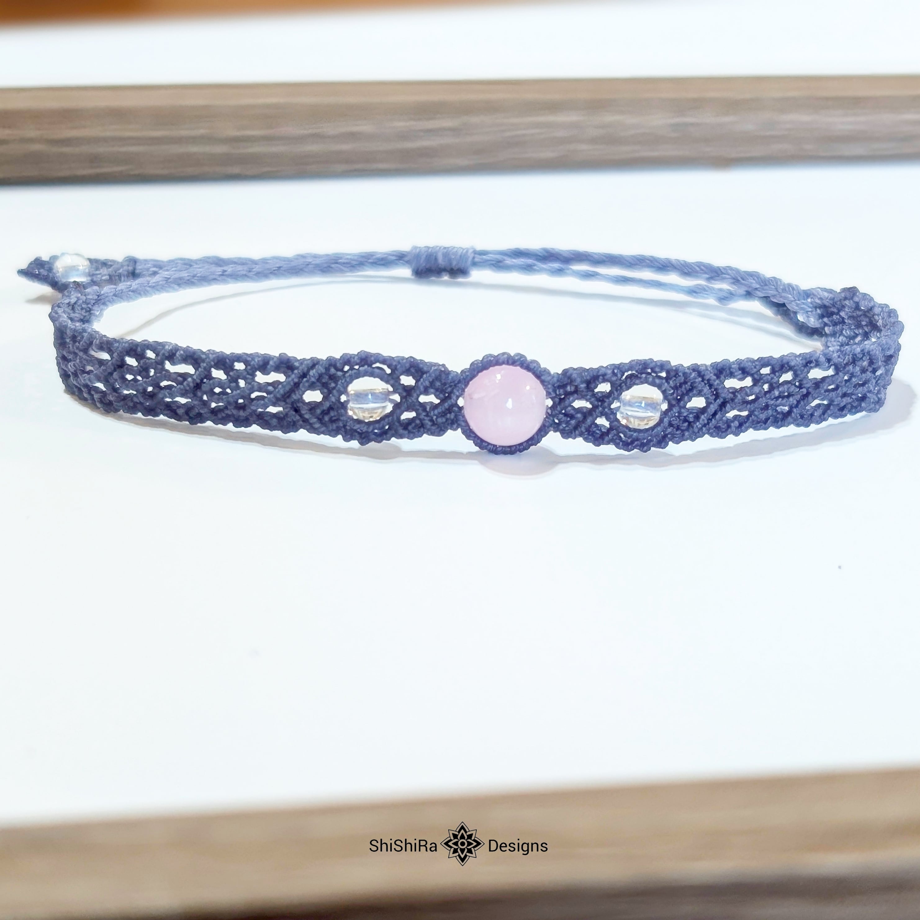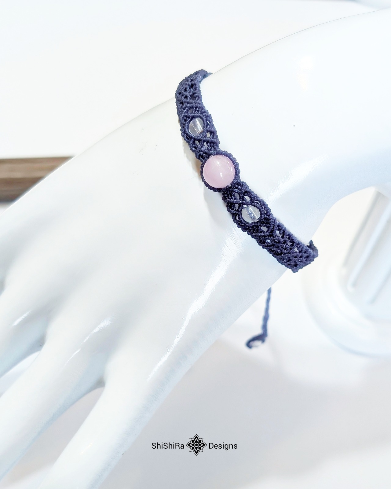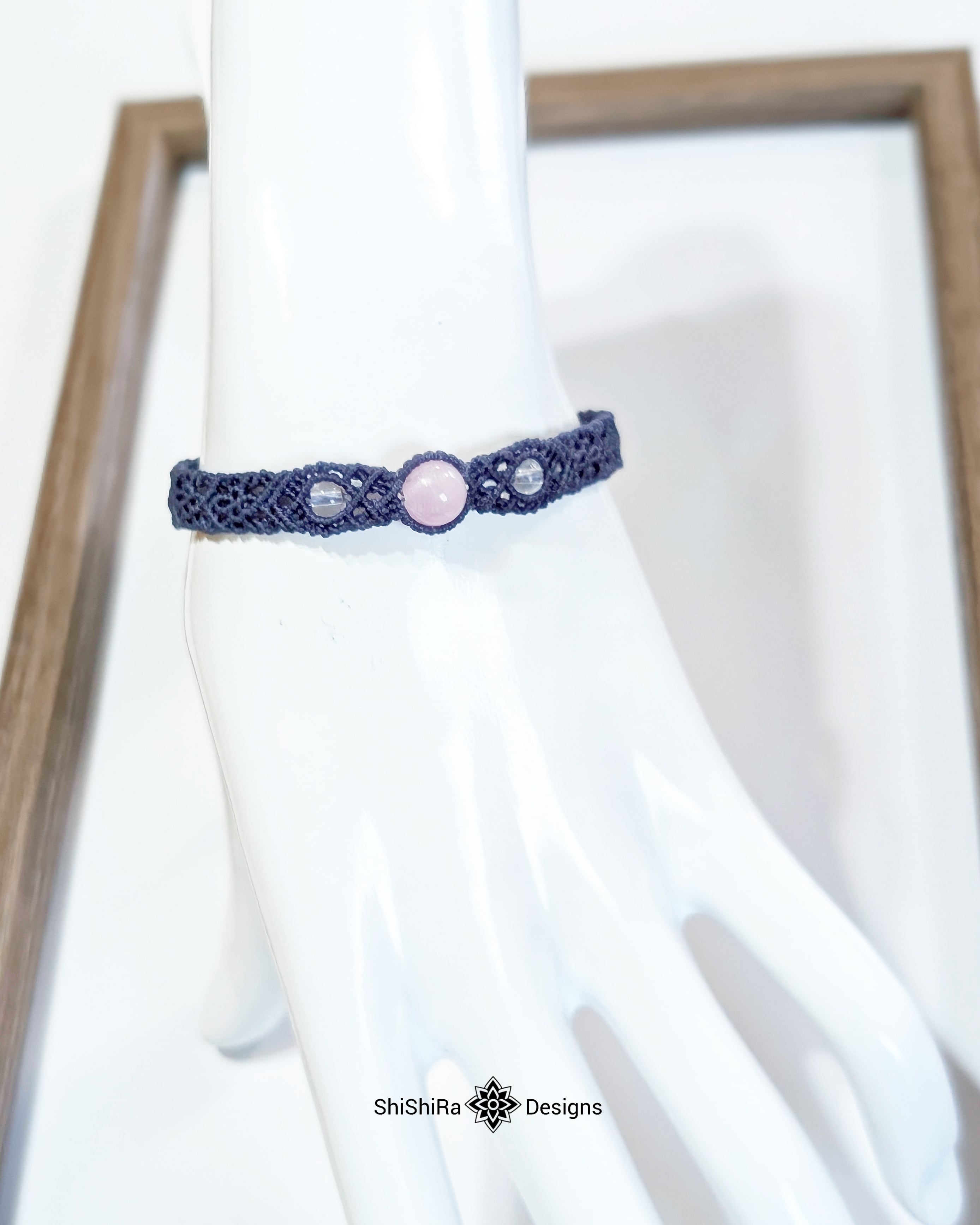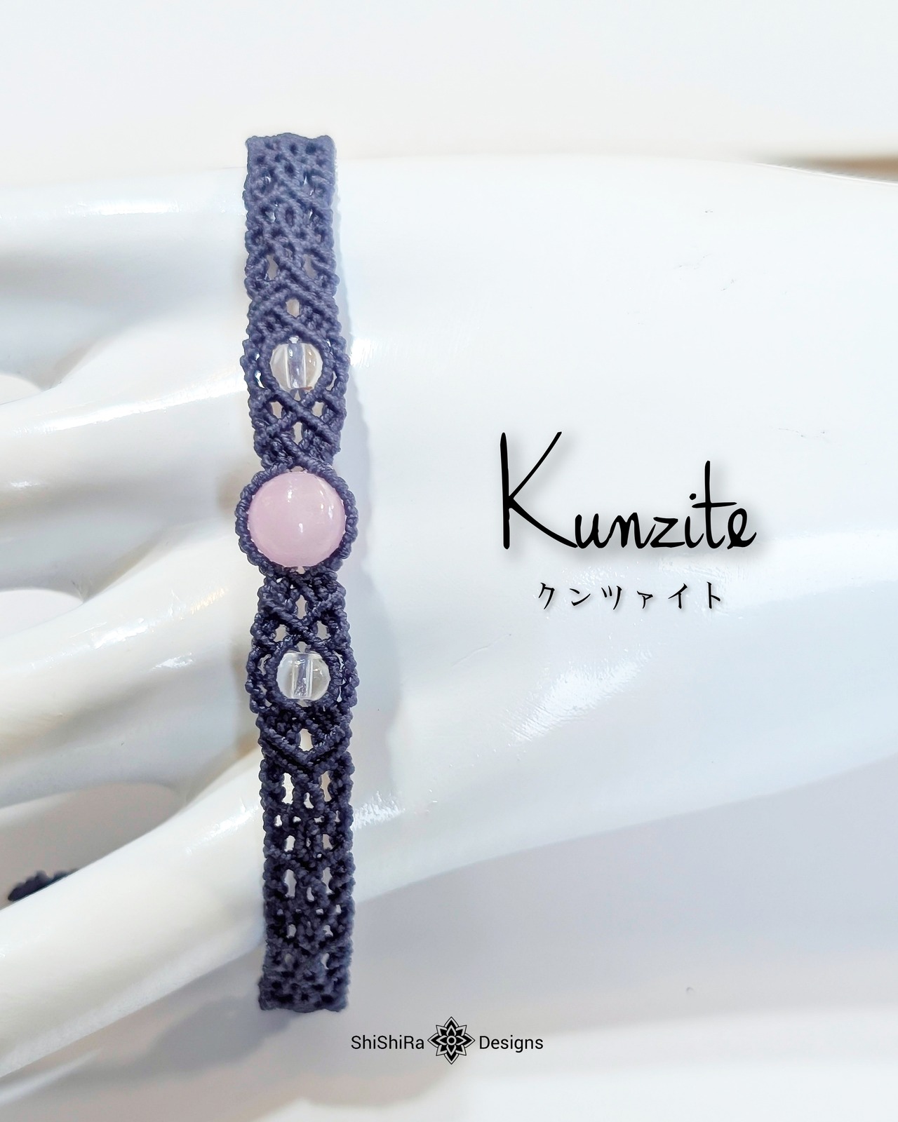 こちらはクンツァイトをマクラメ編みで編みこんだブレスレットです。