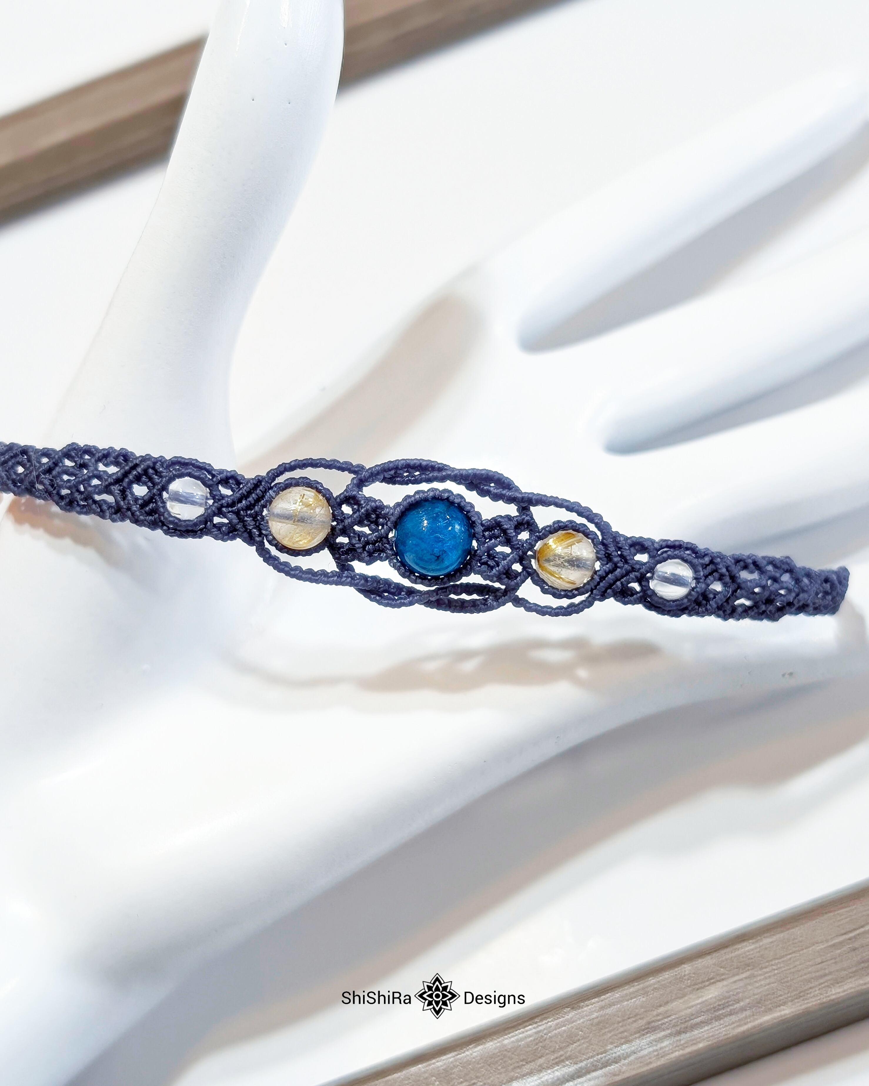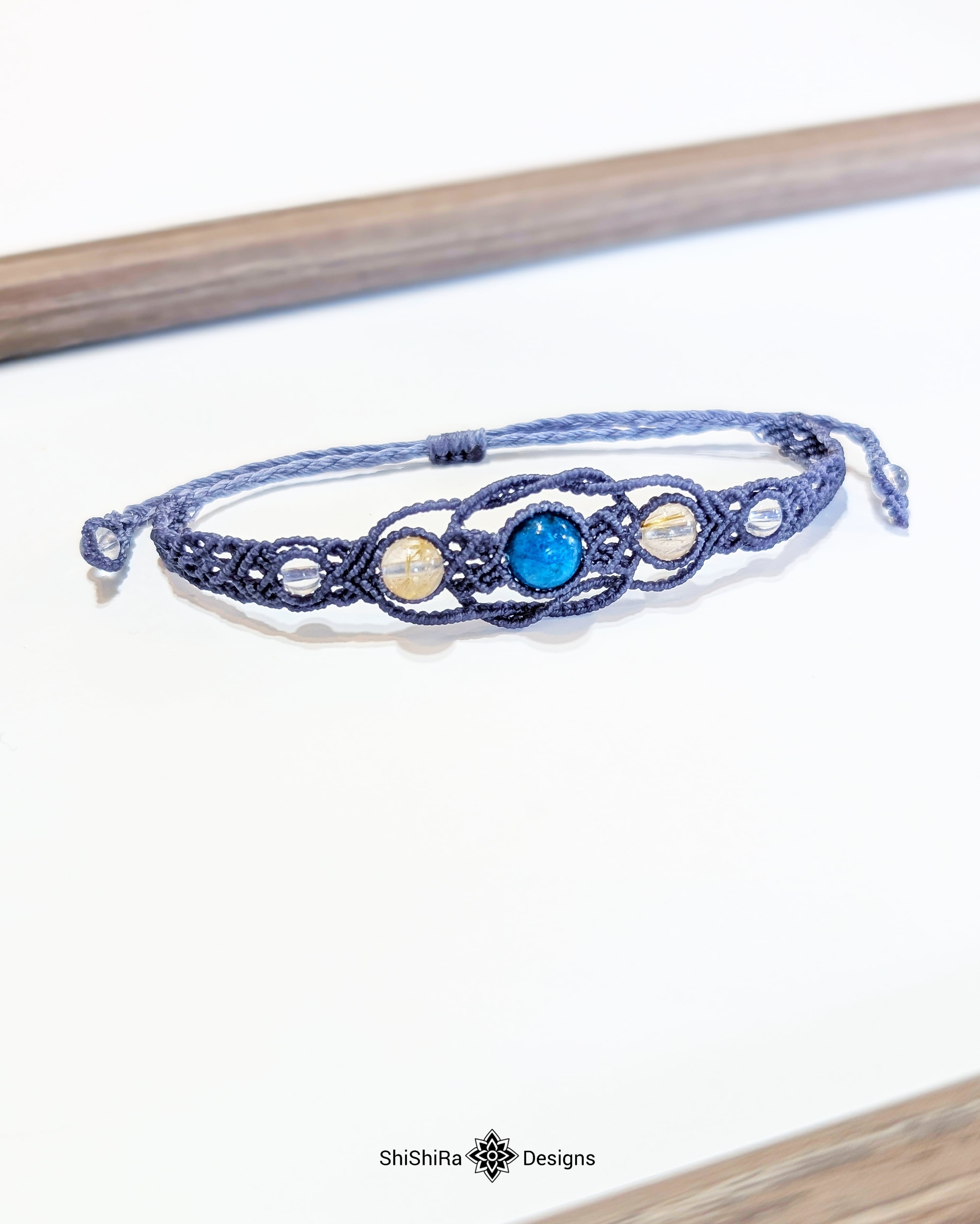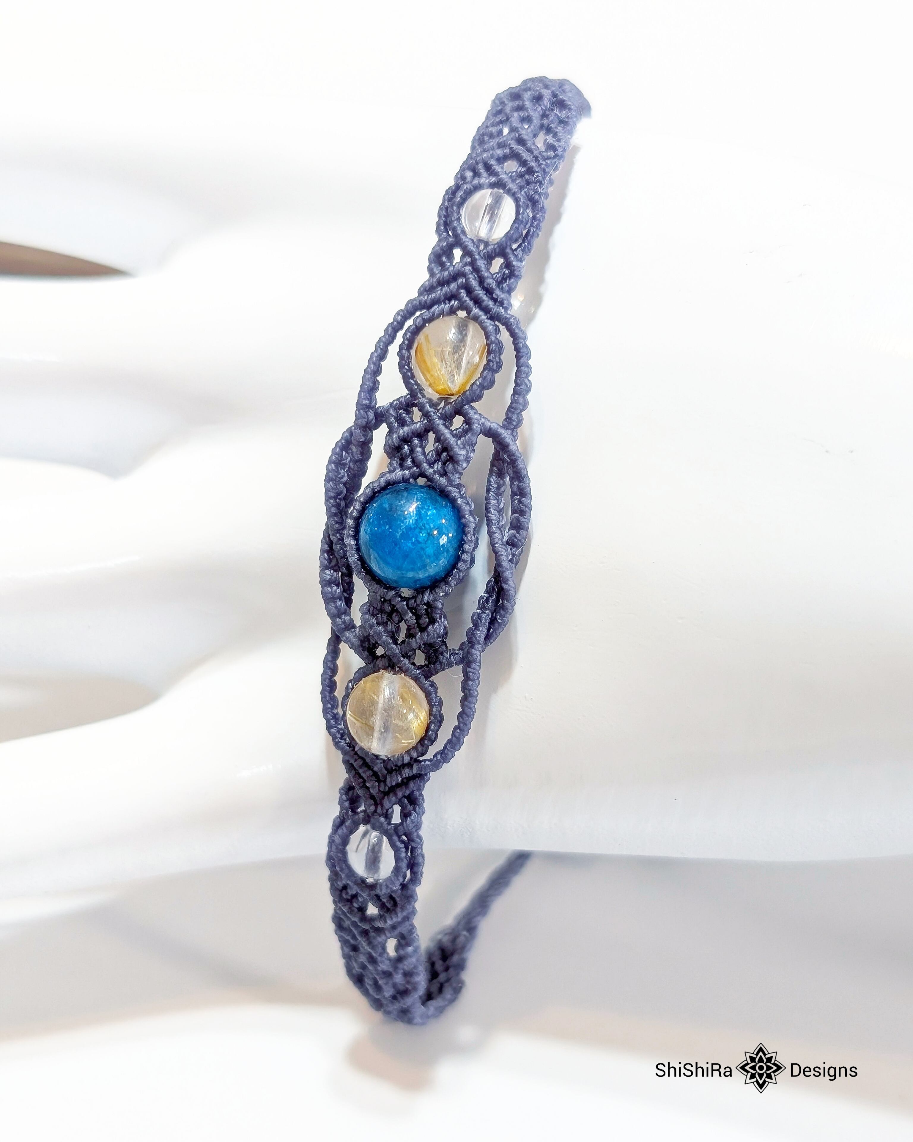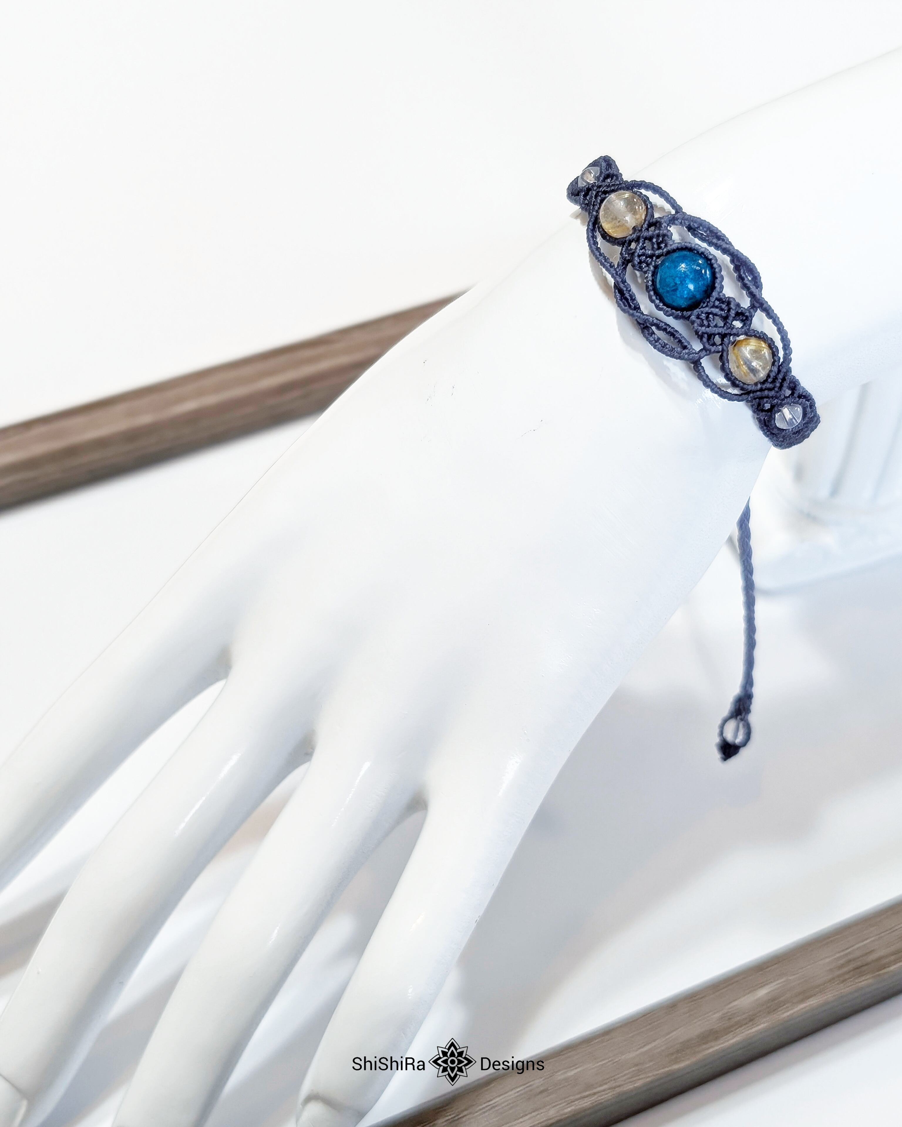鮮やかな色彩が魅力 ブルーアパタイトとルチルクォーツのうねうねマクラメブレスレット