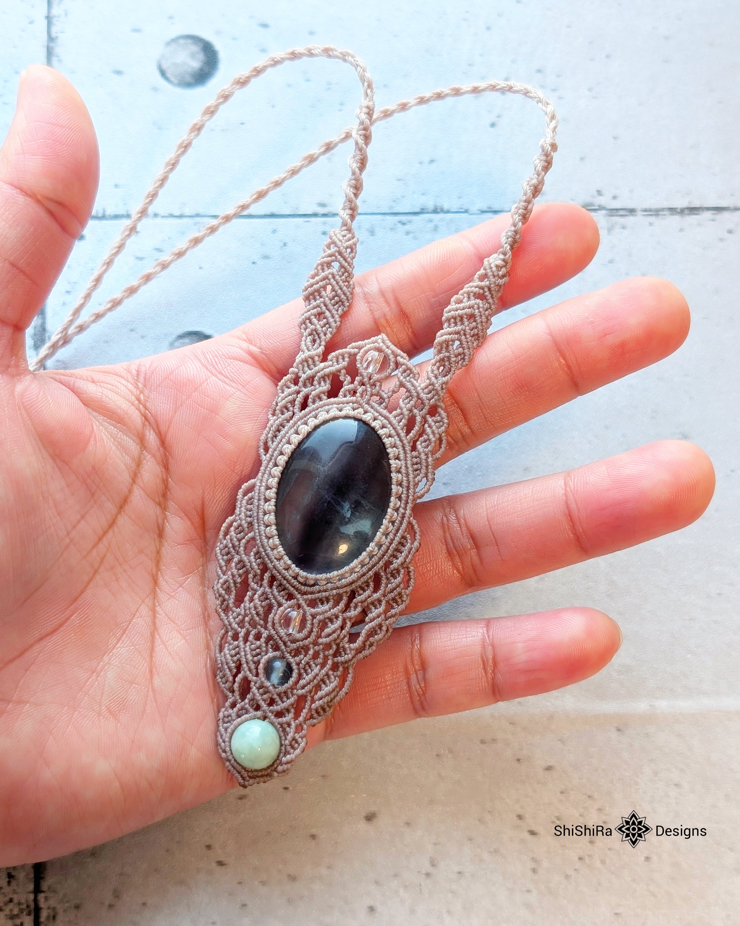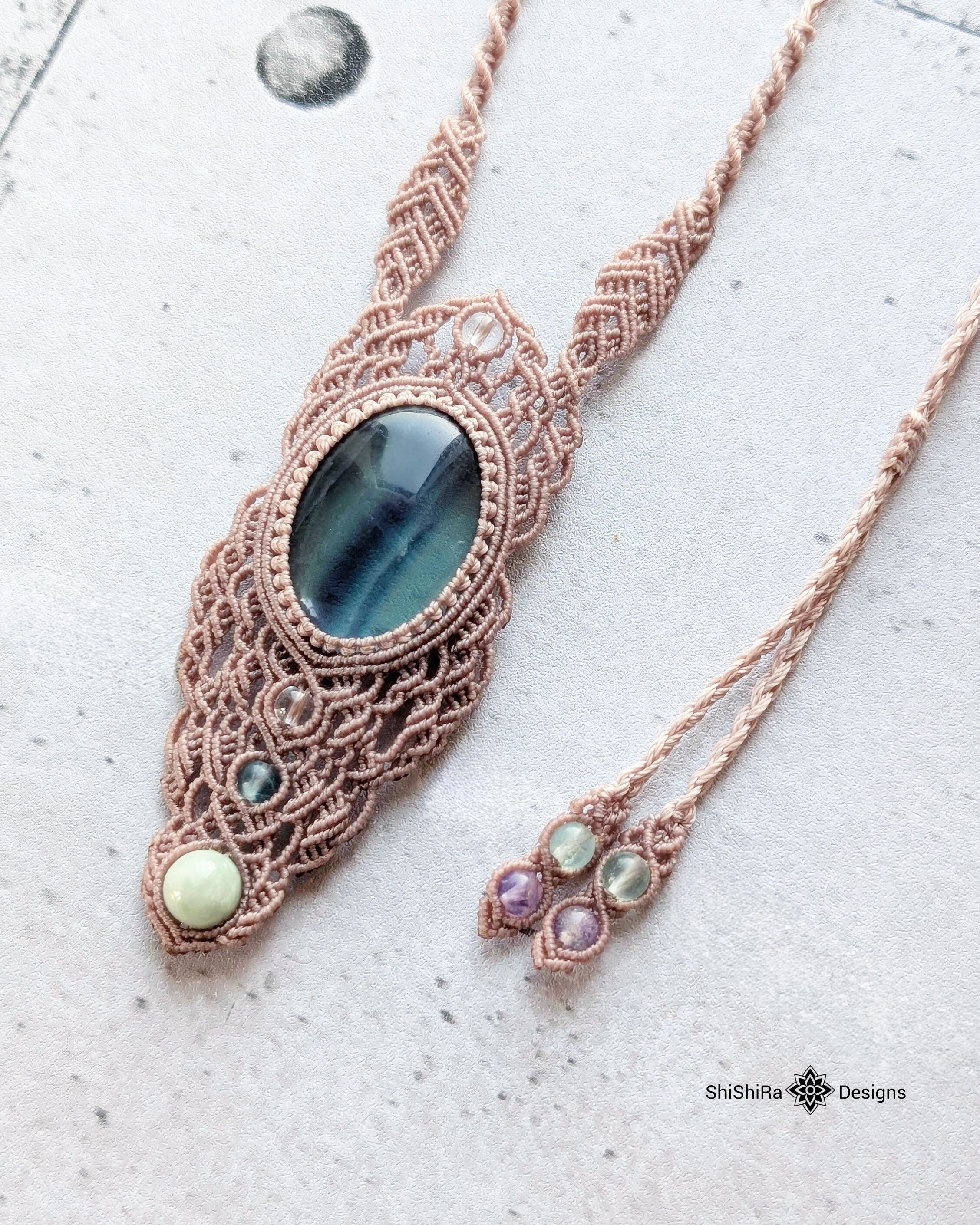 A.T様ご注文のフローライトを使用したマクラメペンダントです。