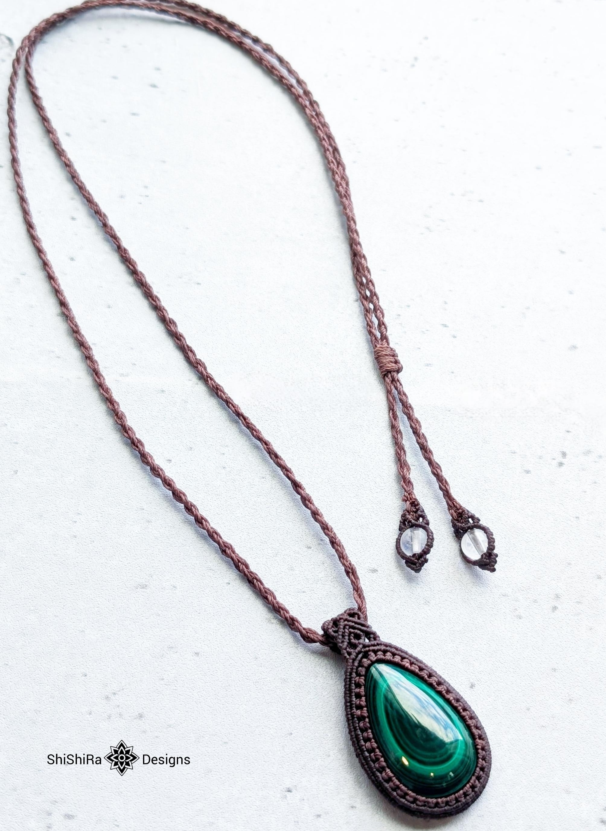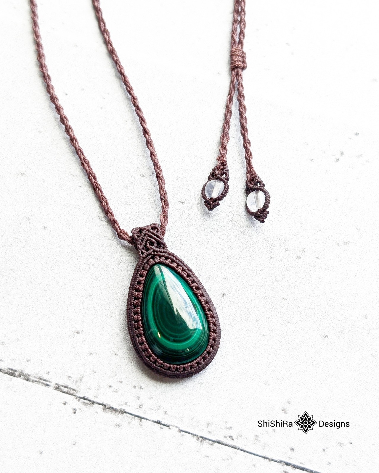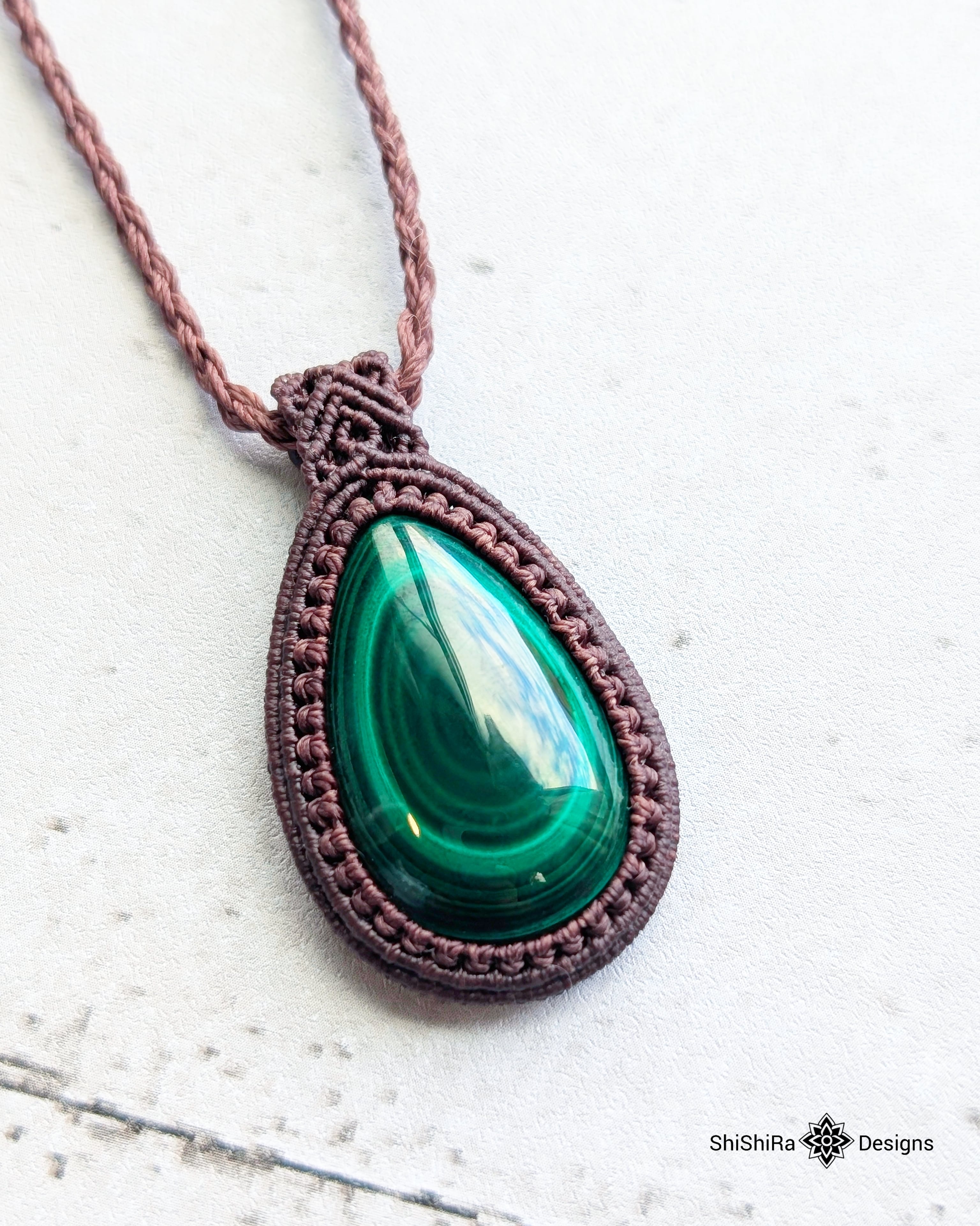 模様もツヤも美しい大切なマラカイトをお預かりし、マクラメペンダントにいたしました。