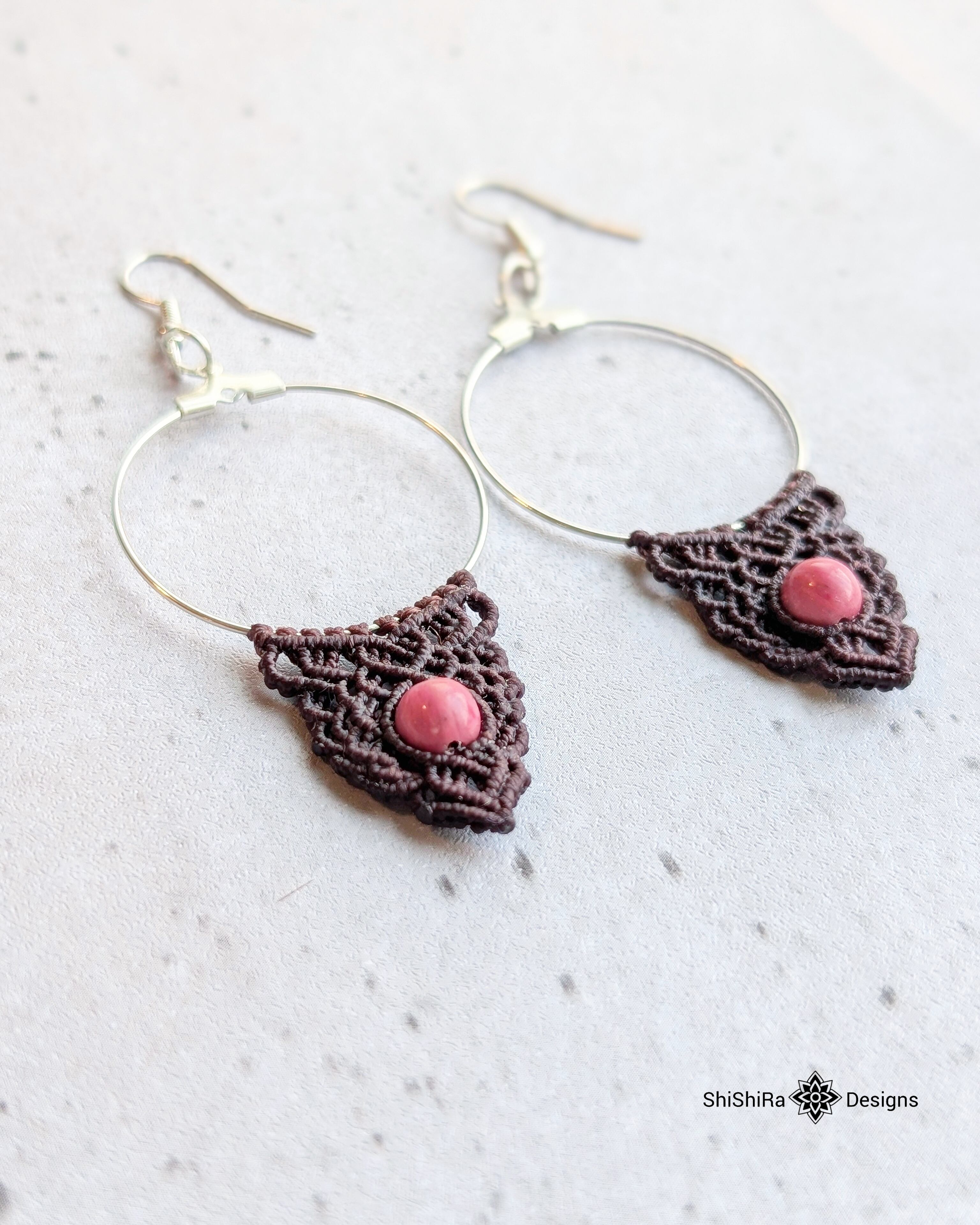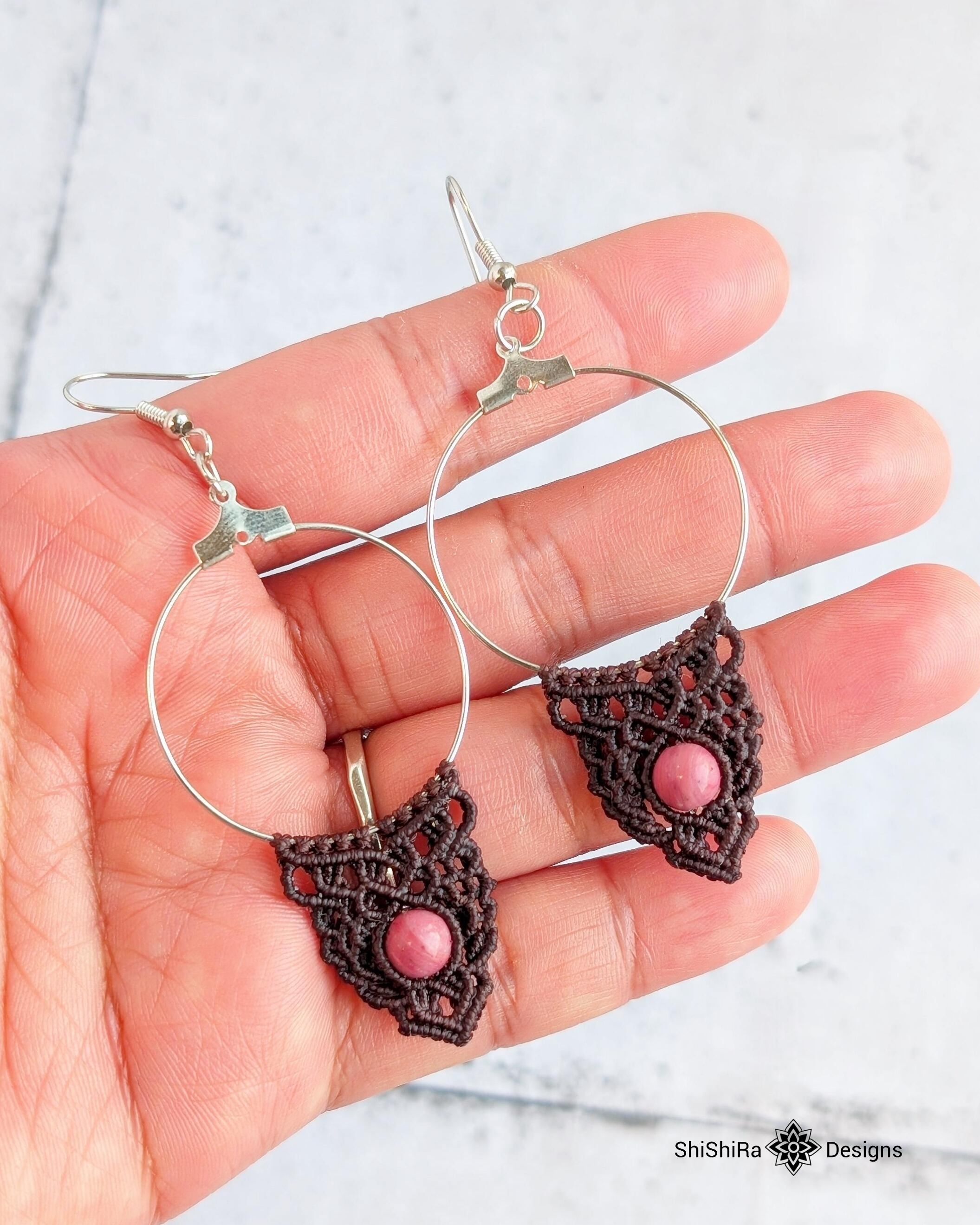 こちらはロードナイトをマクラメ編みで編みこんだピアスです。