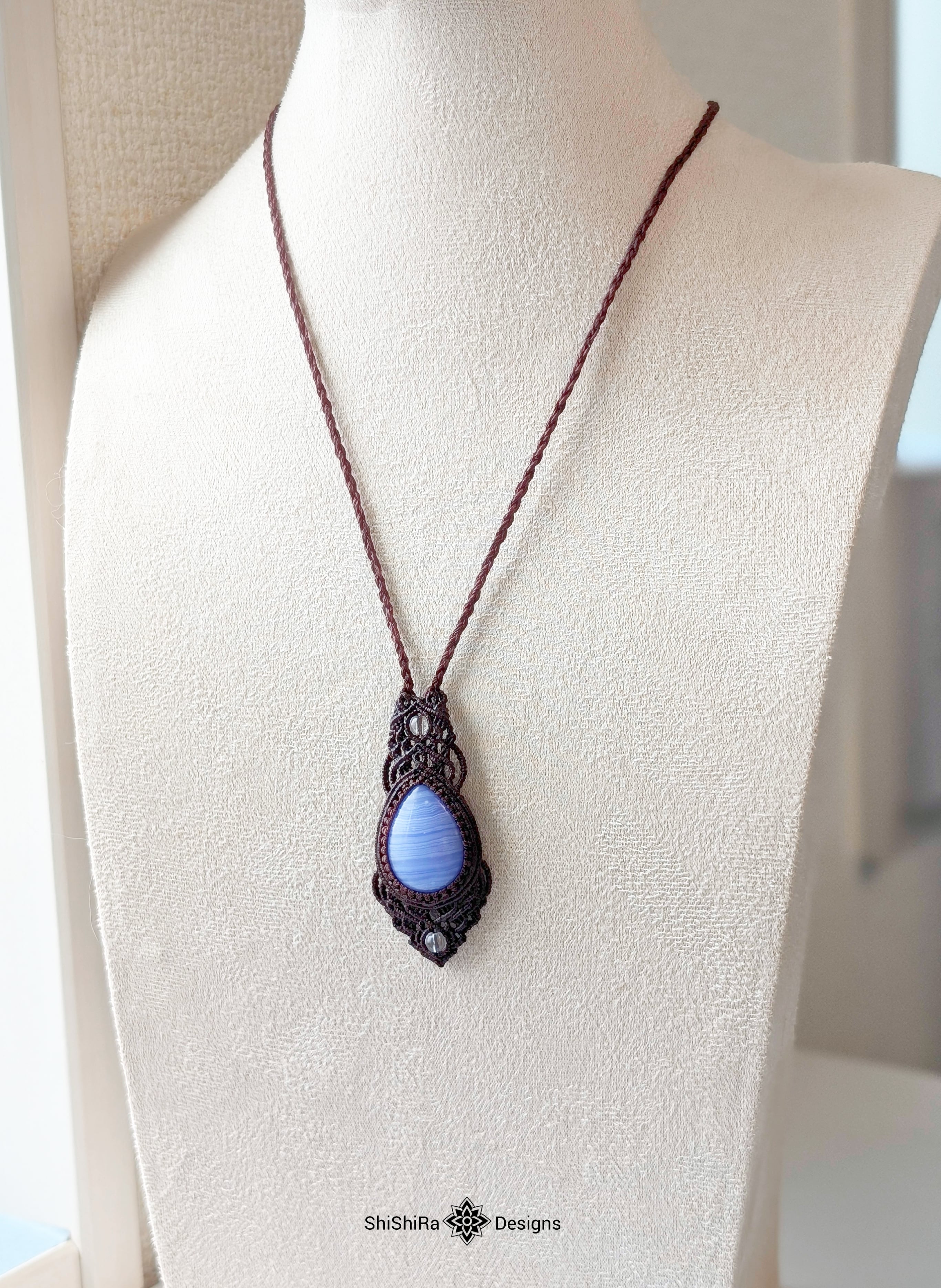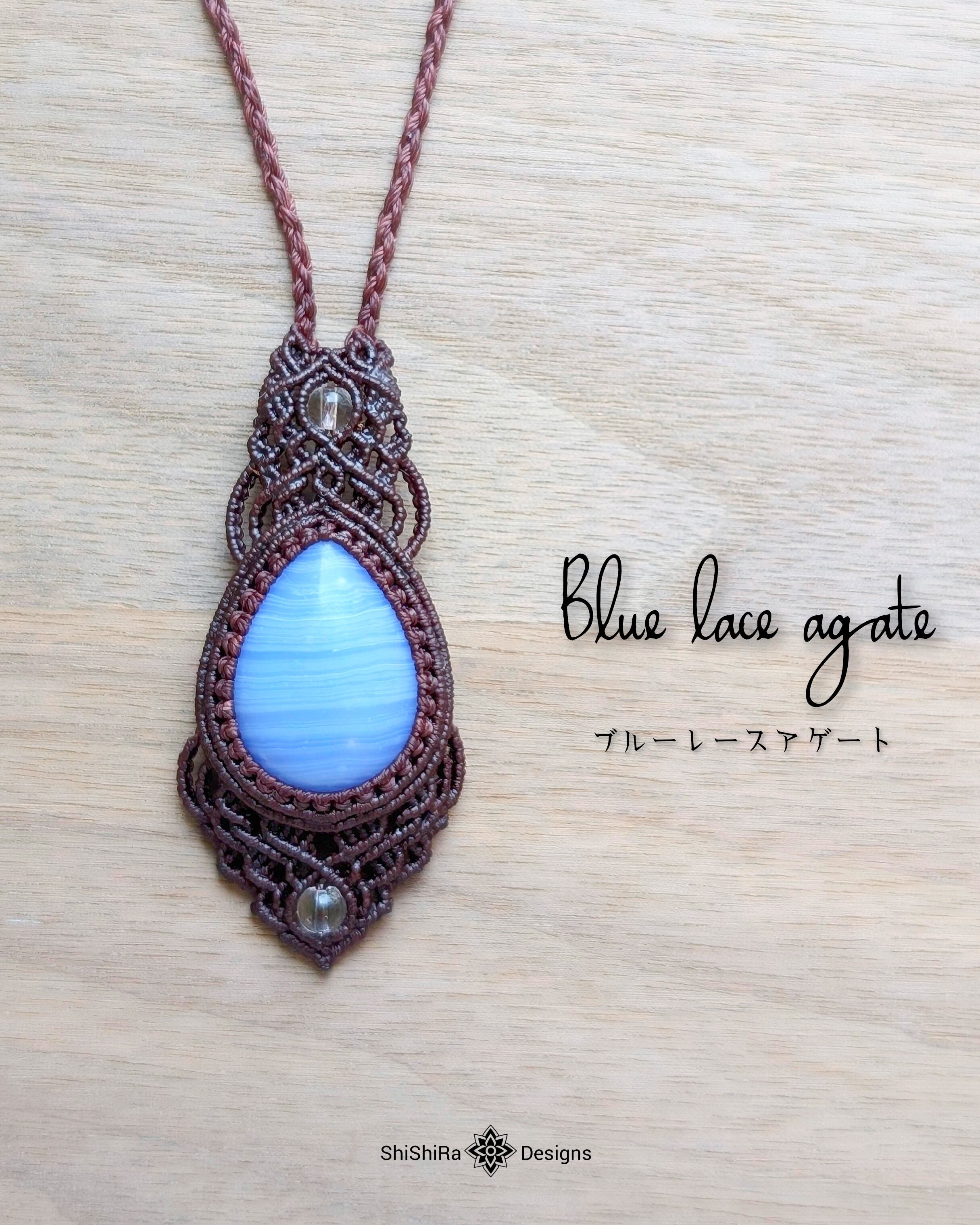 心に安らぎを。ブルーレースアゲートのマクラメペンダント [金属アレルギー対応]