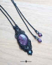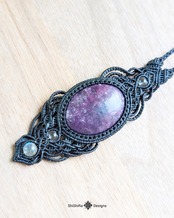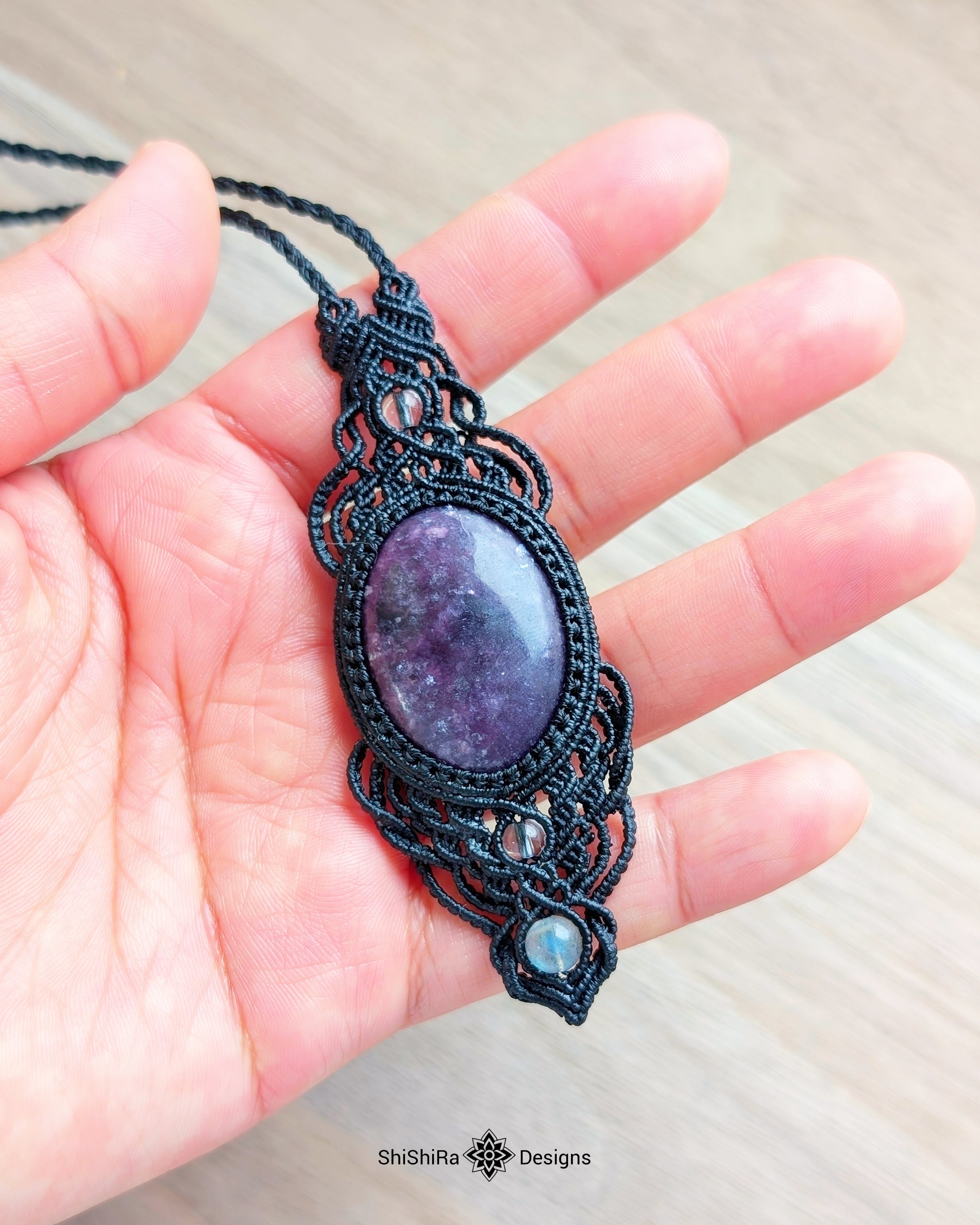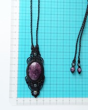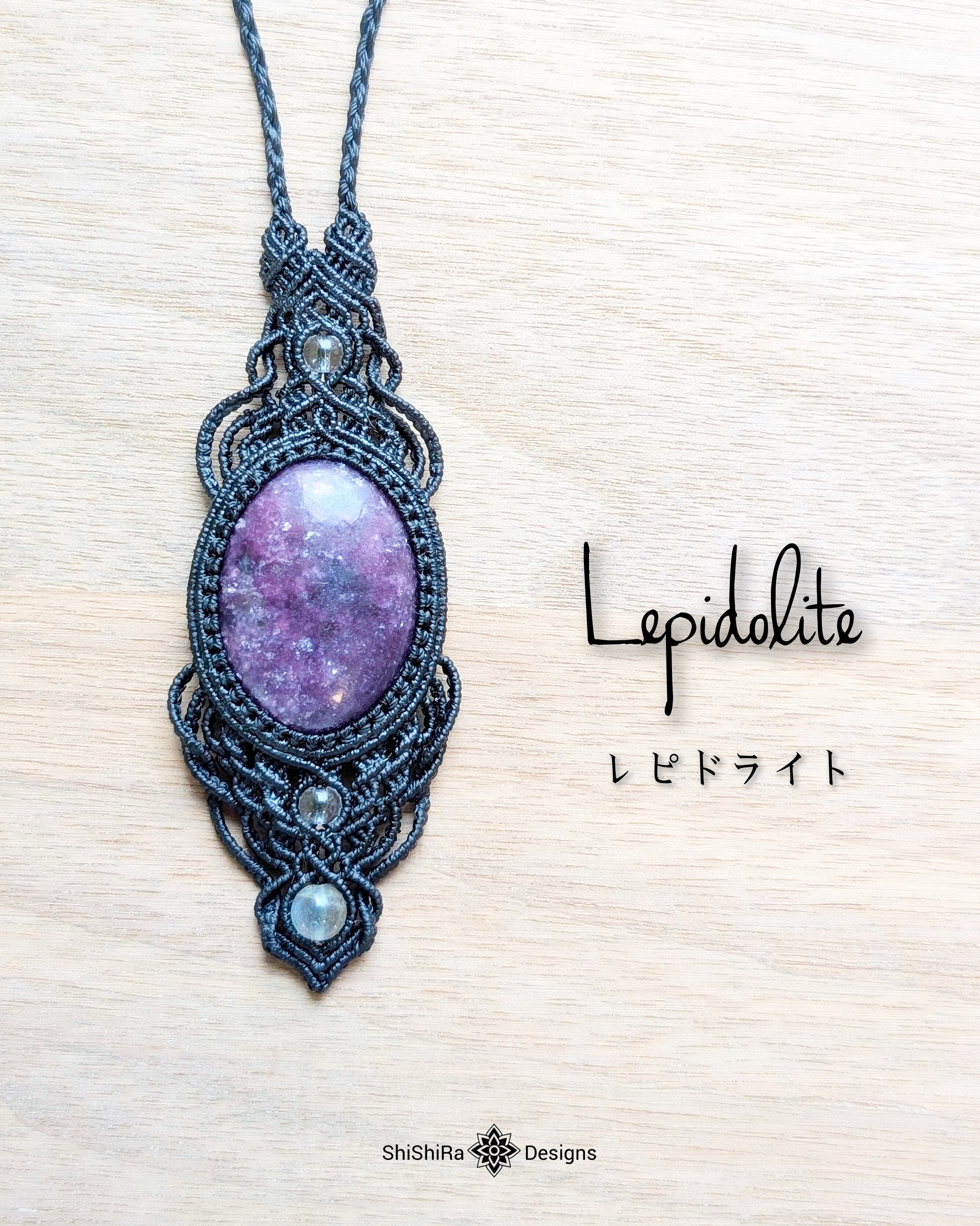深みのあるパープルが印象的な、レピドライトのマクラメペンダントです。