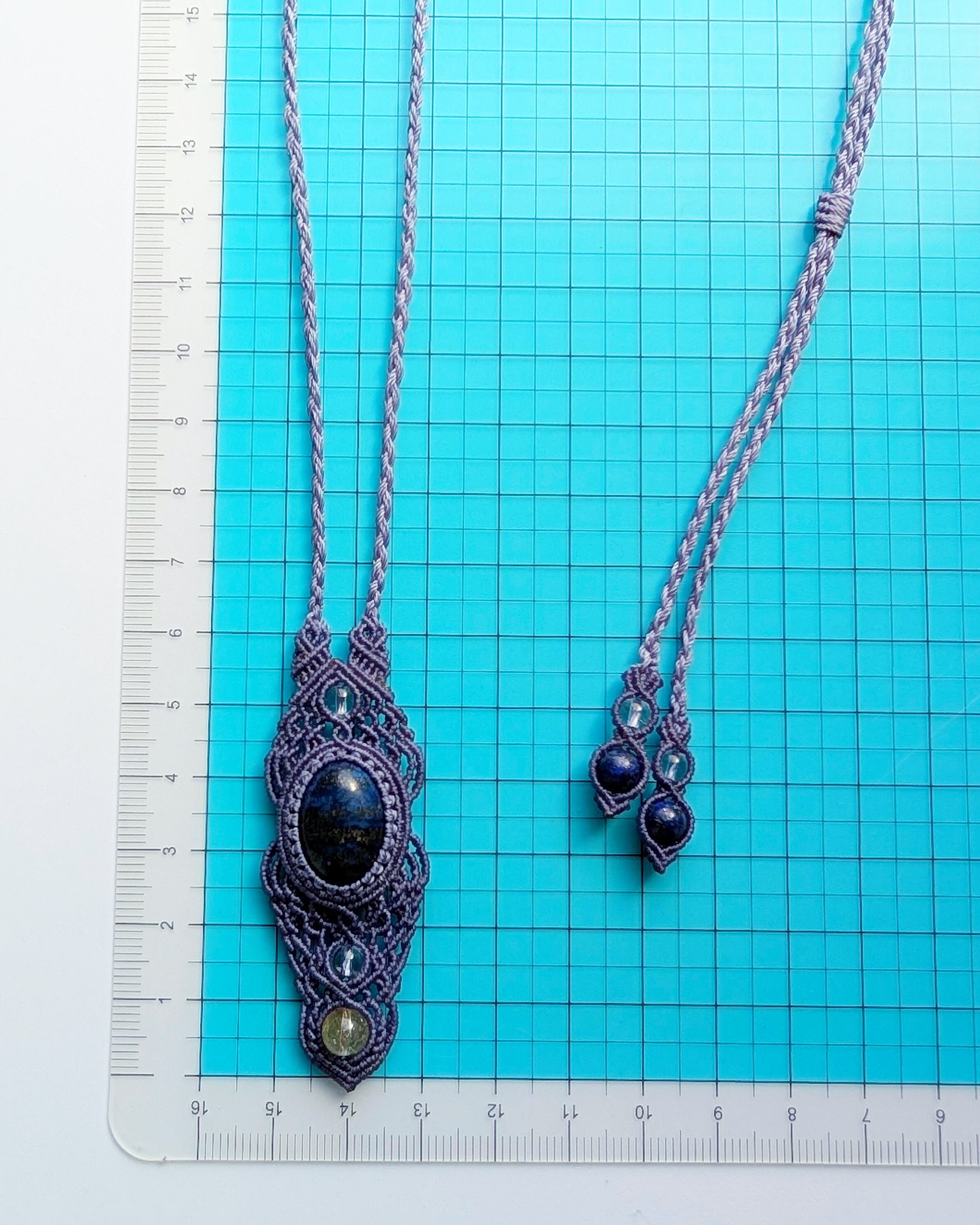 ラピスラズリとルチルクォーツのマクラメペンダント [金属アレルギー対応]