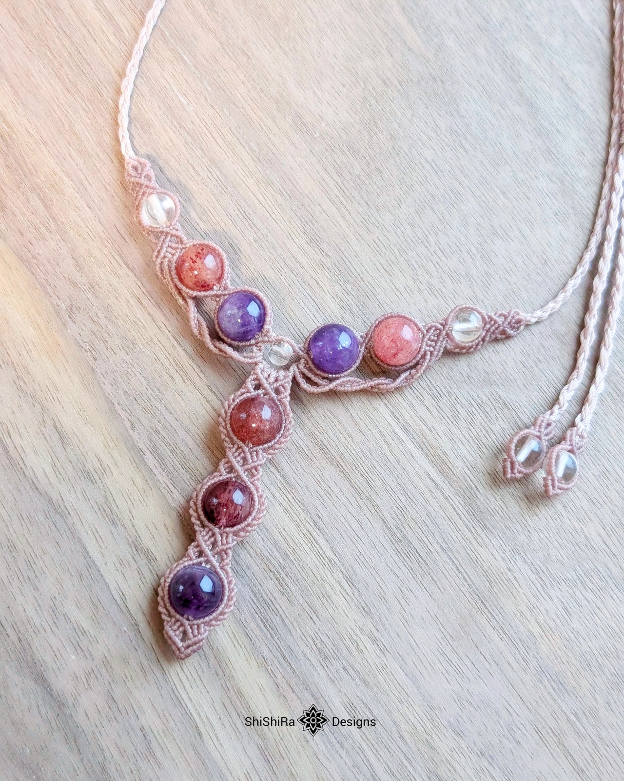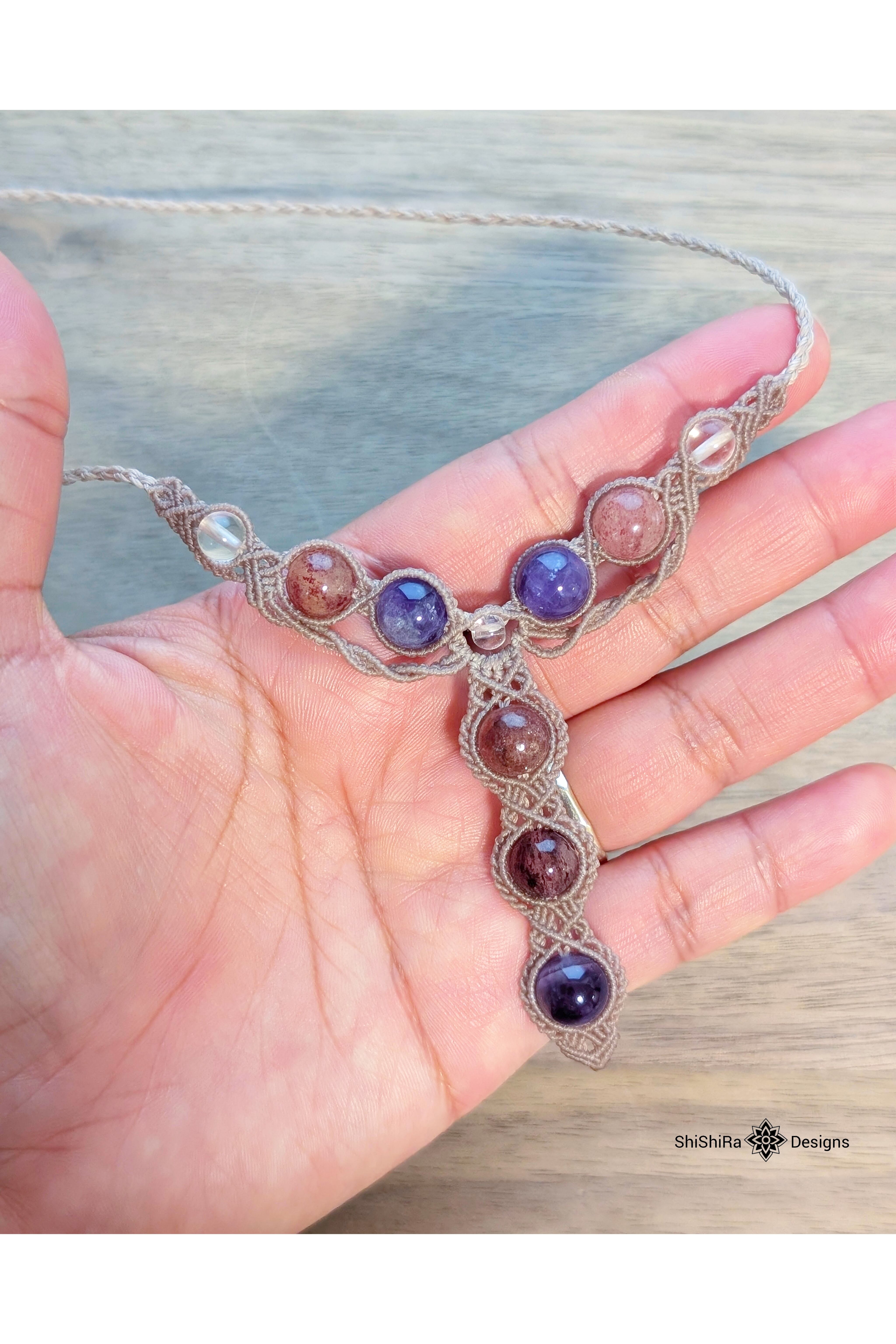 内包物の美しさが存分に楽しめるスーパーセブンのマクラメペンダント。