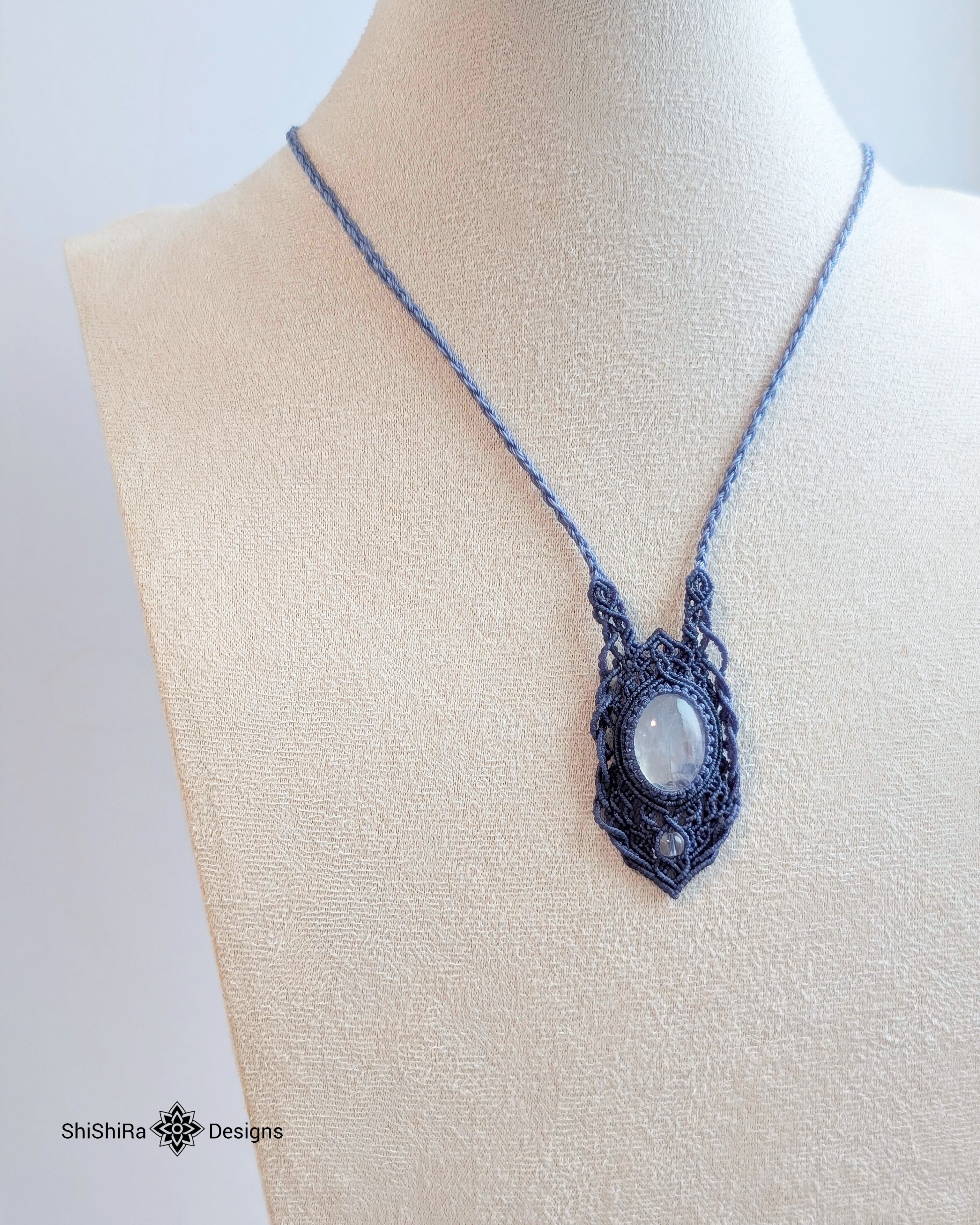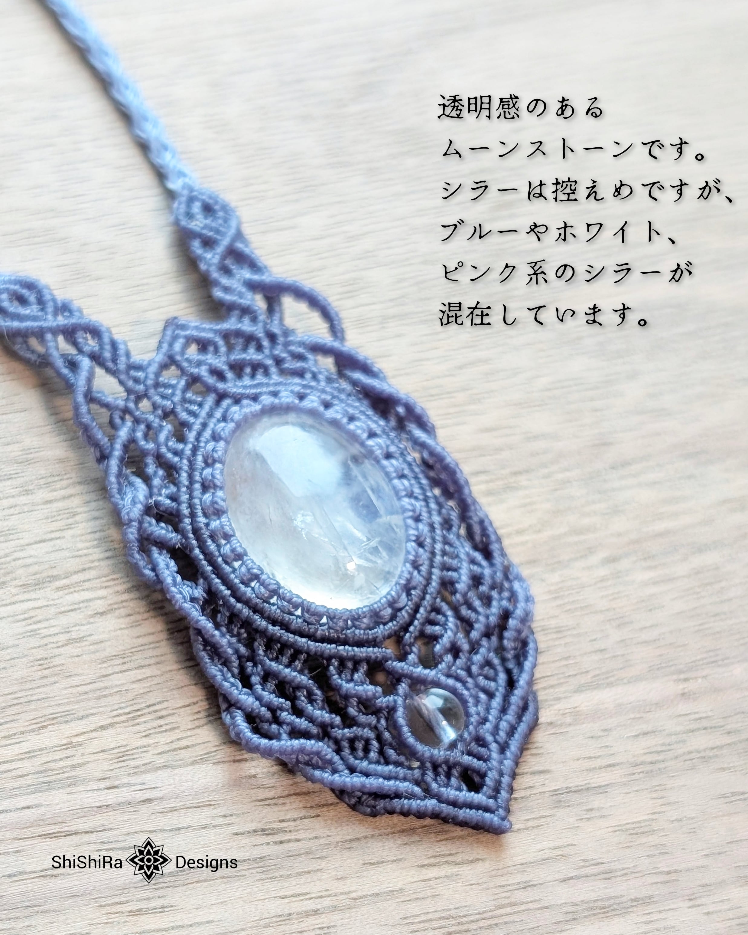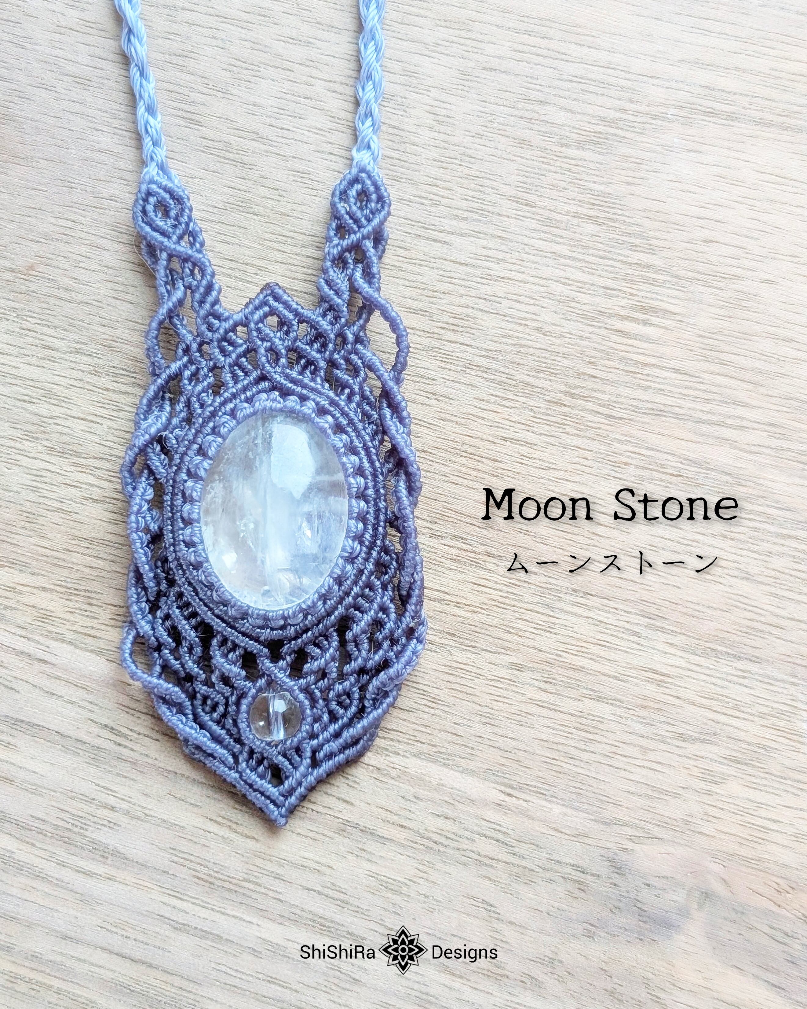 インド産のムーンストーンを編み込んだマクラメペンダントです。