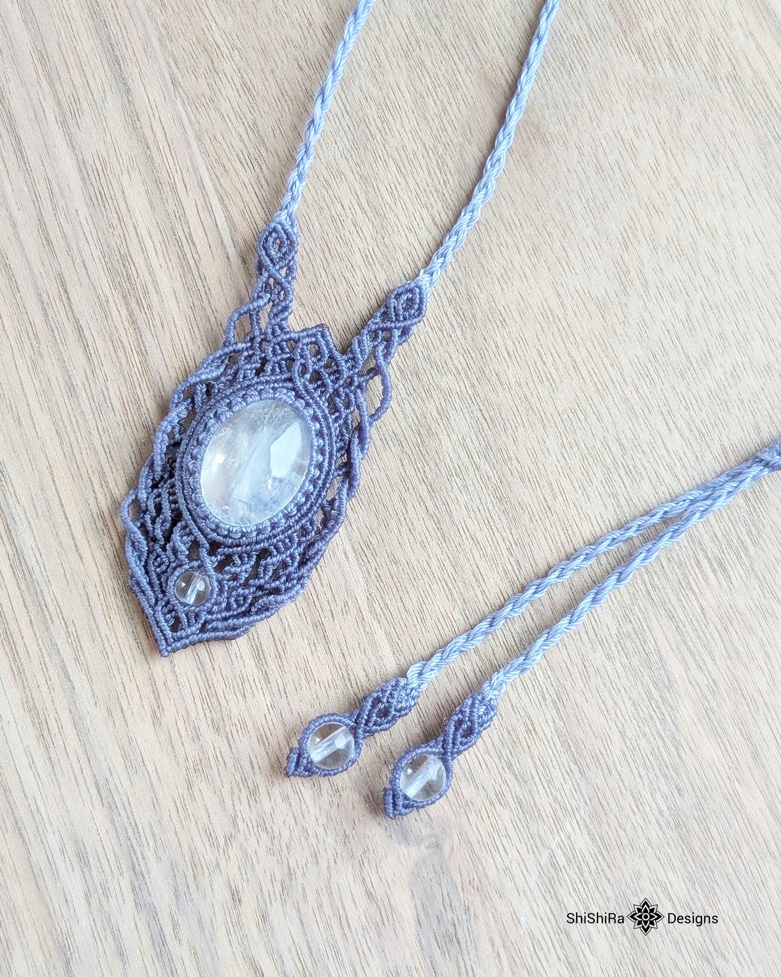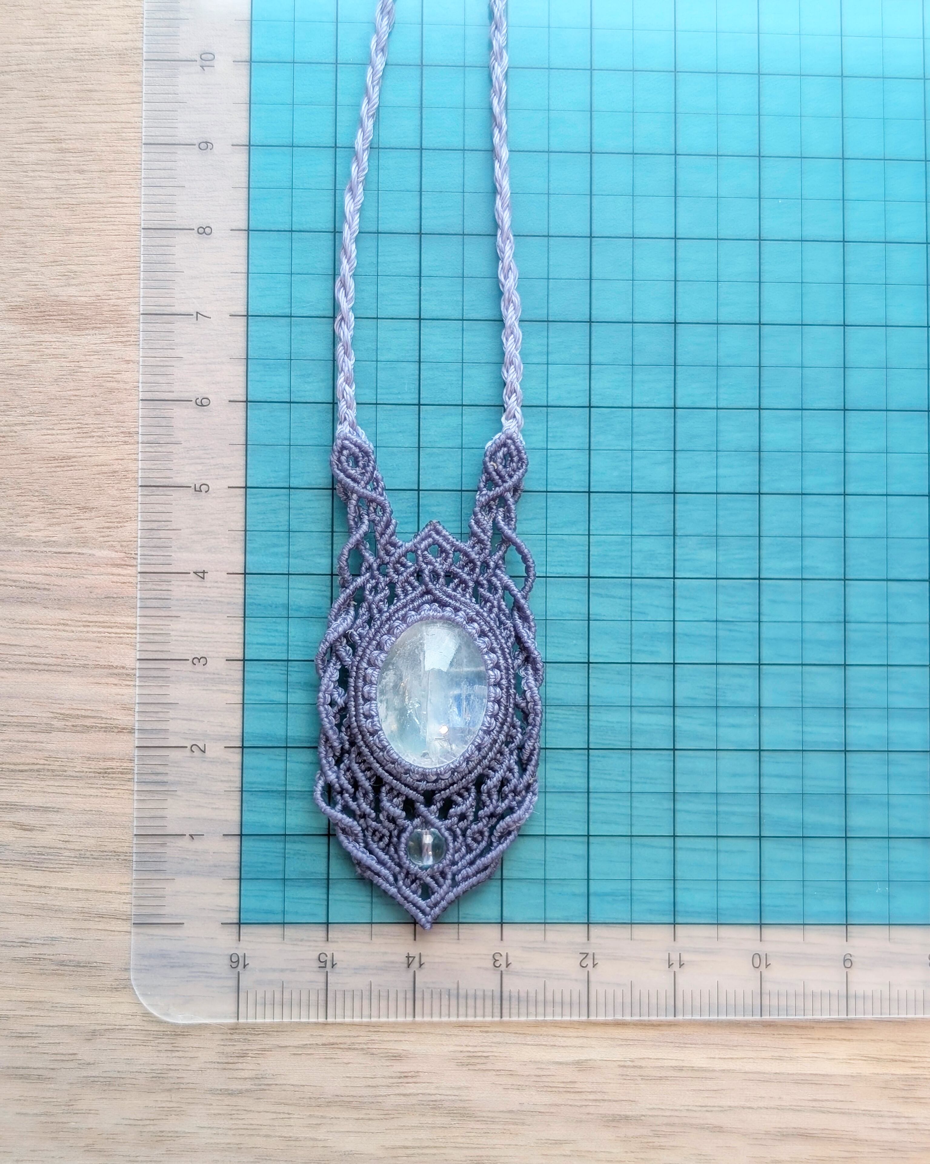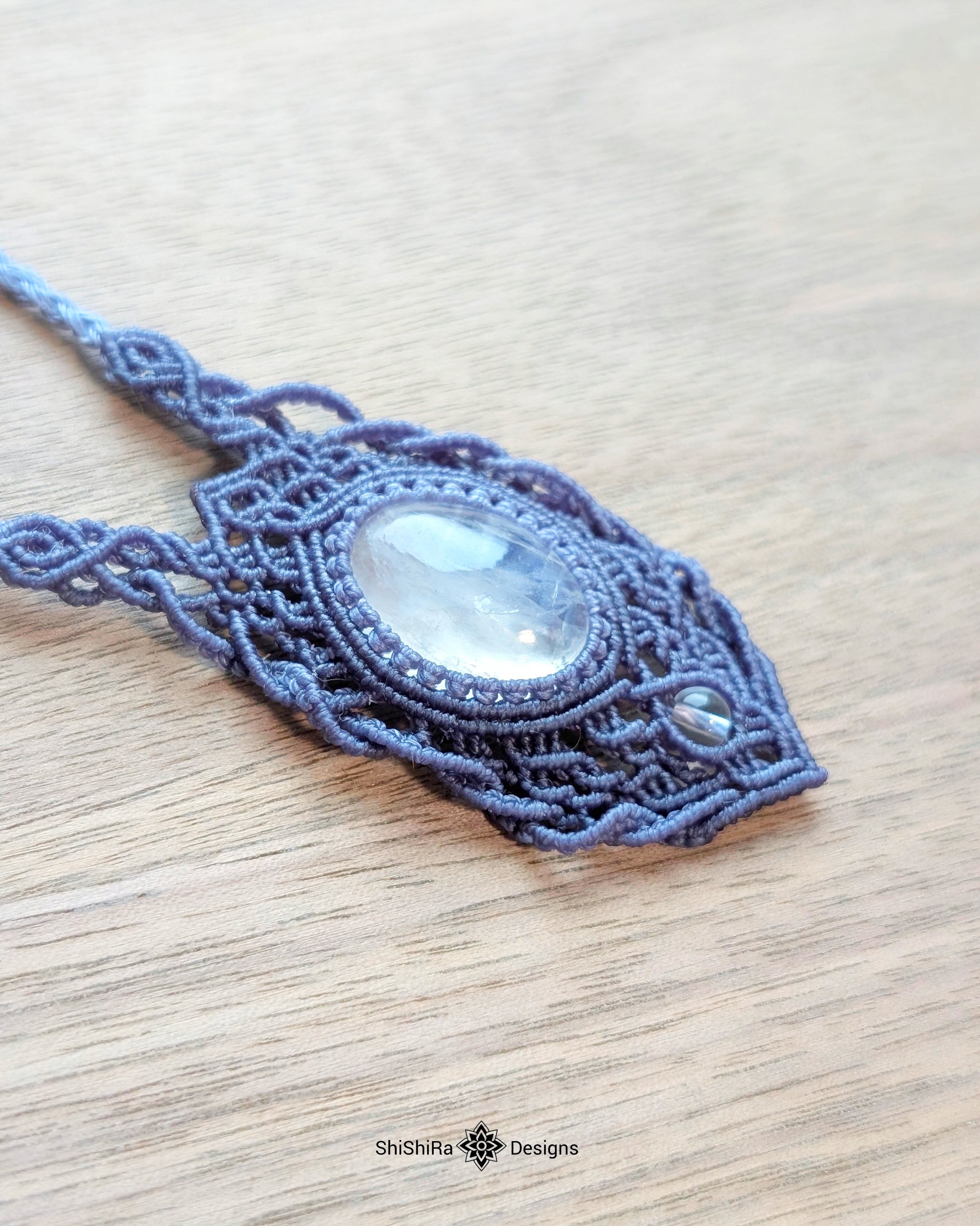 インド産のムーンストーンを編み込んだマクラメペンダントです。