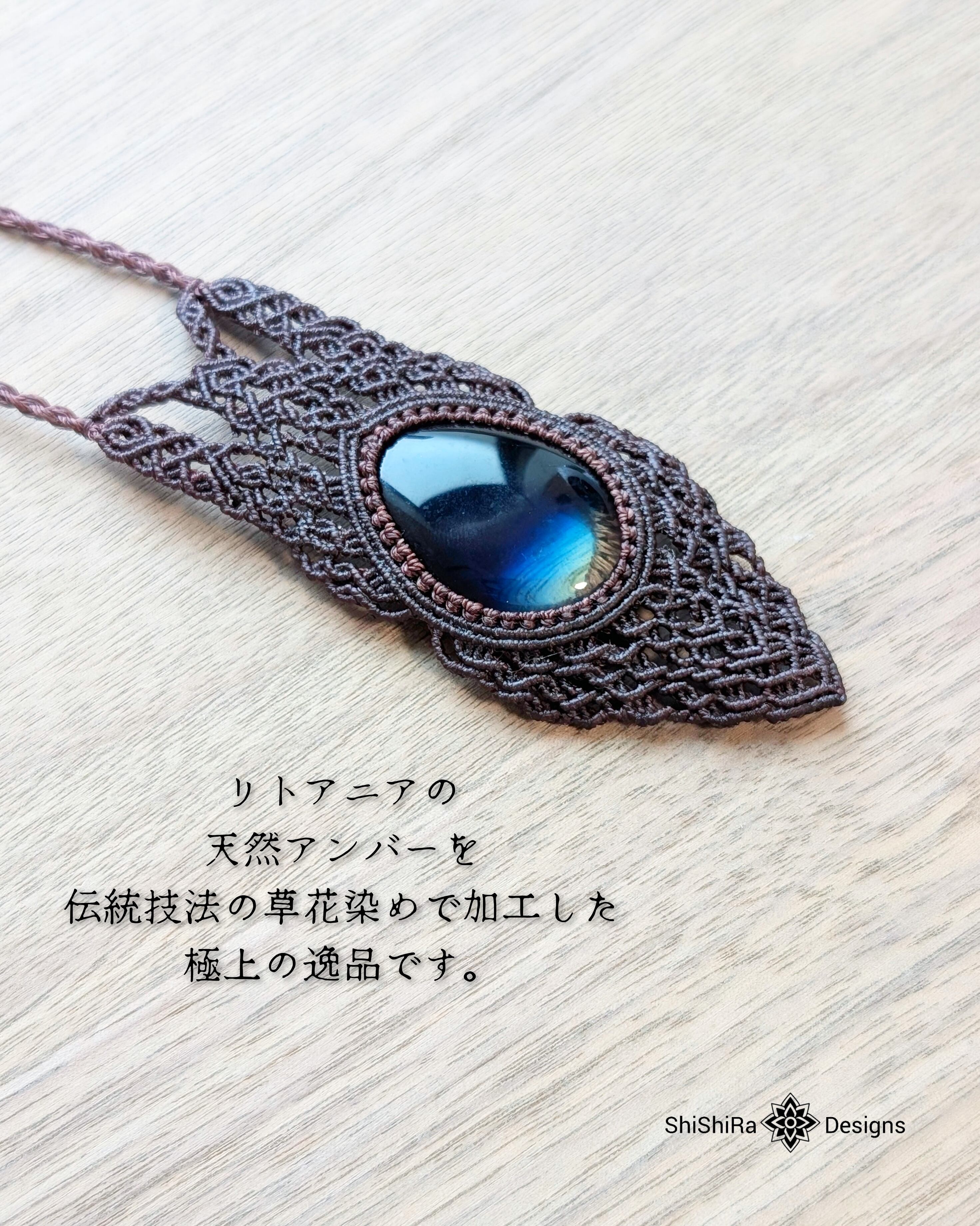 リトアニア産の天然アンバーを使用したマクラメペンダントです。