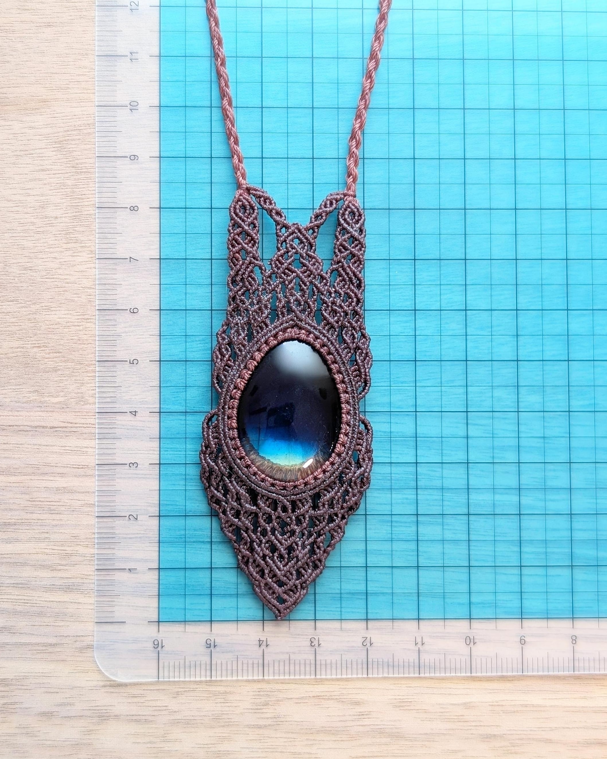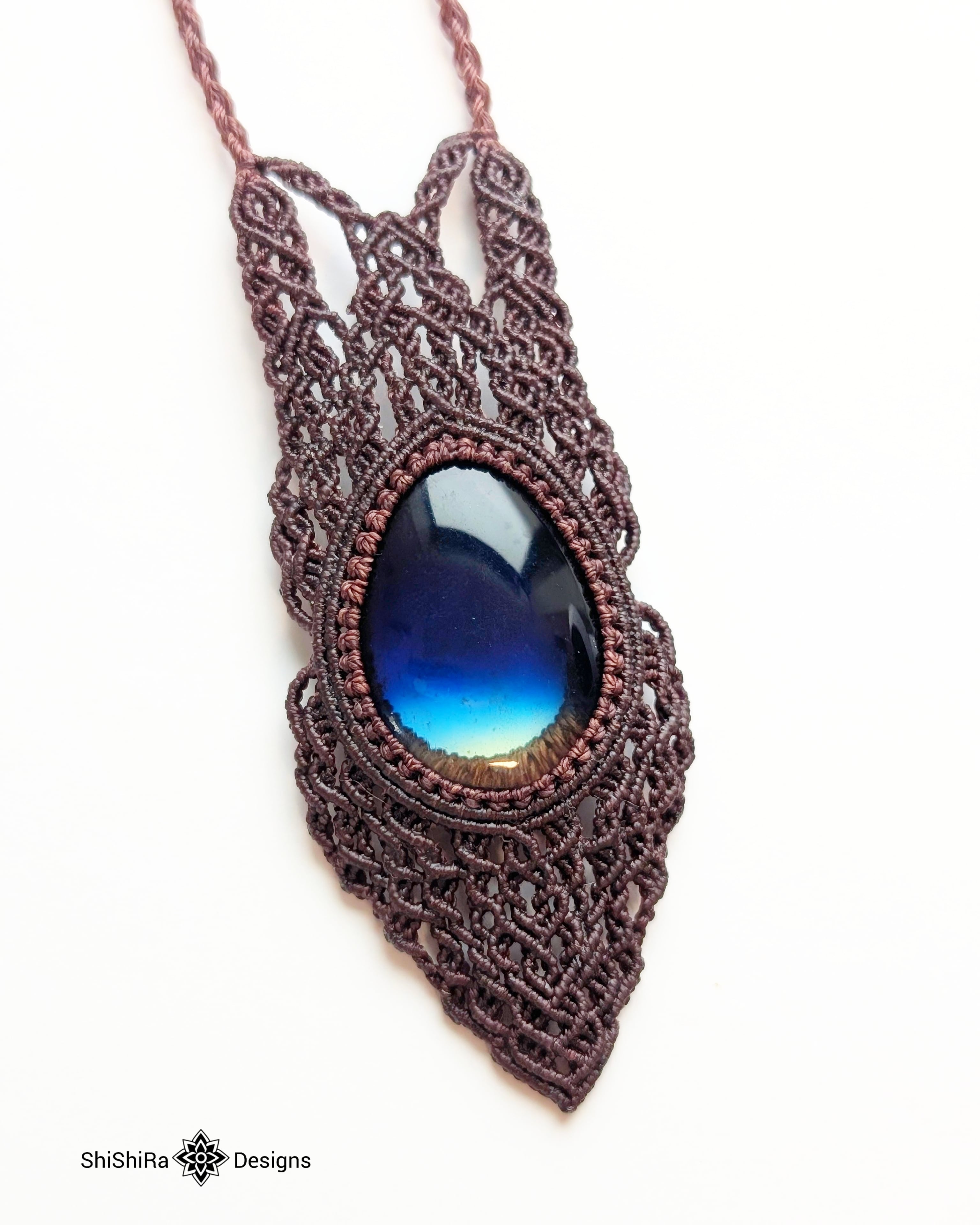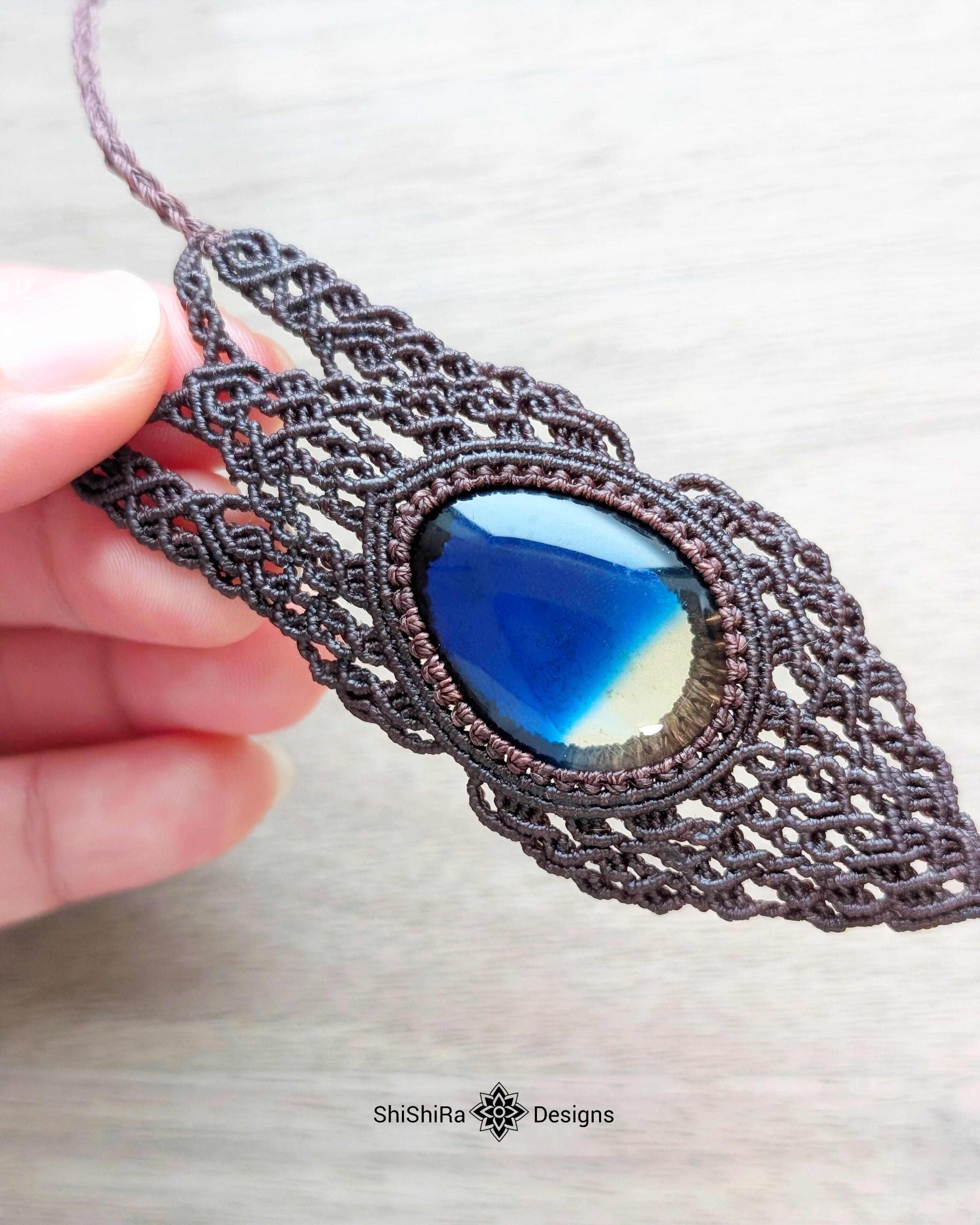 迫力満点のアンバーだったので、ペンダント本体には他の石は使わずマクラメのみで装飾を施しました。