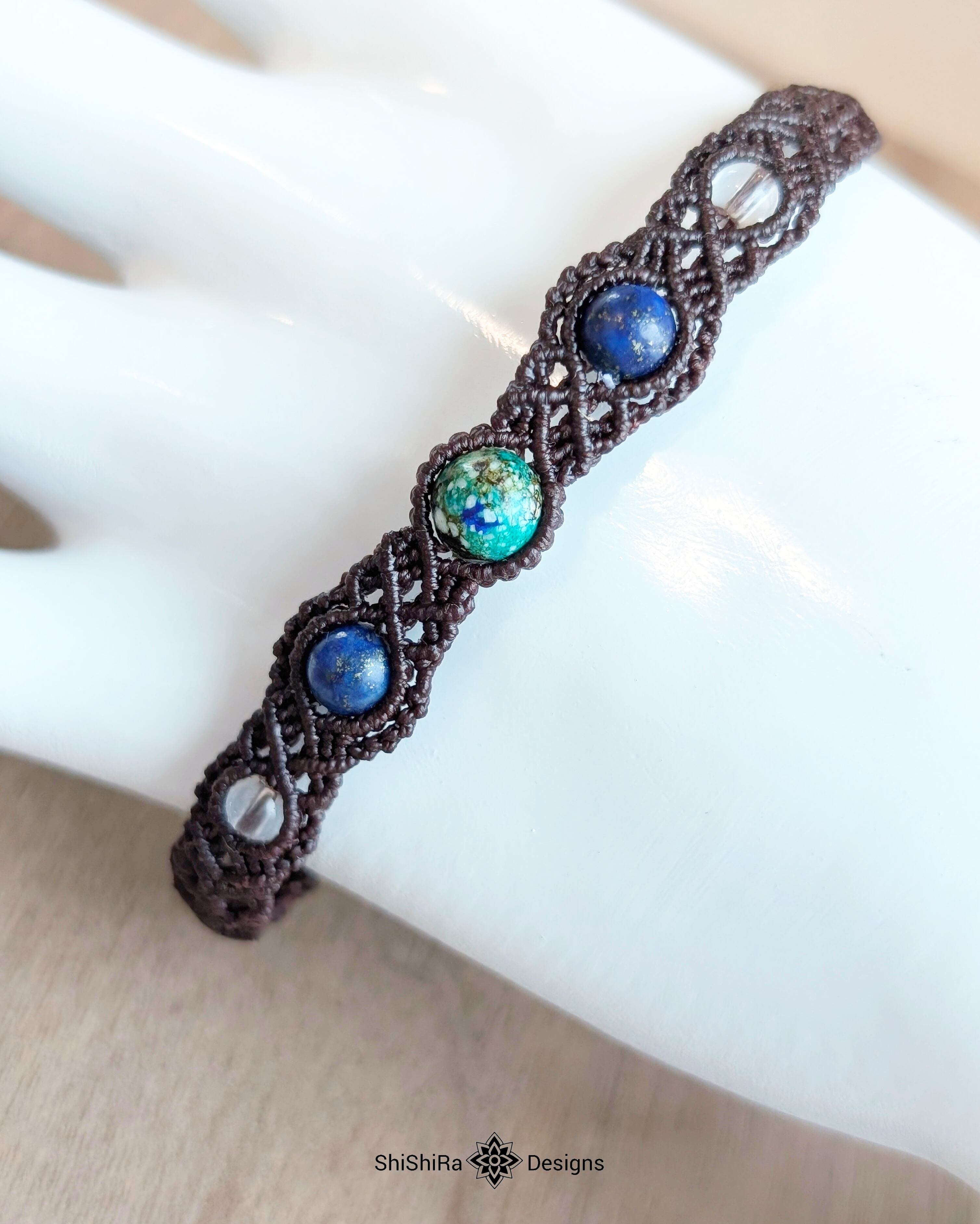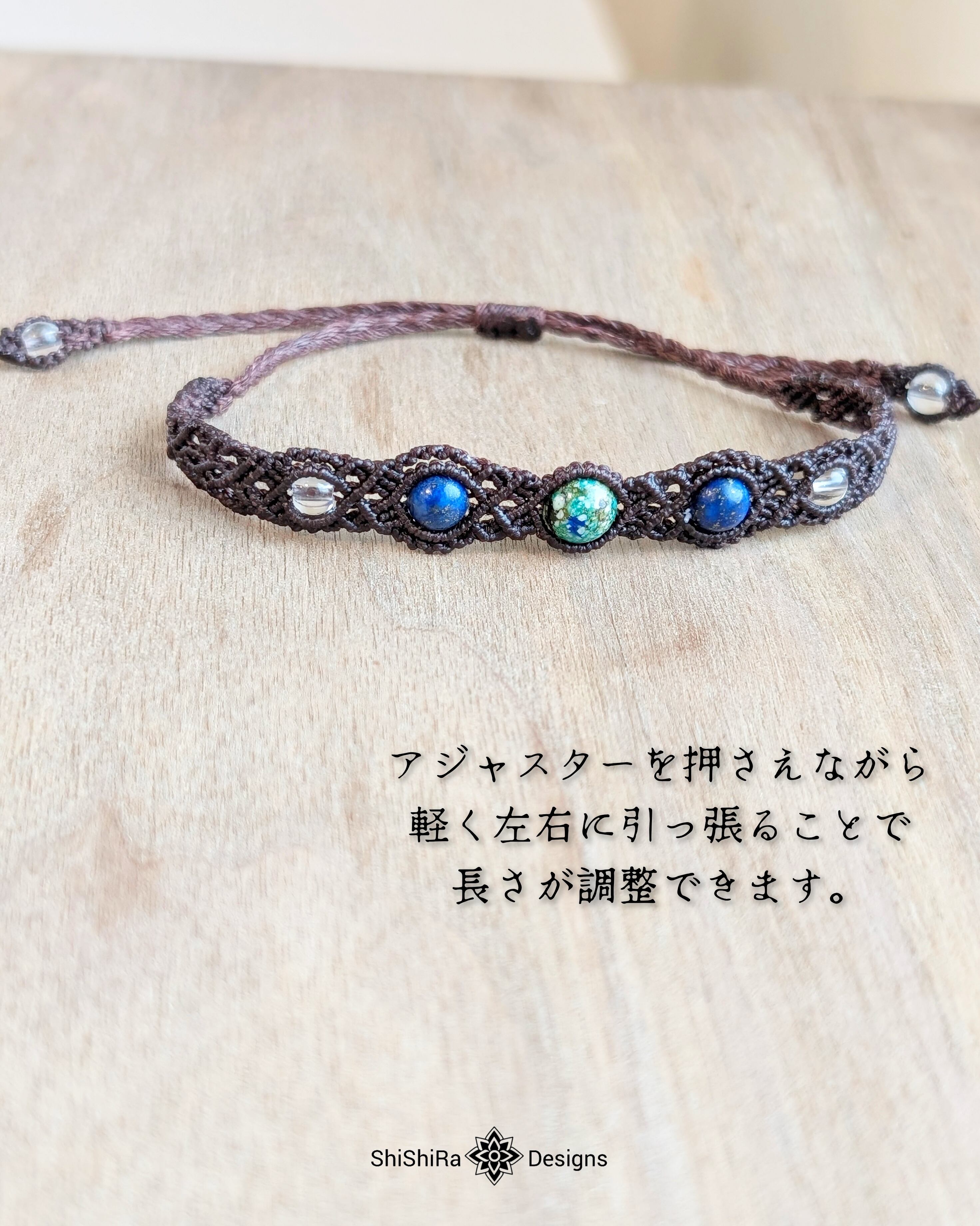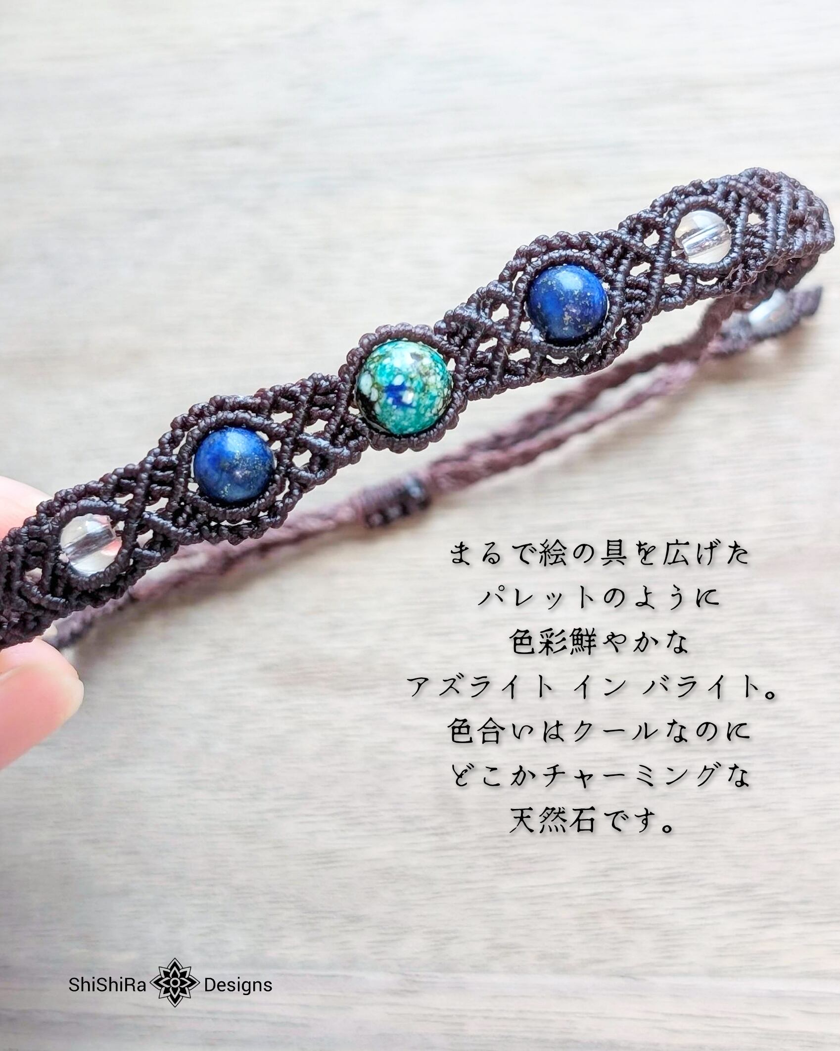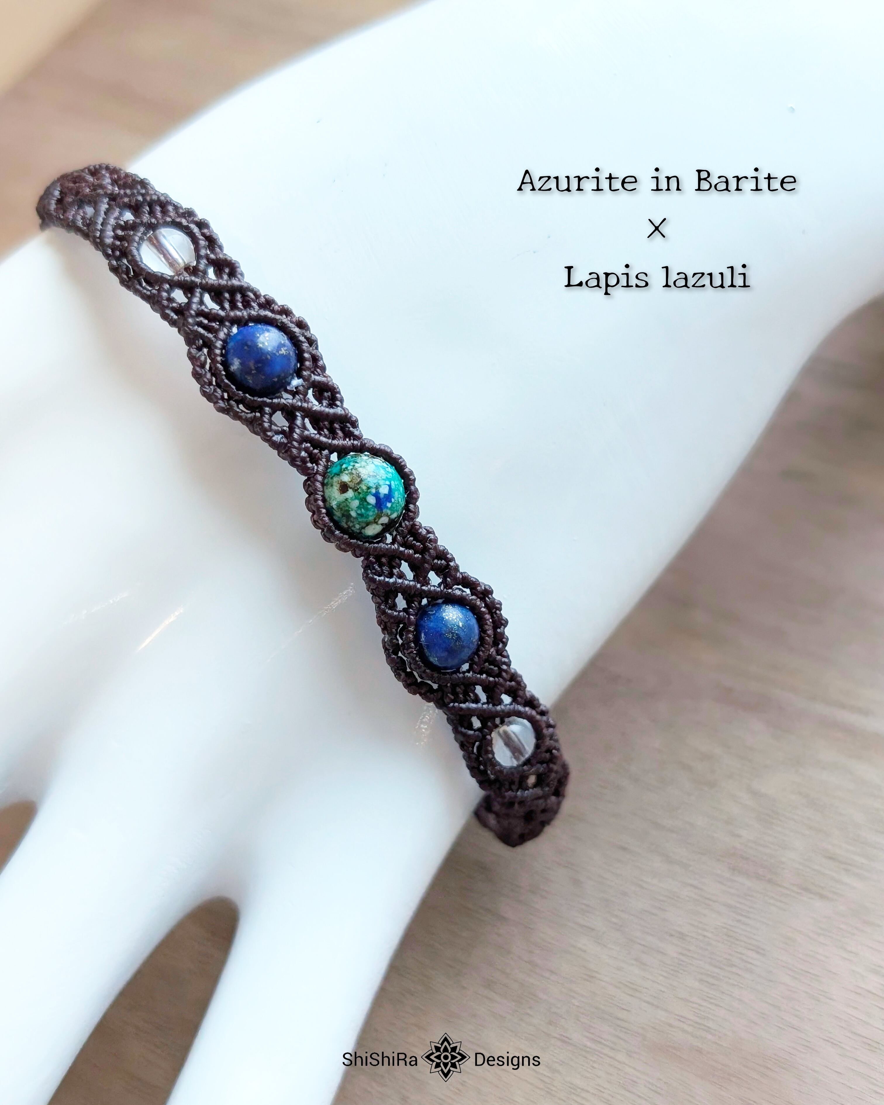 【希少石】アズライト イン バライトとラピスラズリのマクラメブレスレット [金属アレルギー対応]