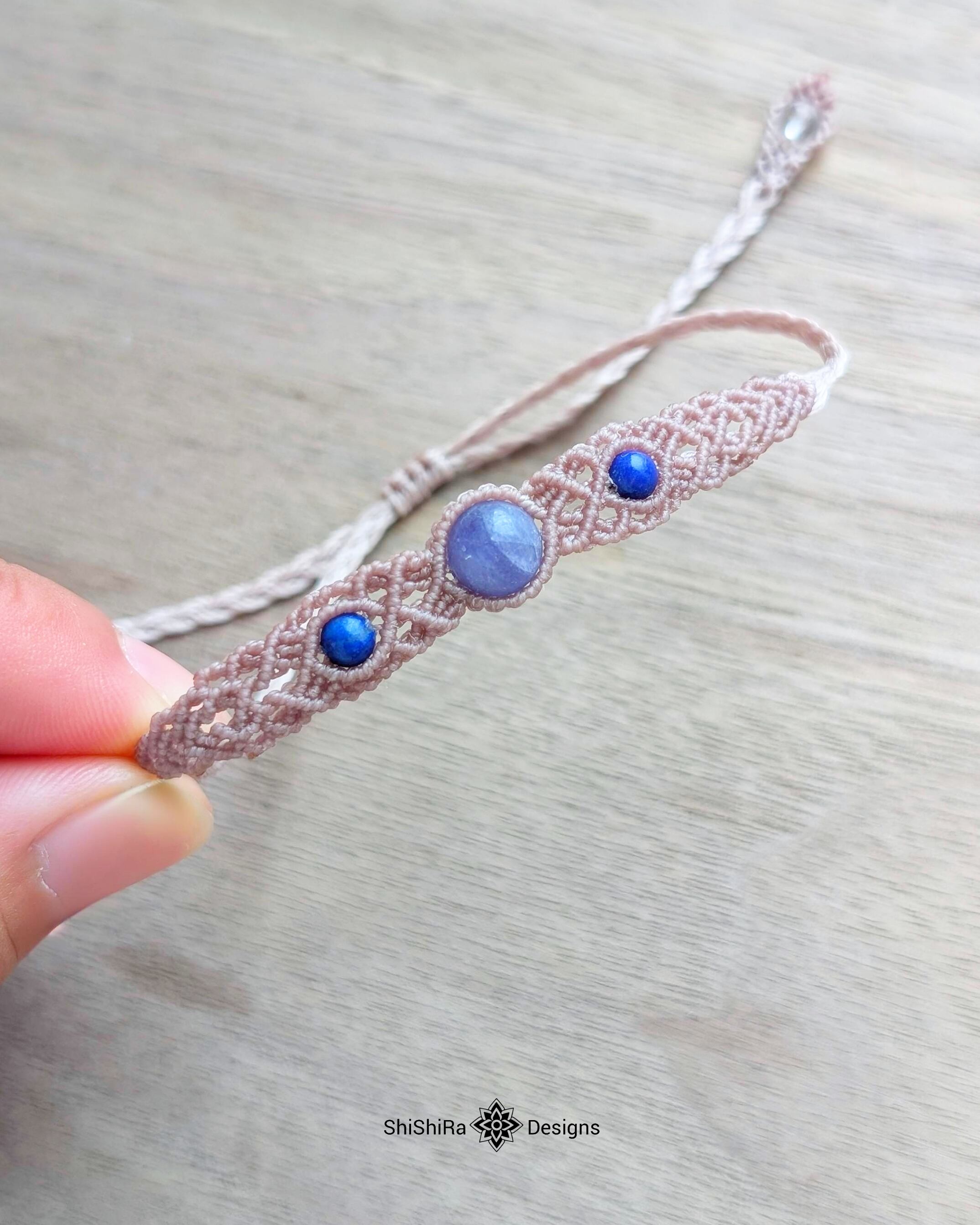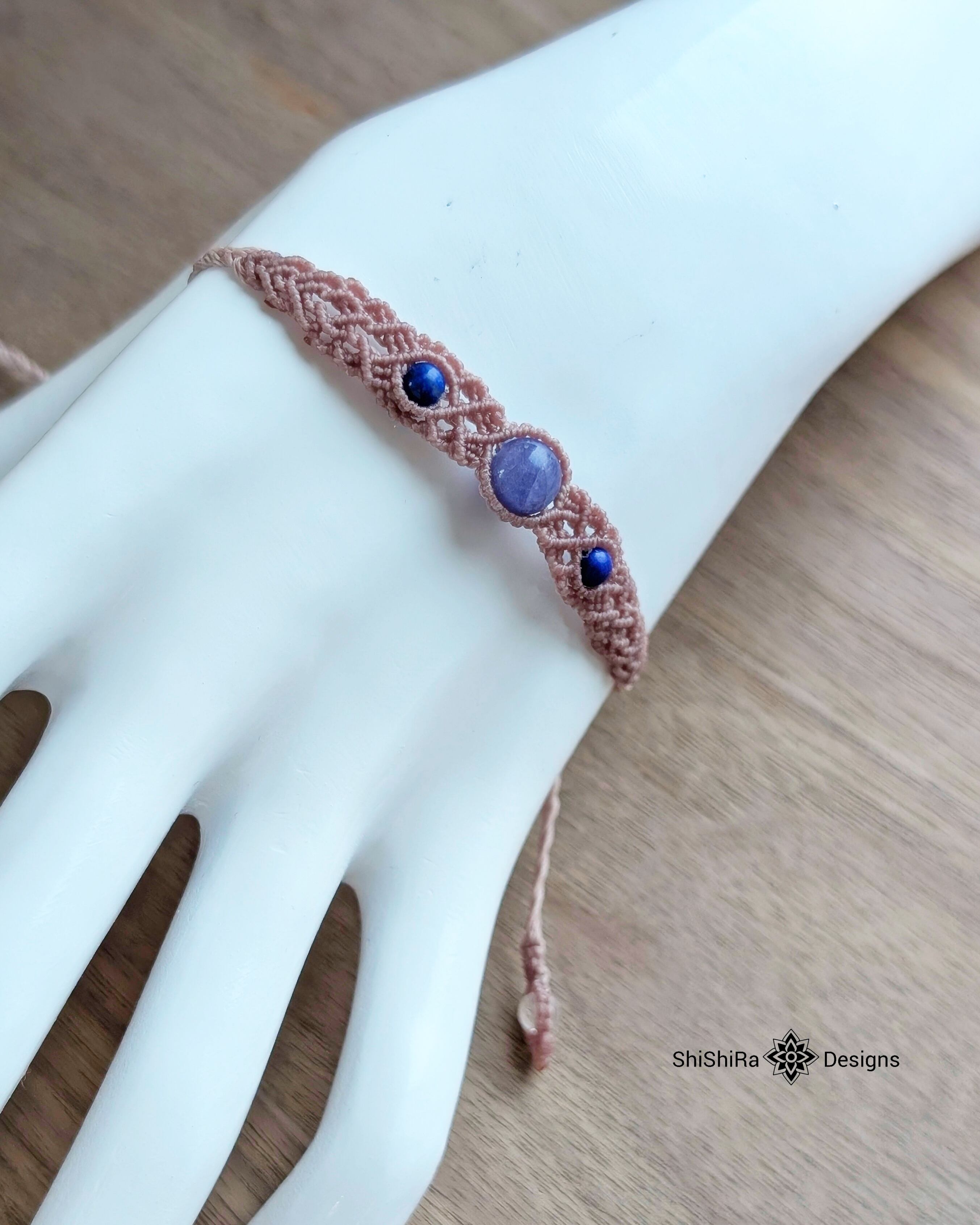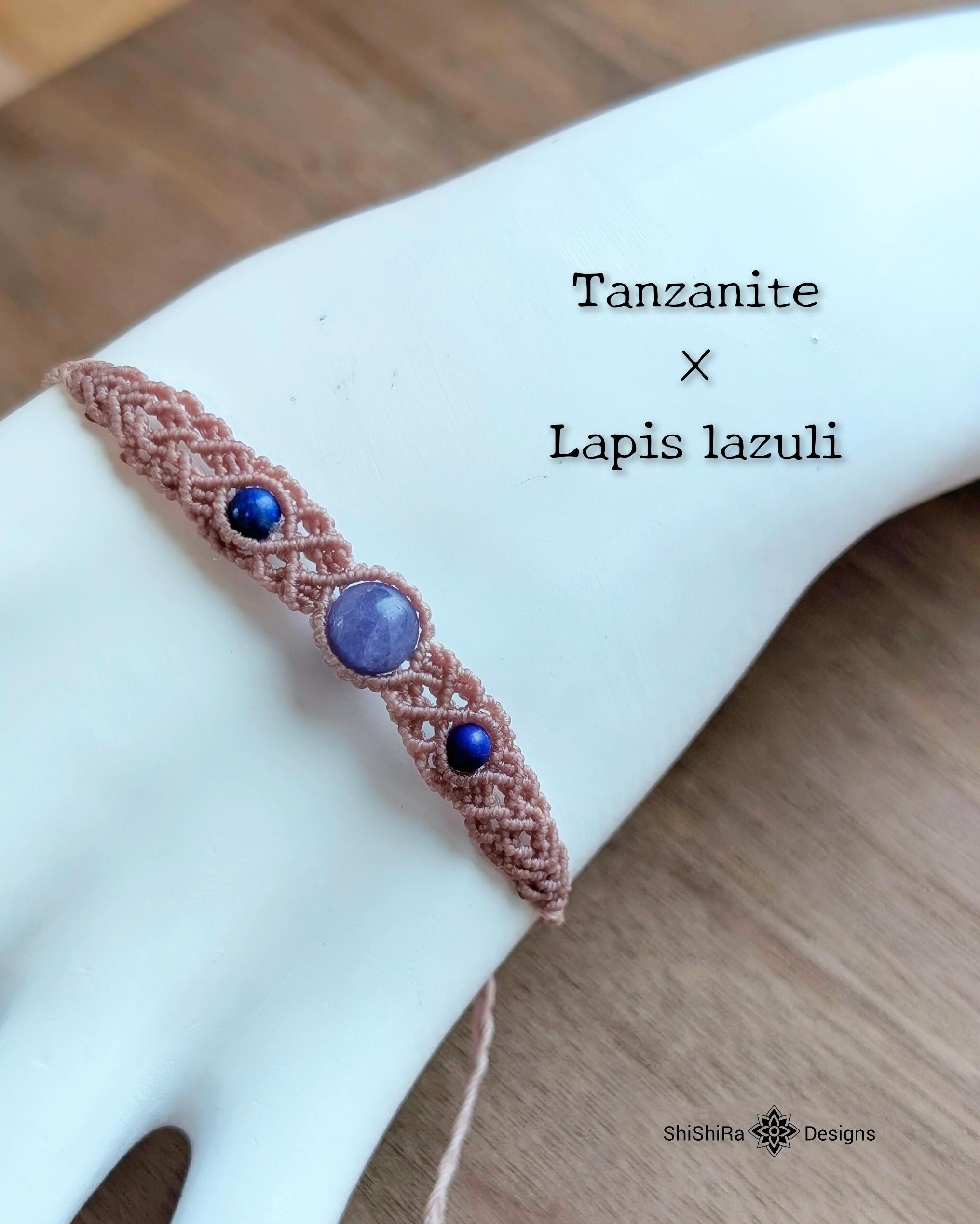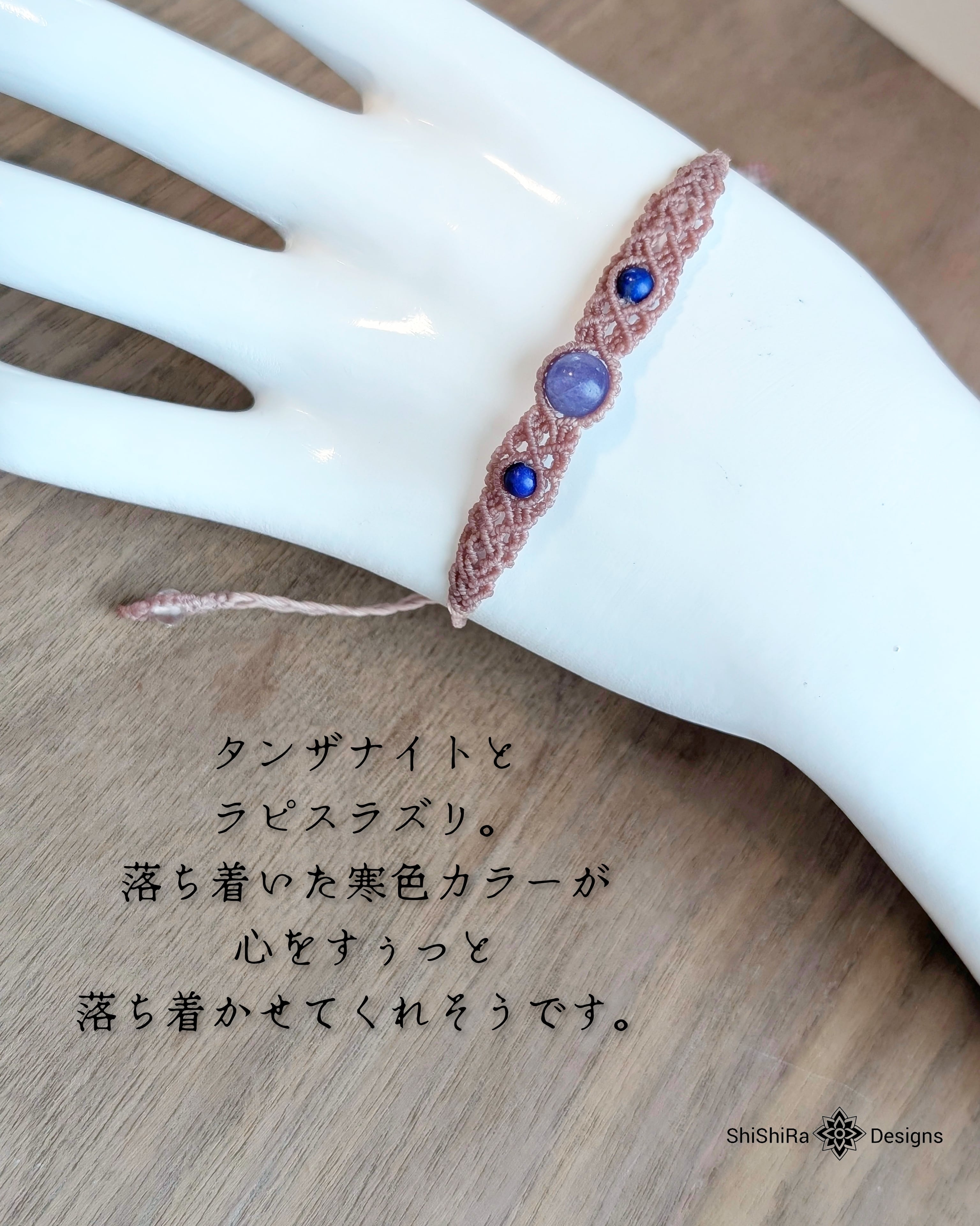 タンザナイトとラピスラズリのマクラメブレスレット [金属アレルギー対応]