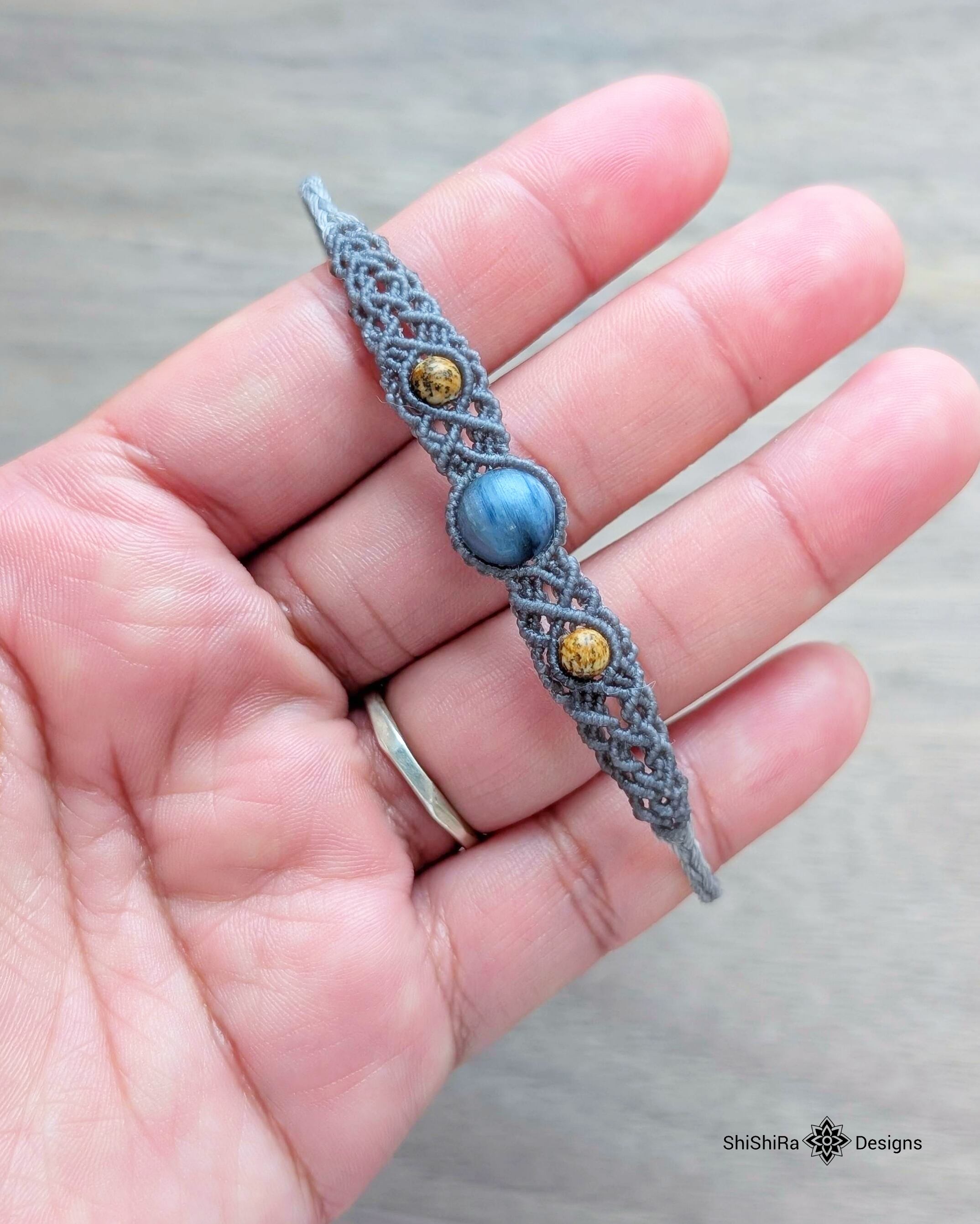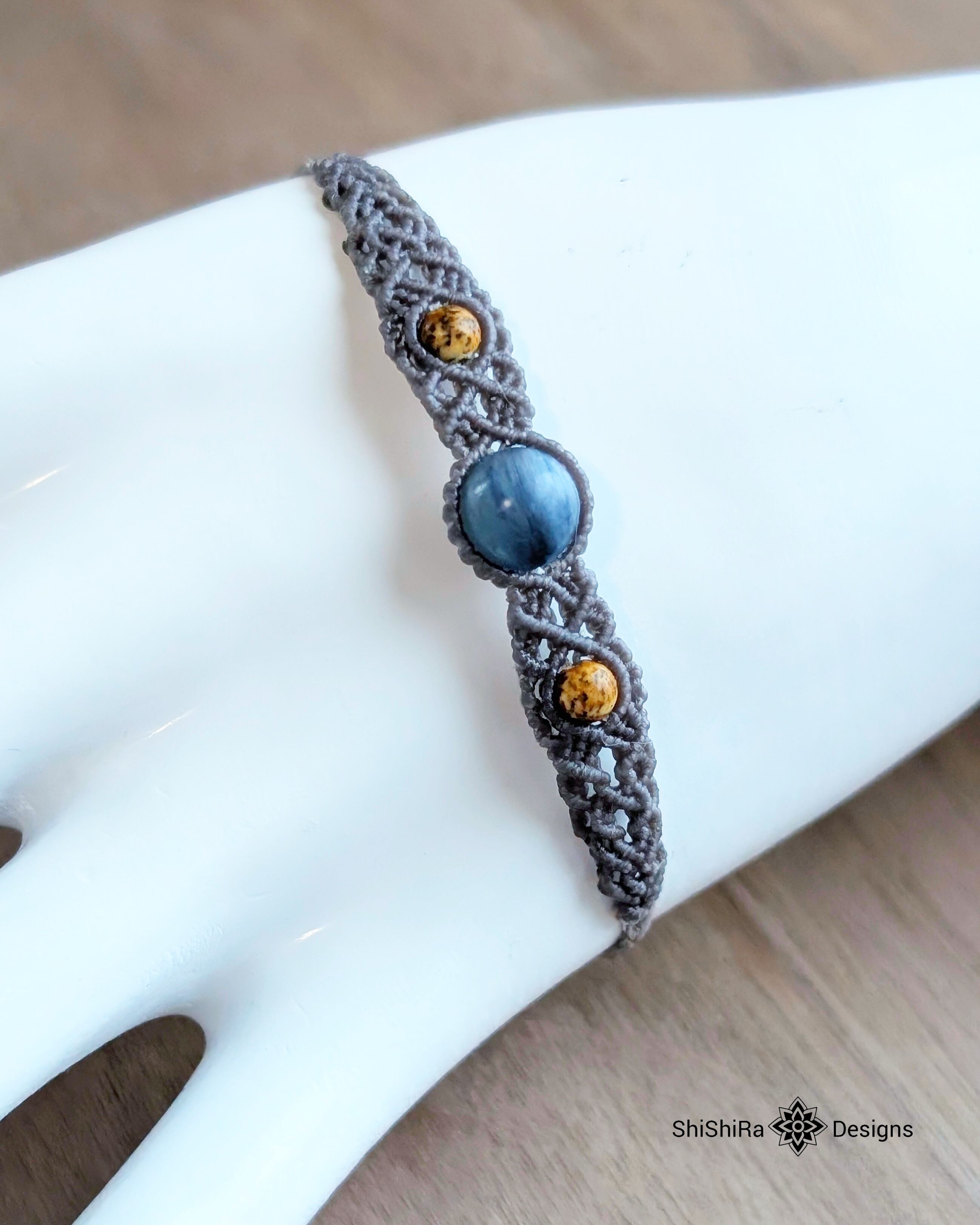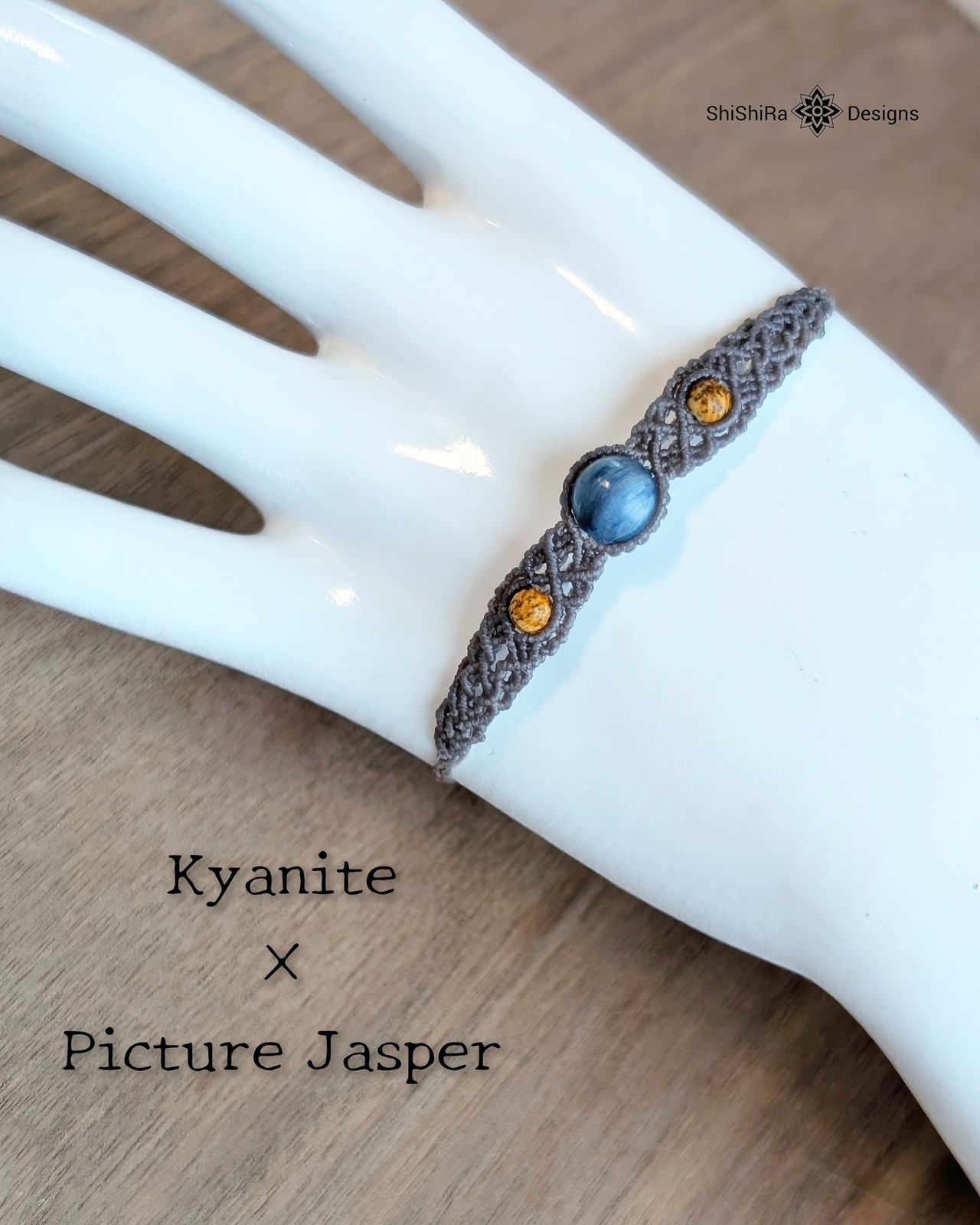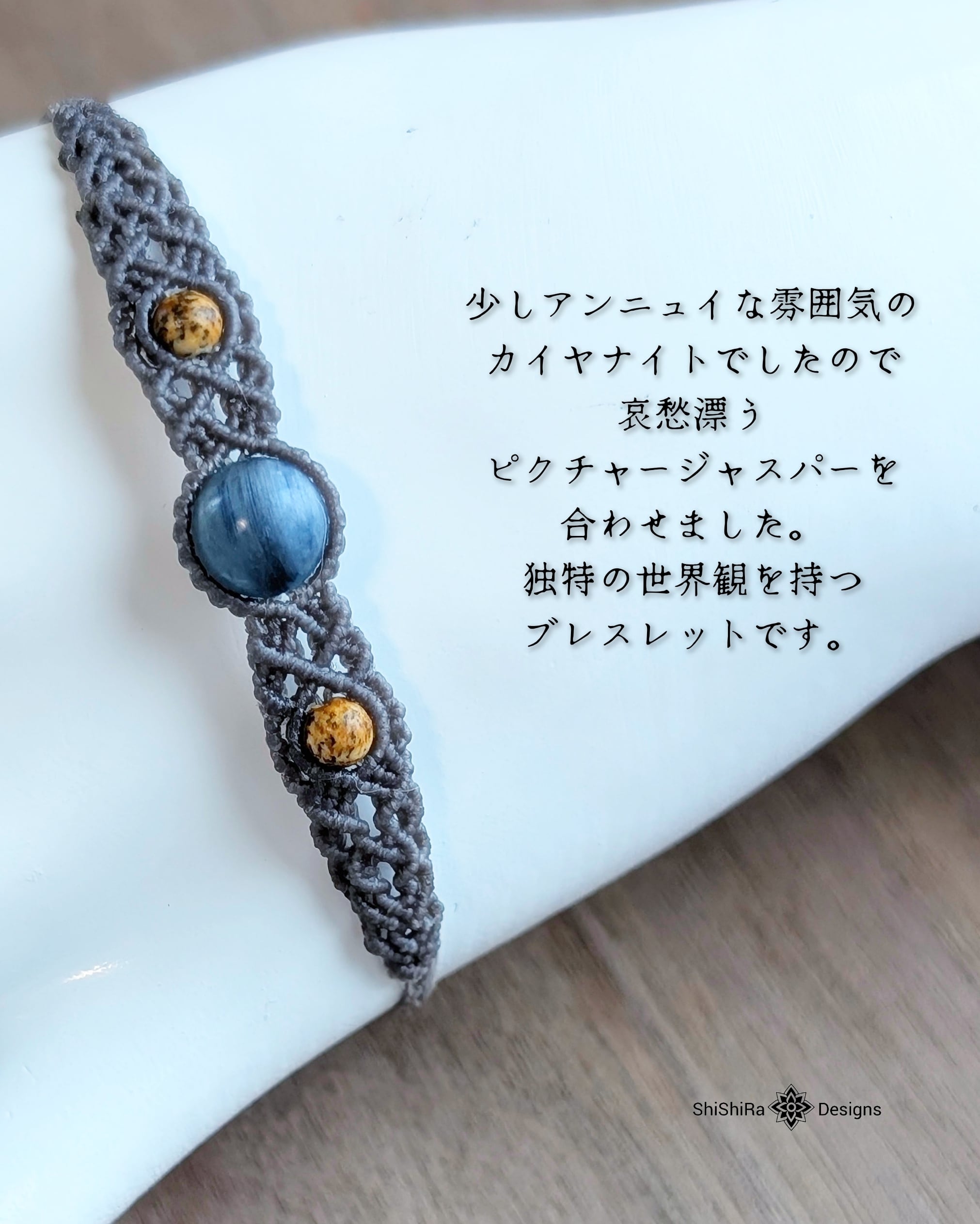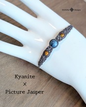 カイヤナイトとピクチャージャスパーのマクラメブレスレット [金属アレルギー対応]