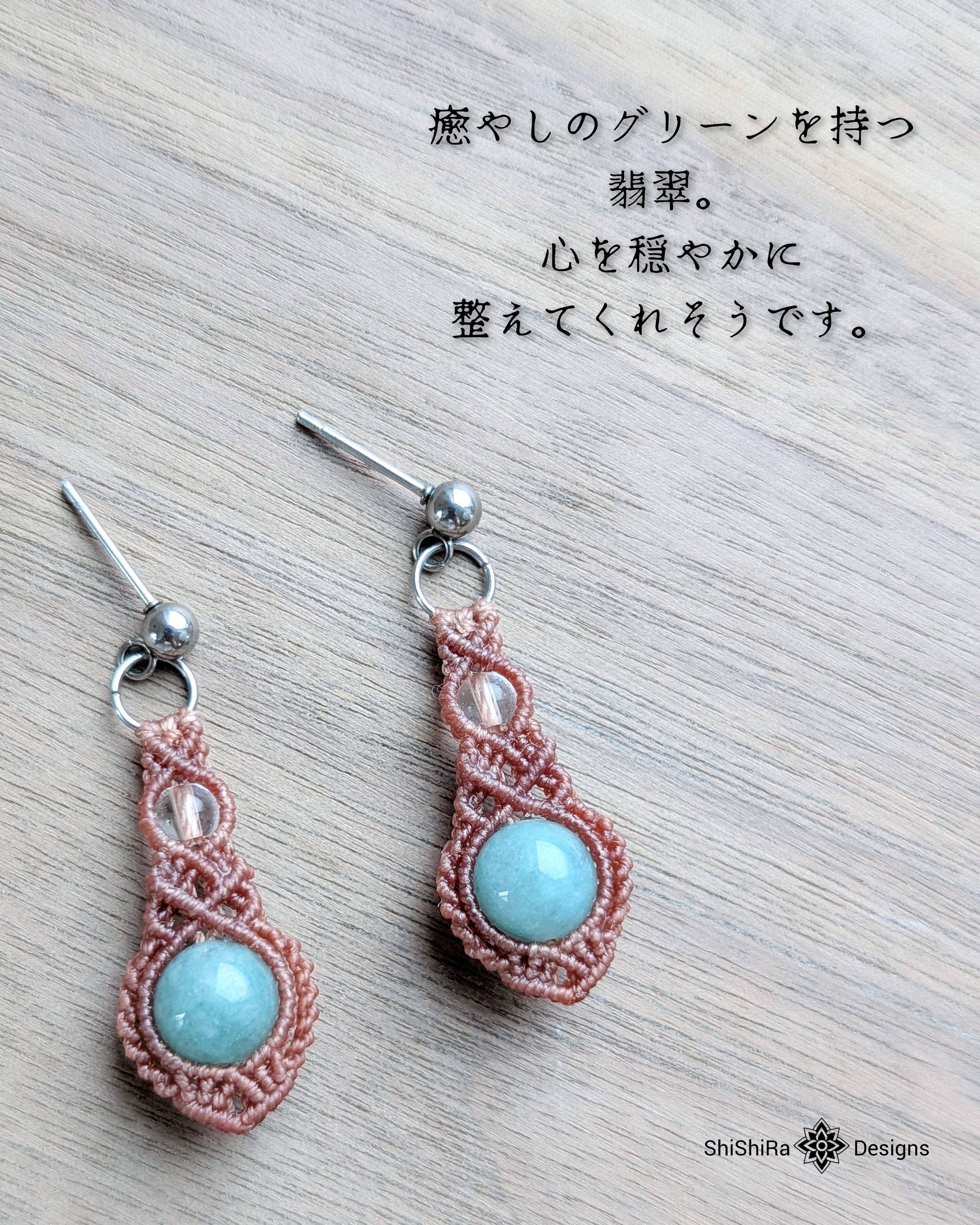 翡翠のオリジナルマクラメピアス ※パーツ変更無料