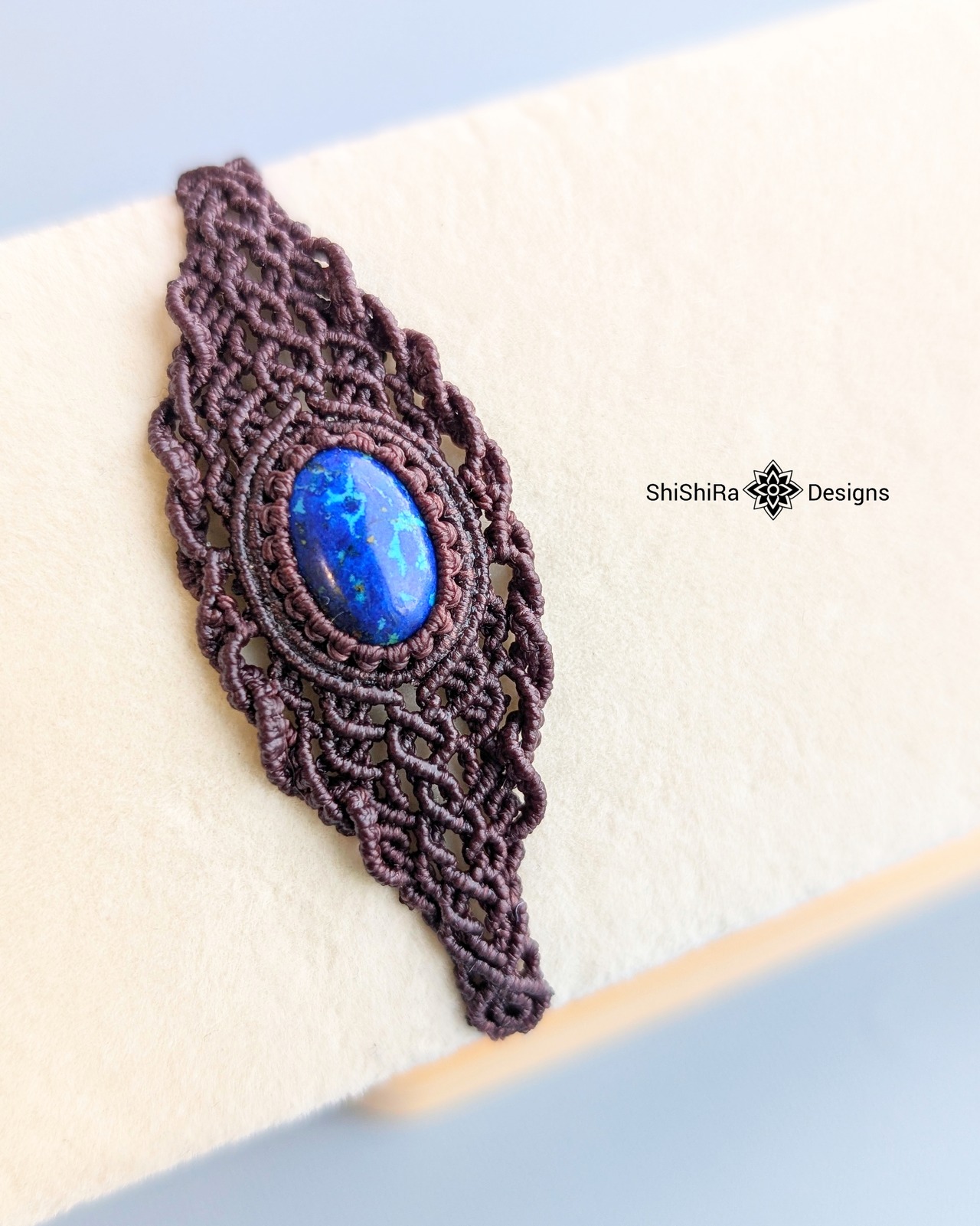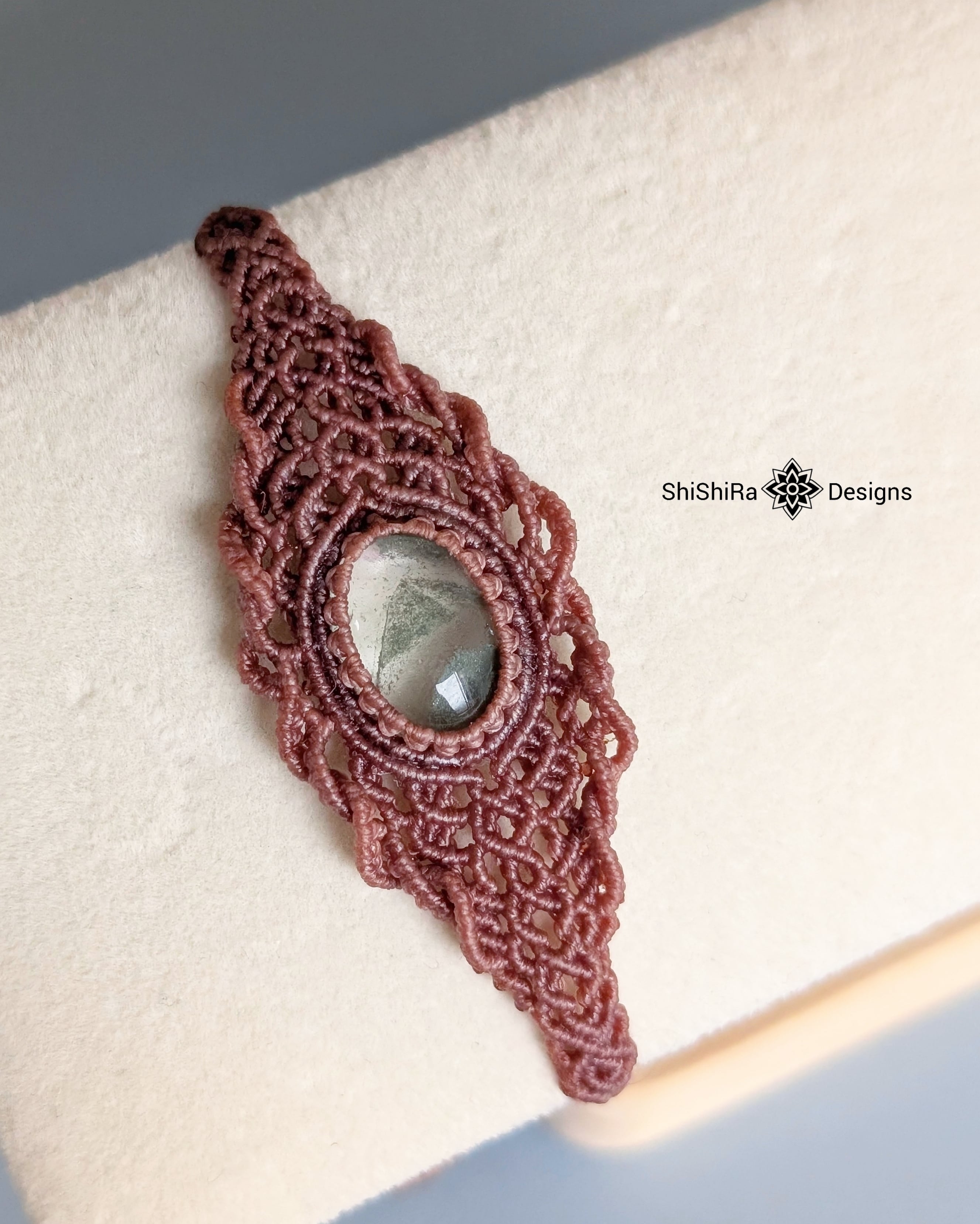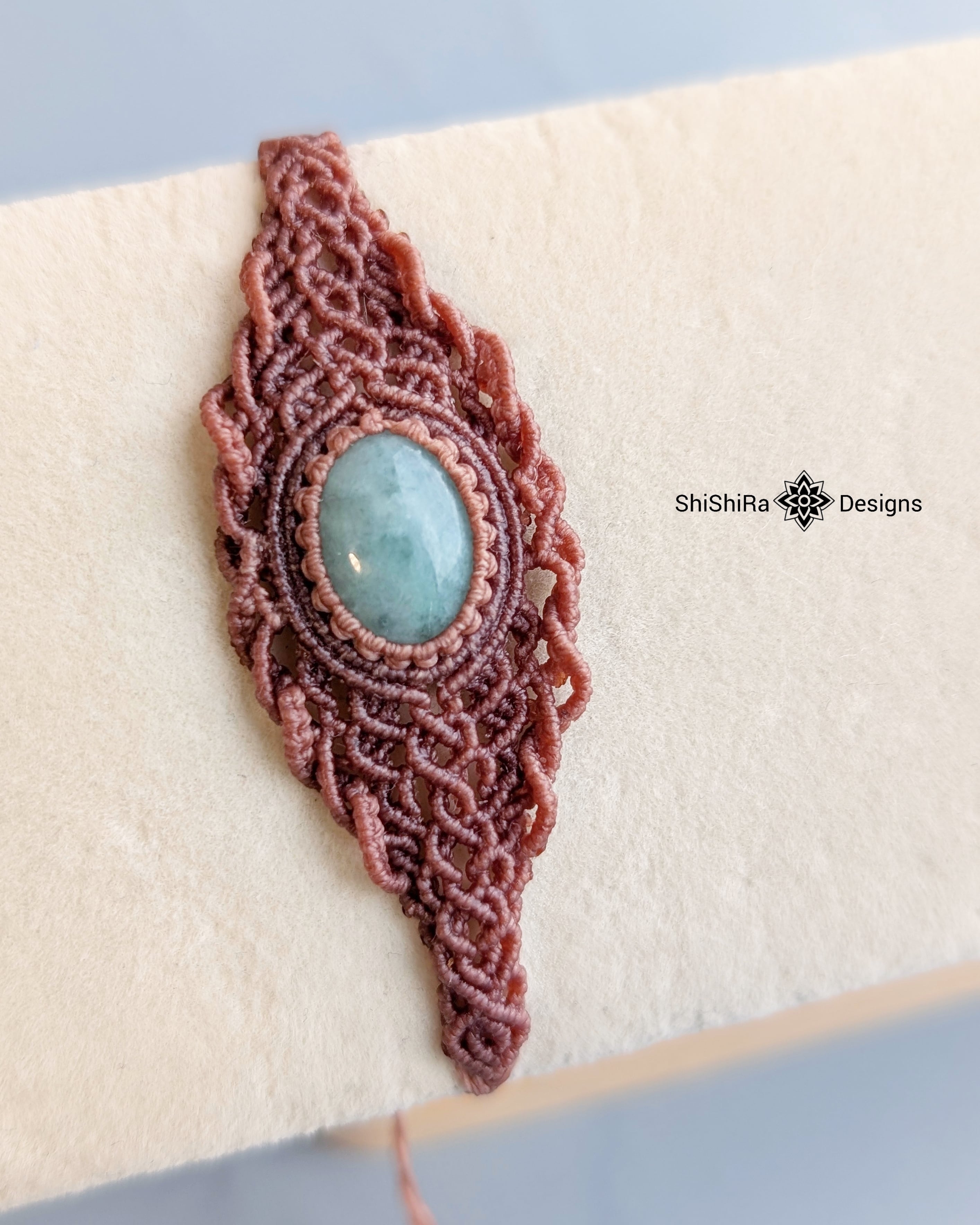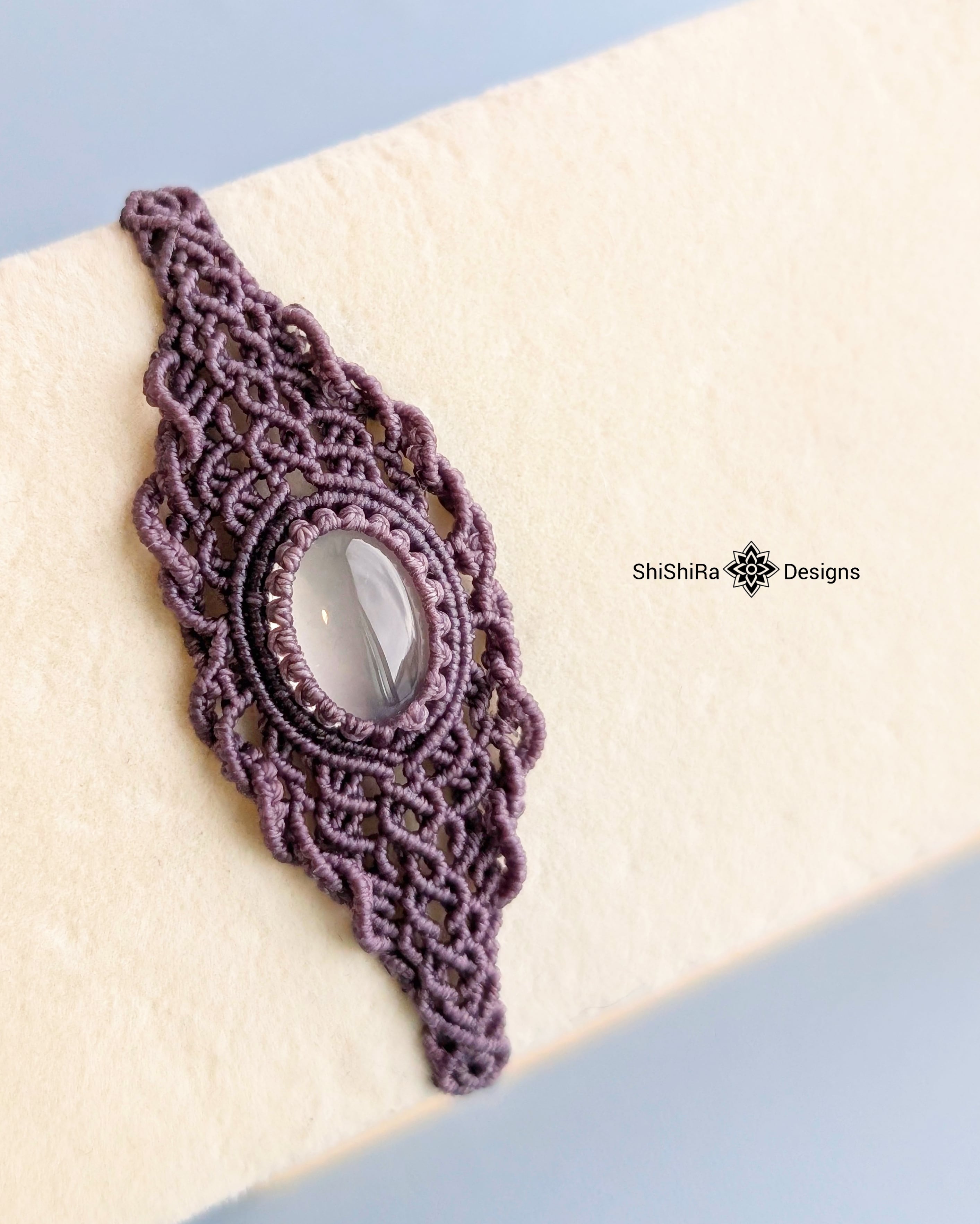アンティーク時計をイメージして、装飾を細かく入れ込んだマクラメ編みのブレスレット。