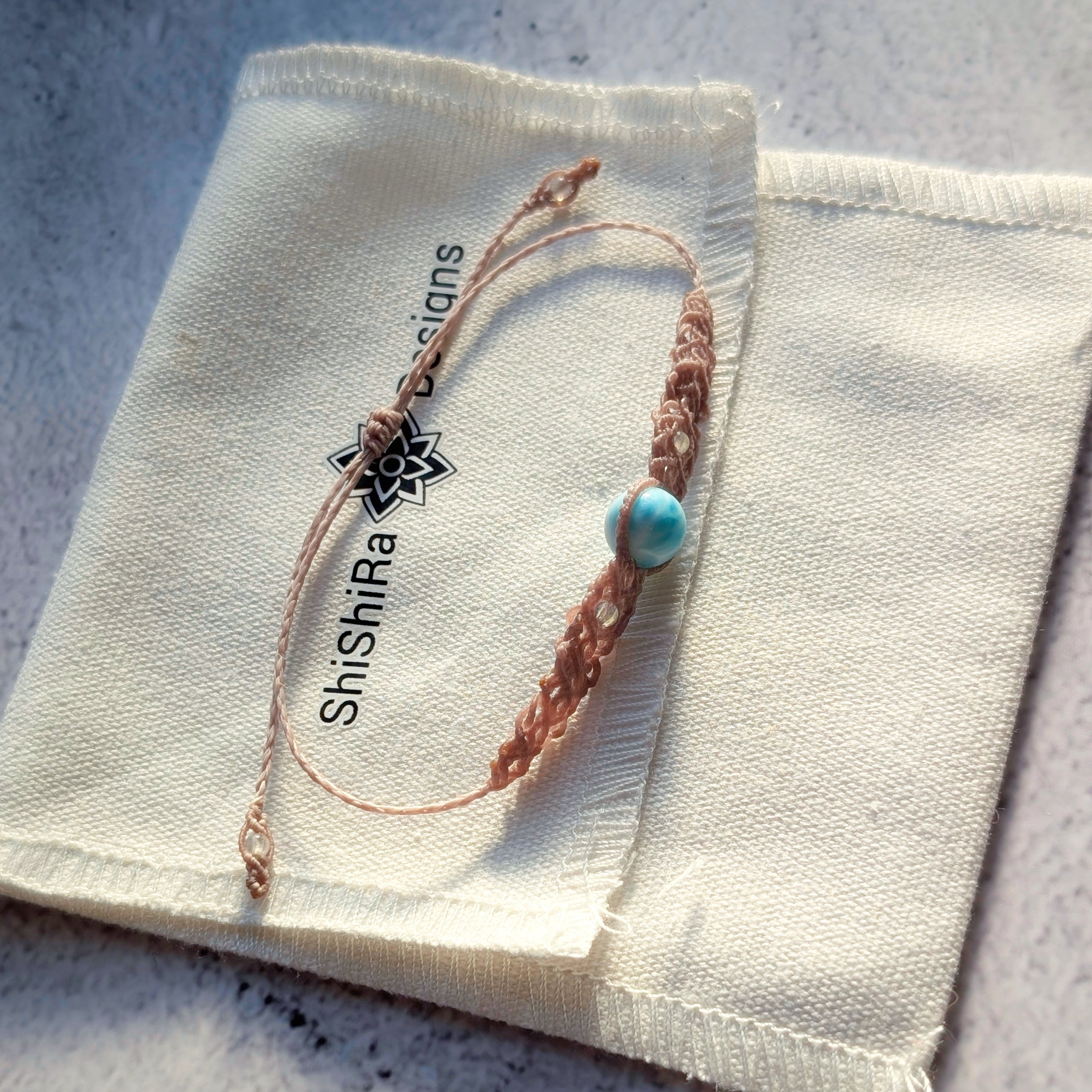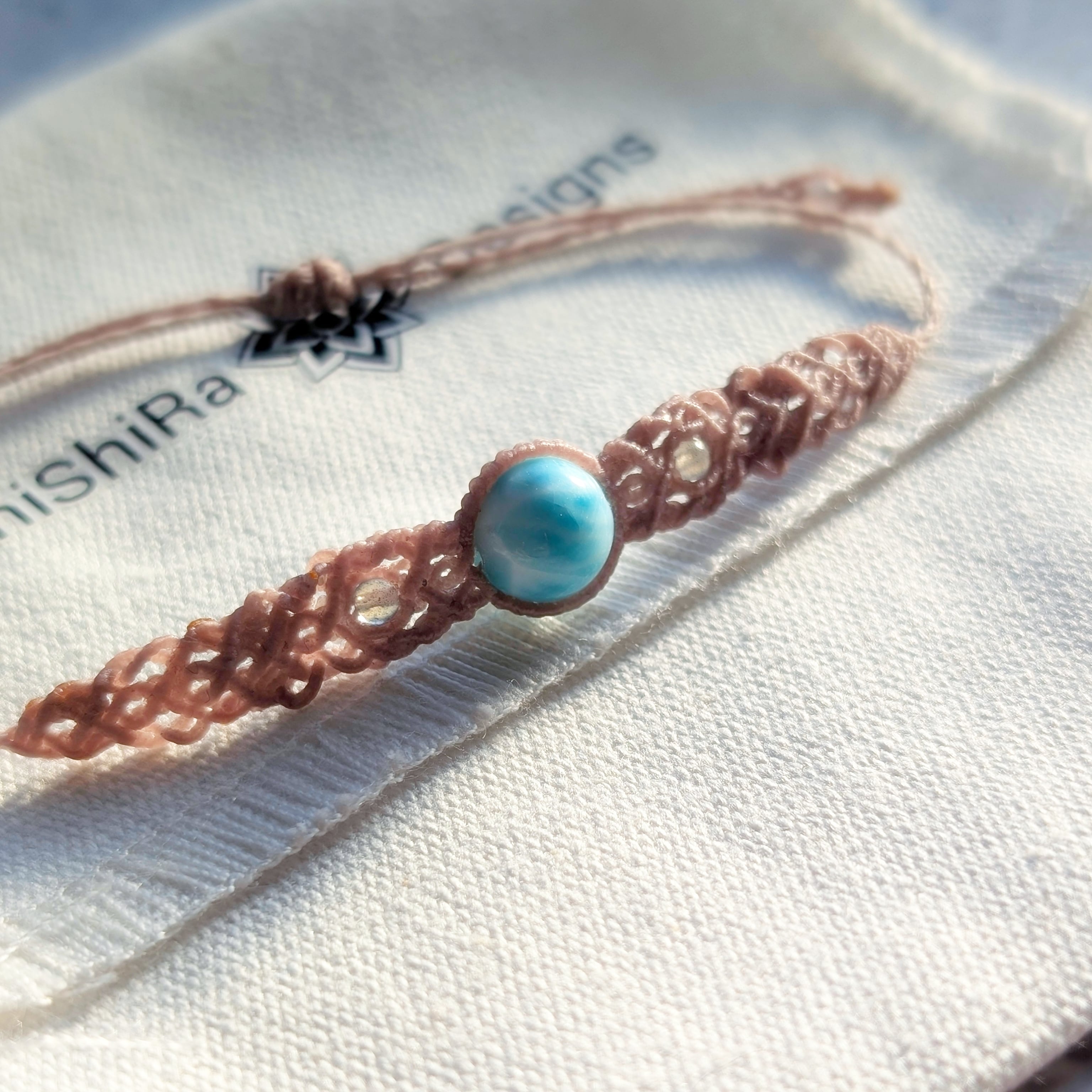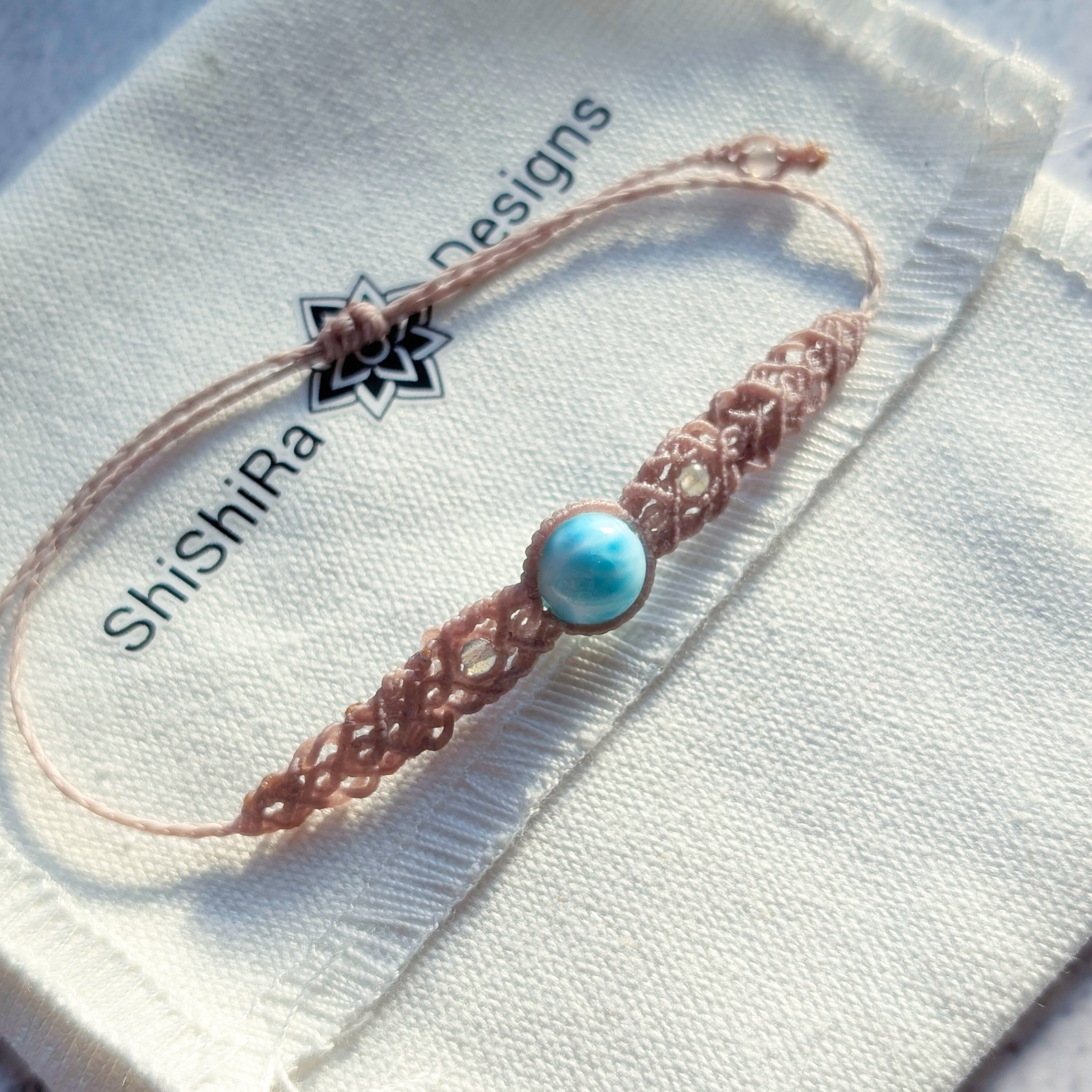 【ShiShiRa’s Premium】ラリマー×ラブラドライトのマクラメ編みブレスレット [金属アレルギー対応]
