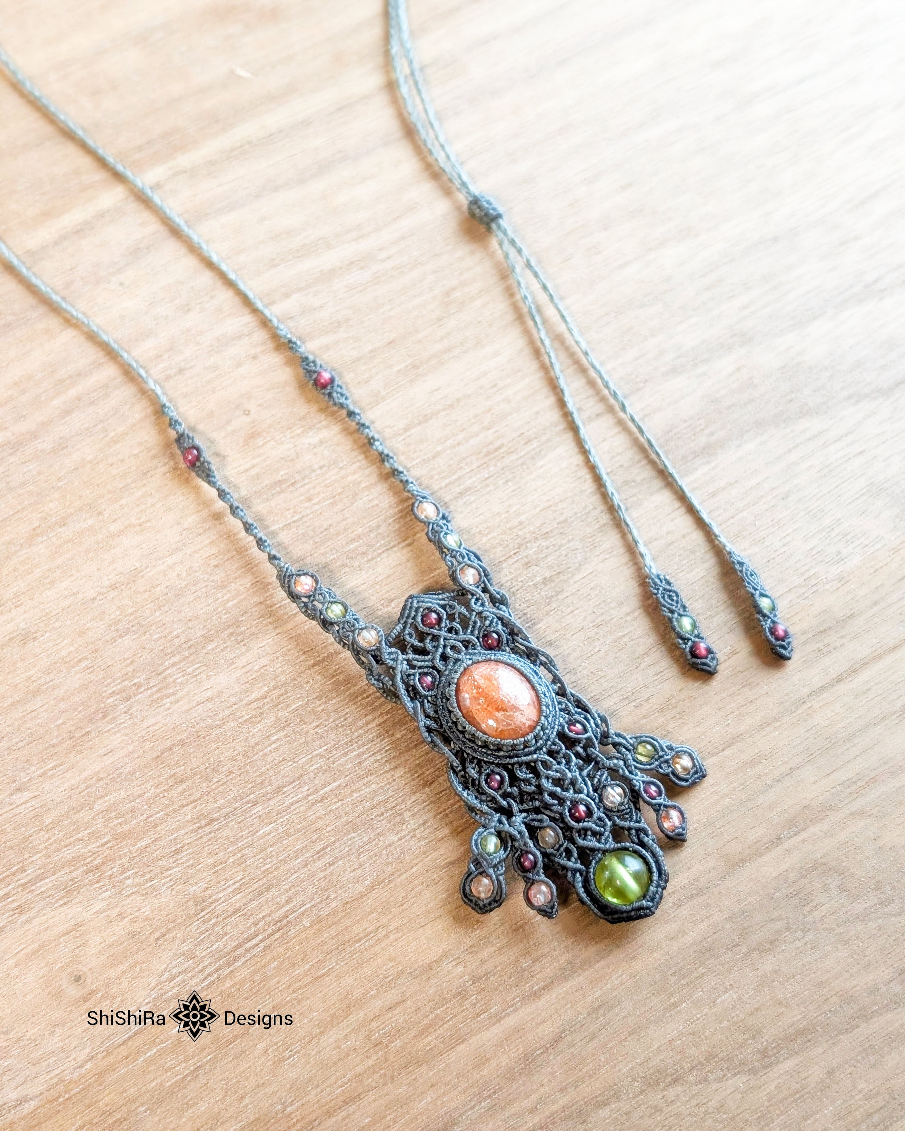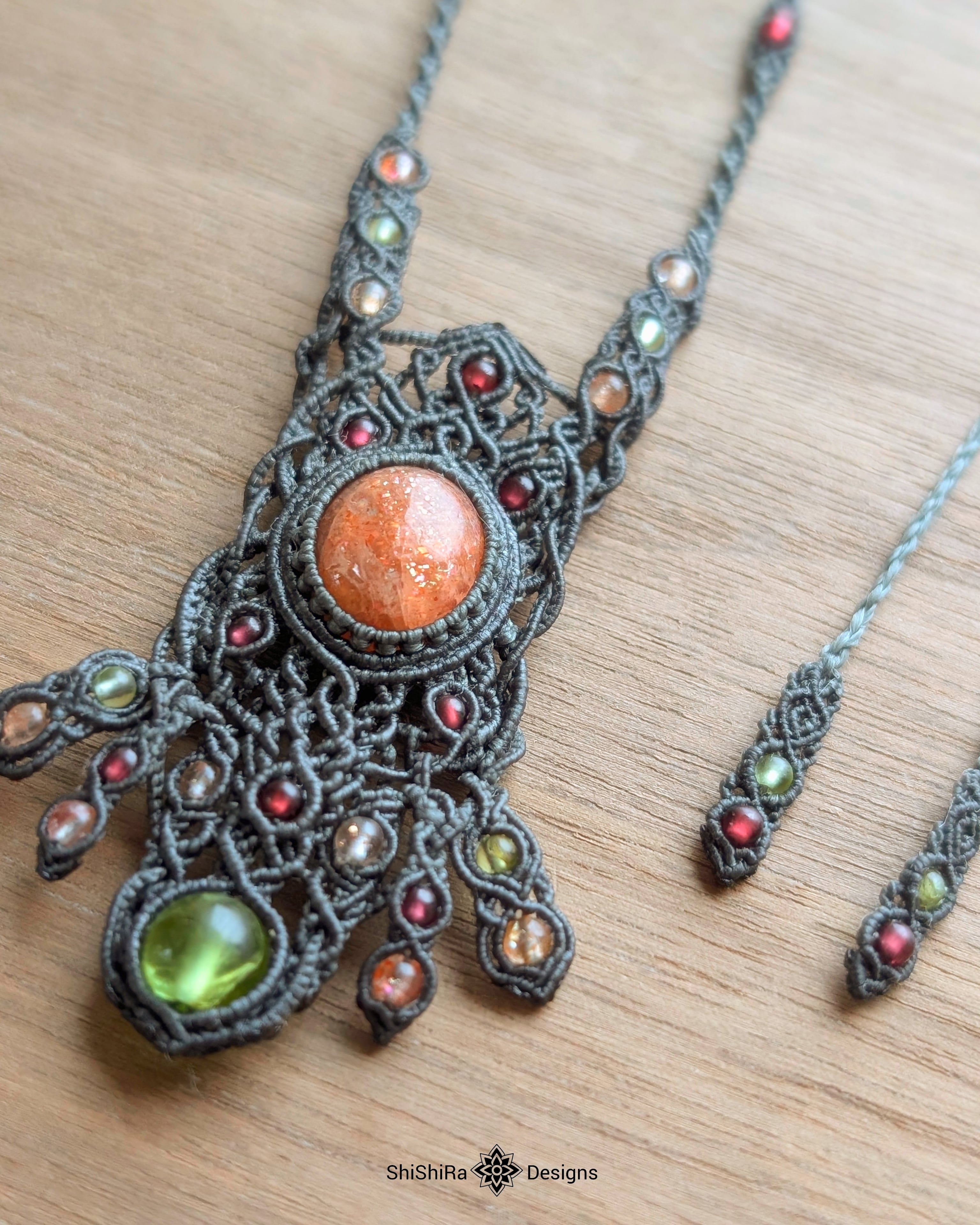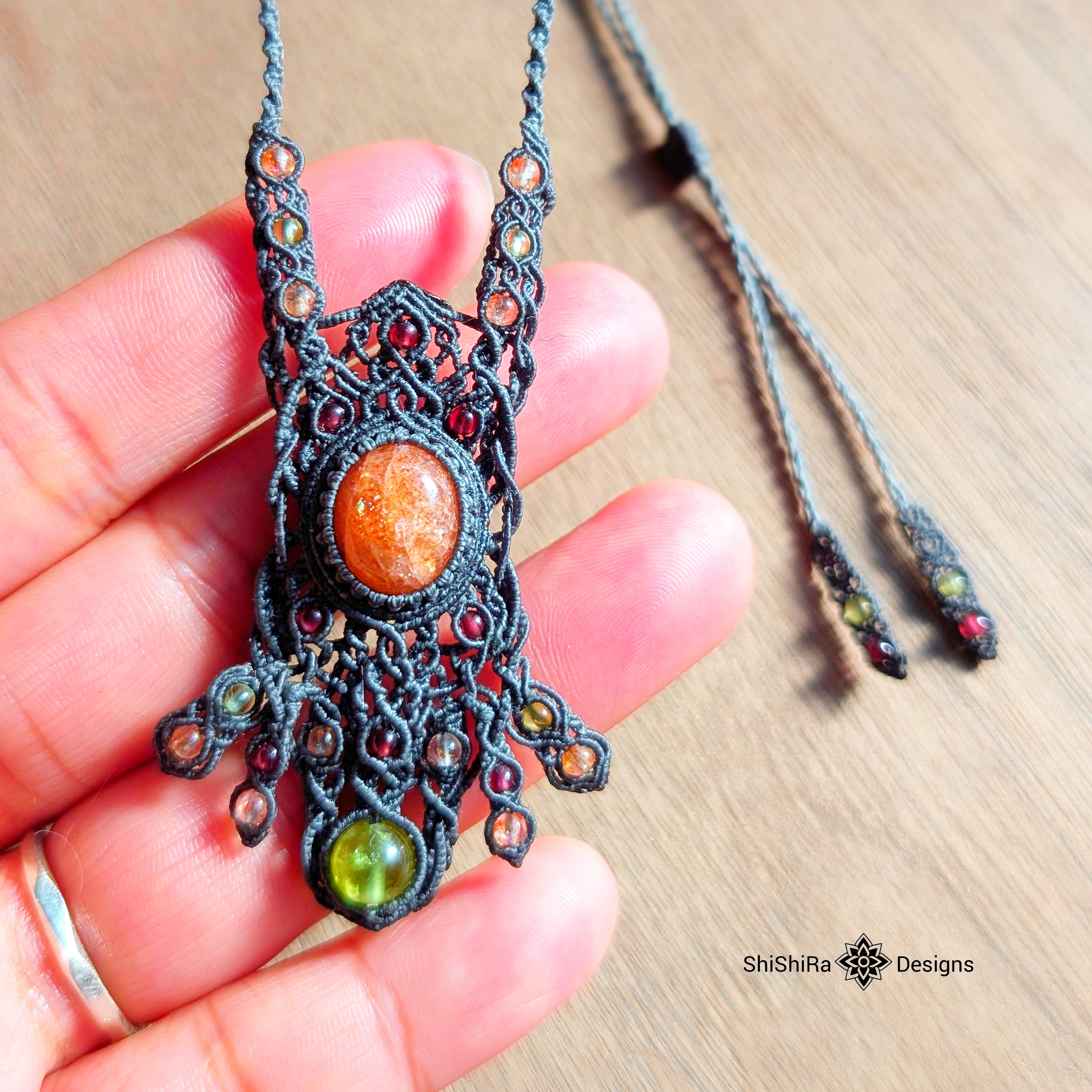 【Petite Spirits Collection〜小さな精霊コレクション】サンストーンとペリドットのジュエリーマクラメペンダント [金属アレルギー対応]