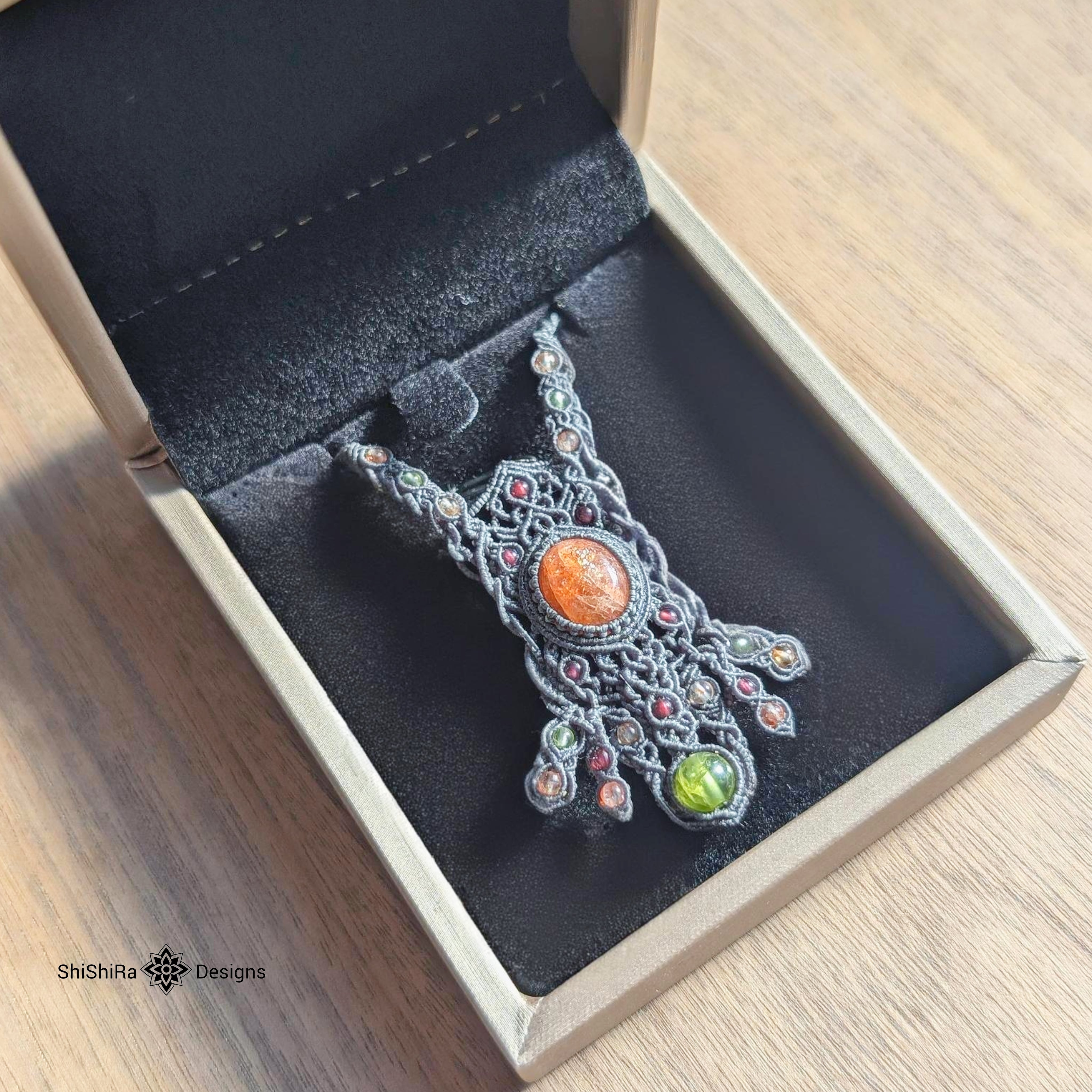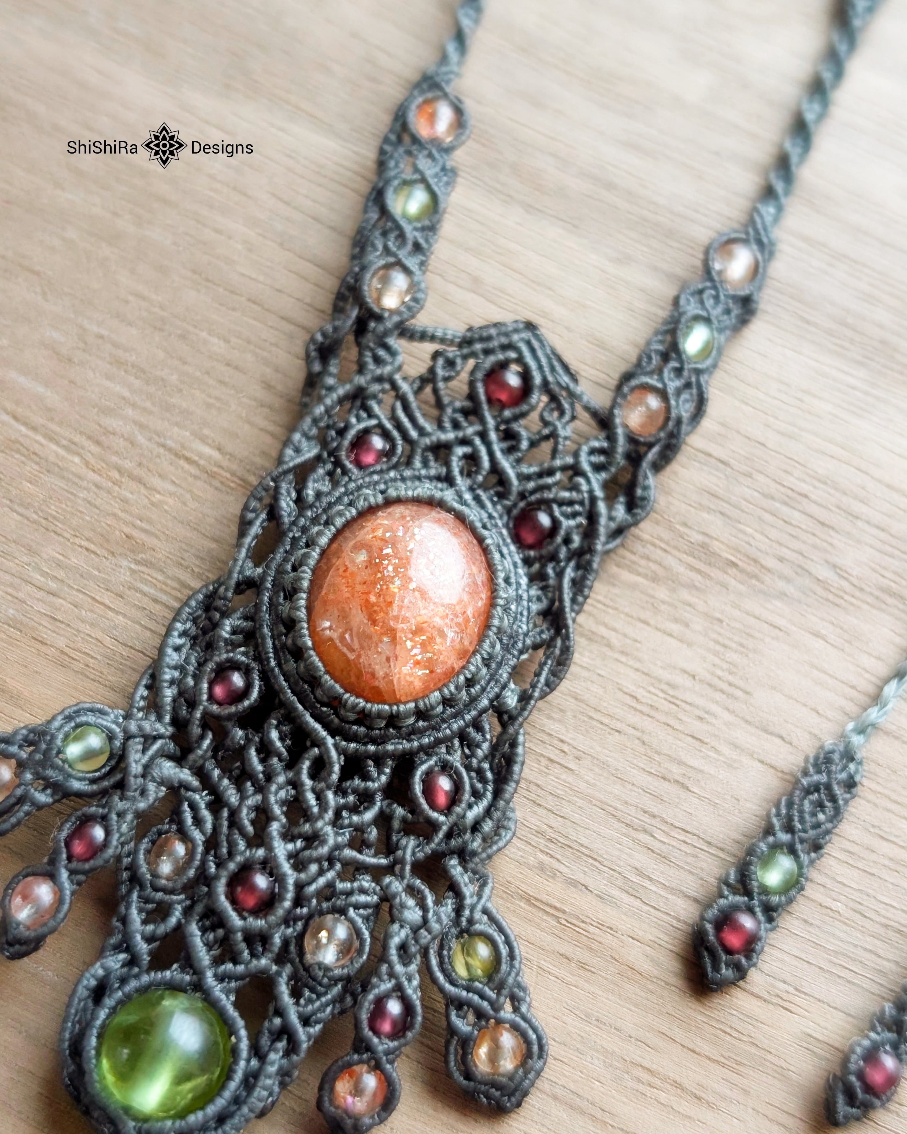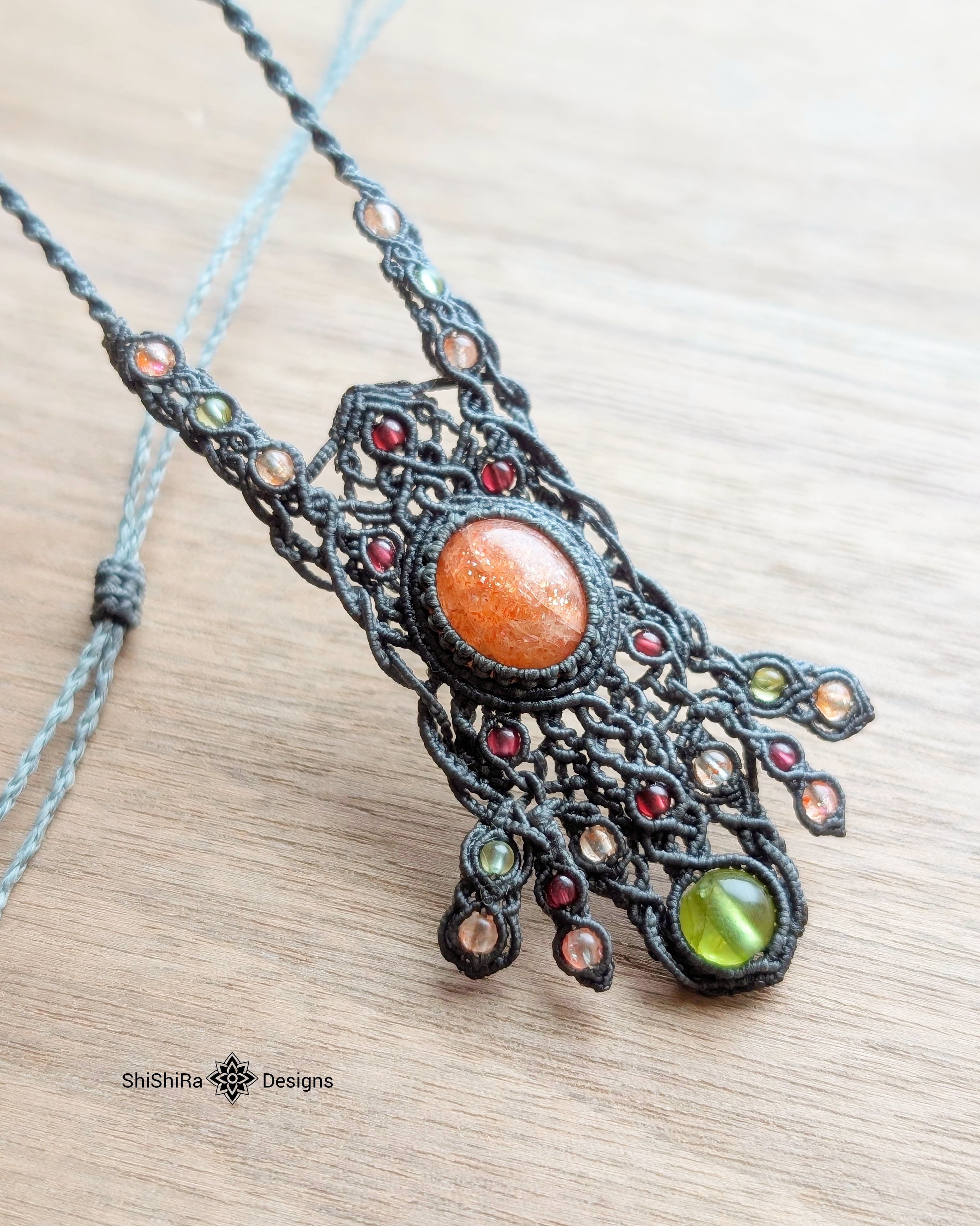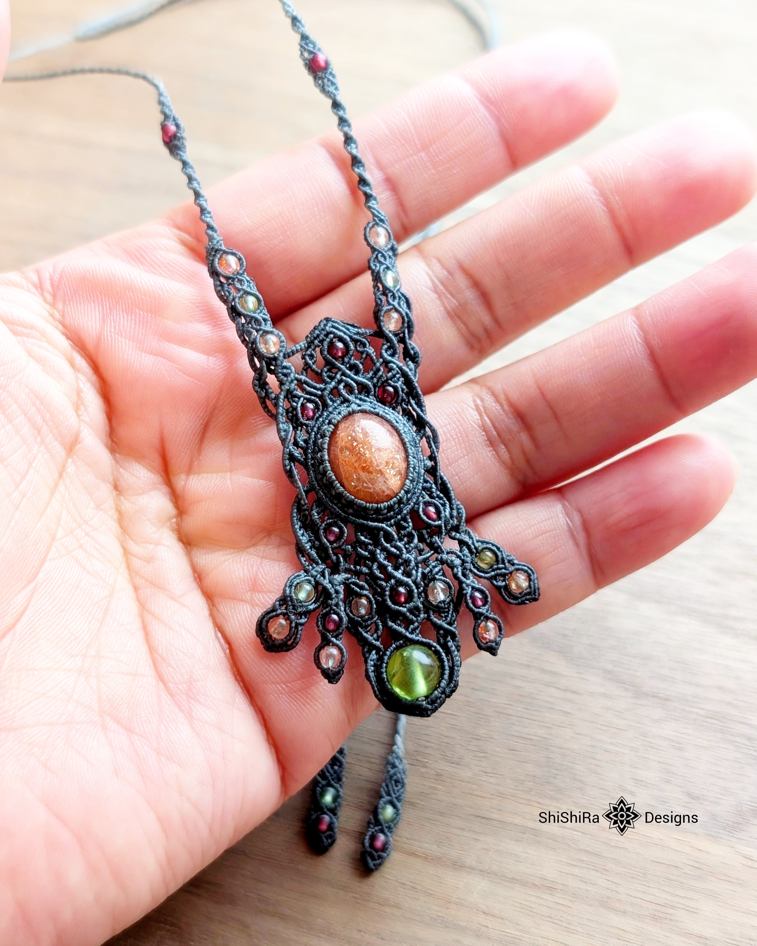 【Petite Spirits Collection〜小さな精霊コレクション】サンストーンとペリドットのジュエリーマクラメペンダント [金属アレルギー対応]