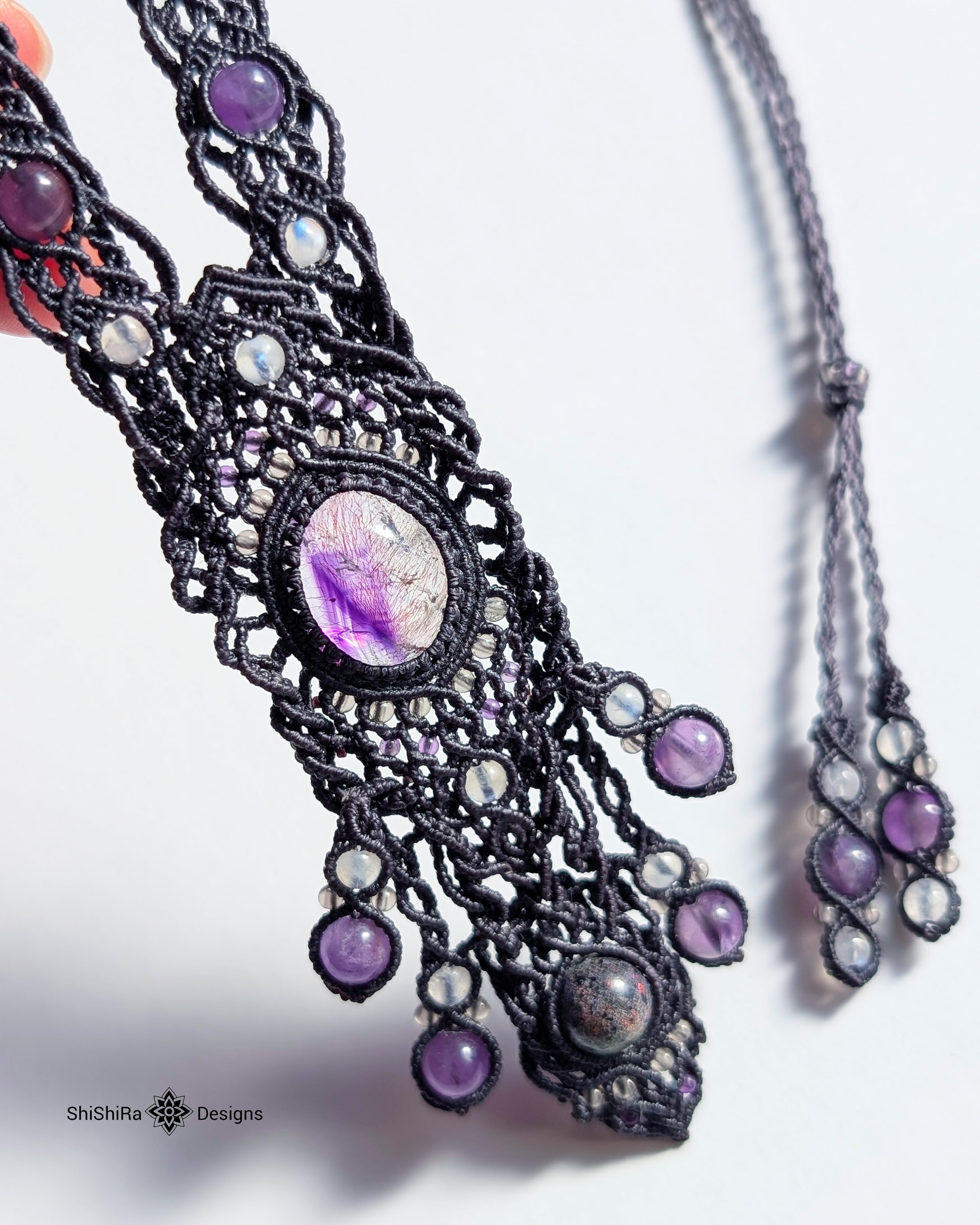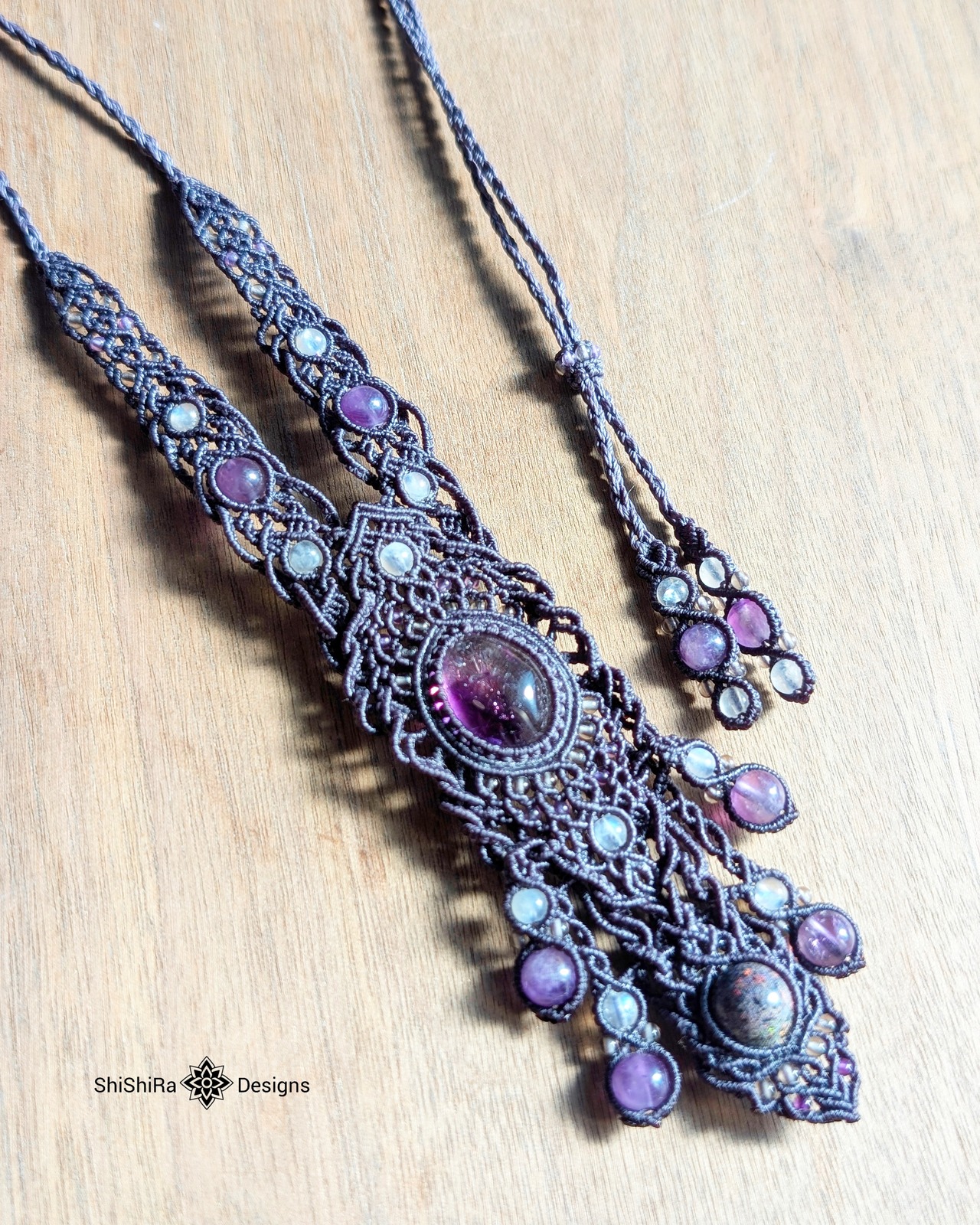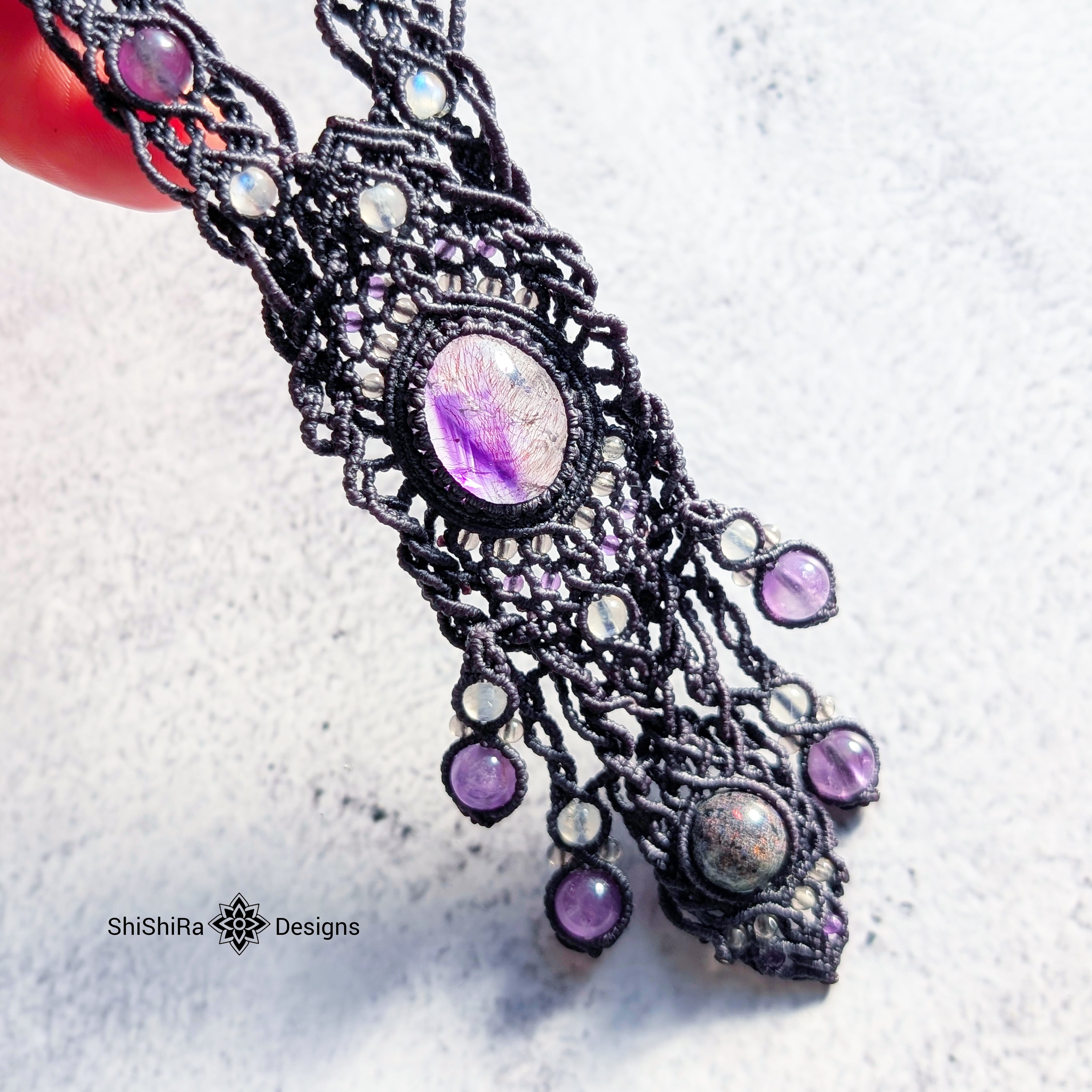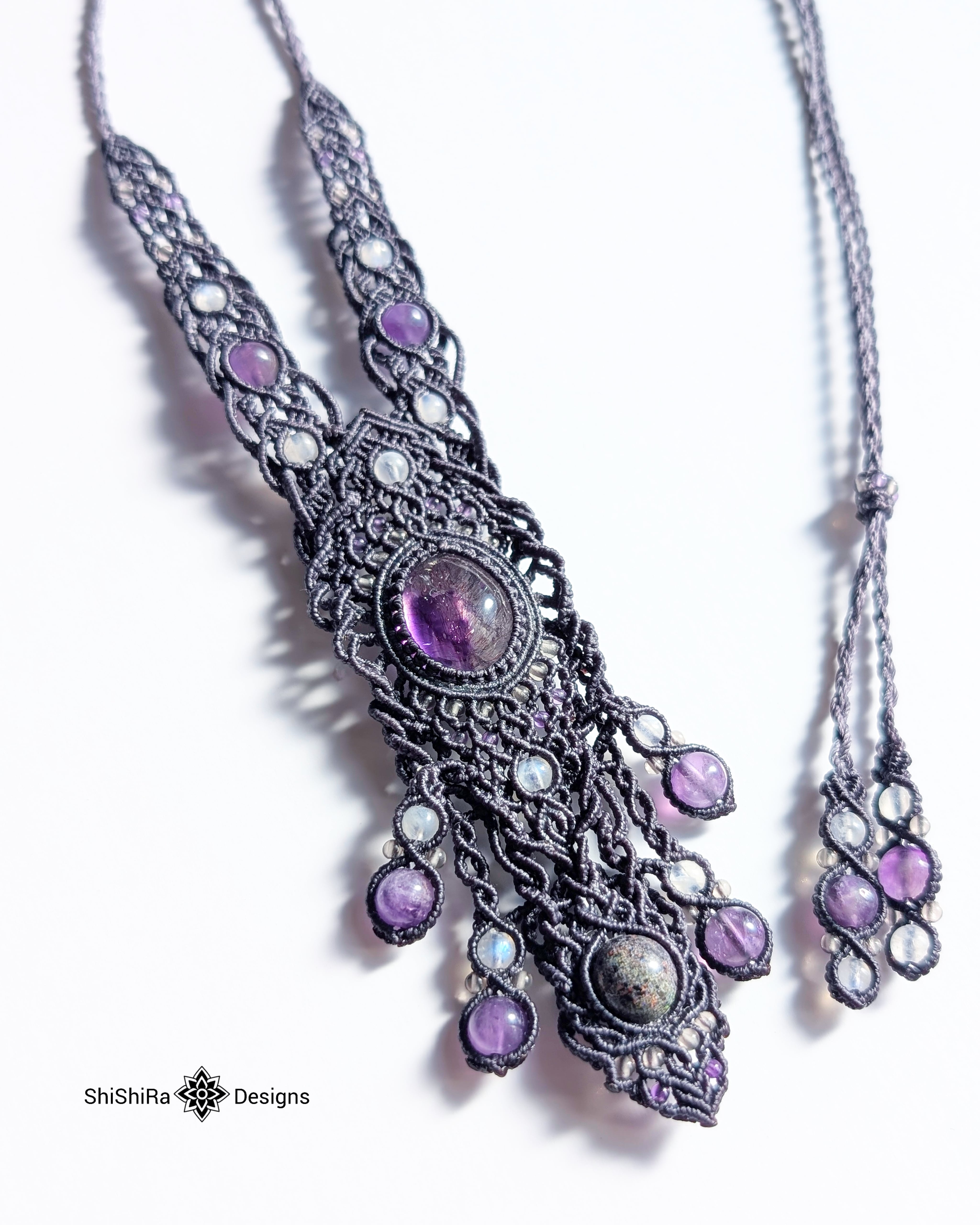 【ShiShiRa’s Premium Collection】スーパーセブンとマトリクスオパールのジュエリーマクラメネックレス [金属アレルギー対応]