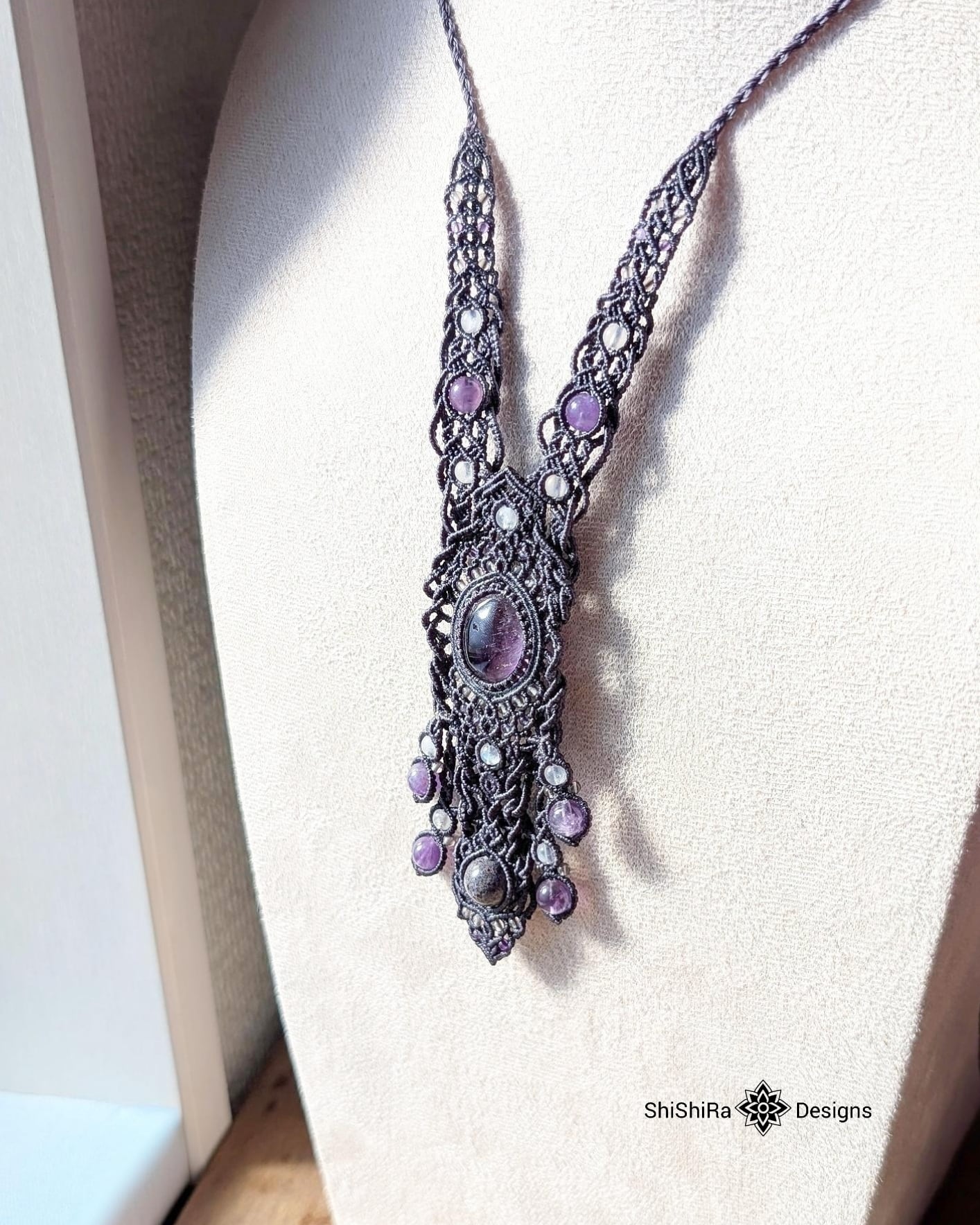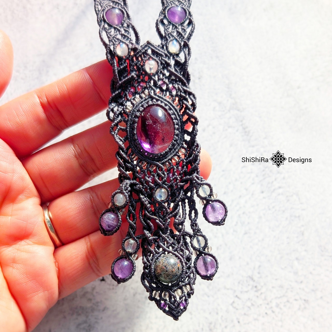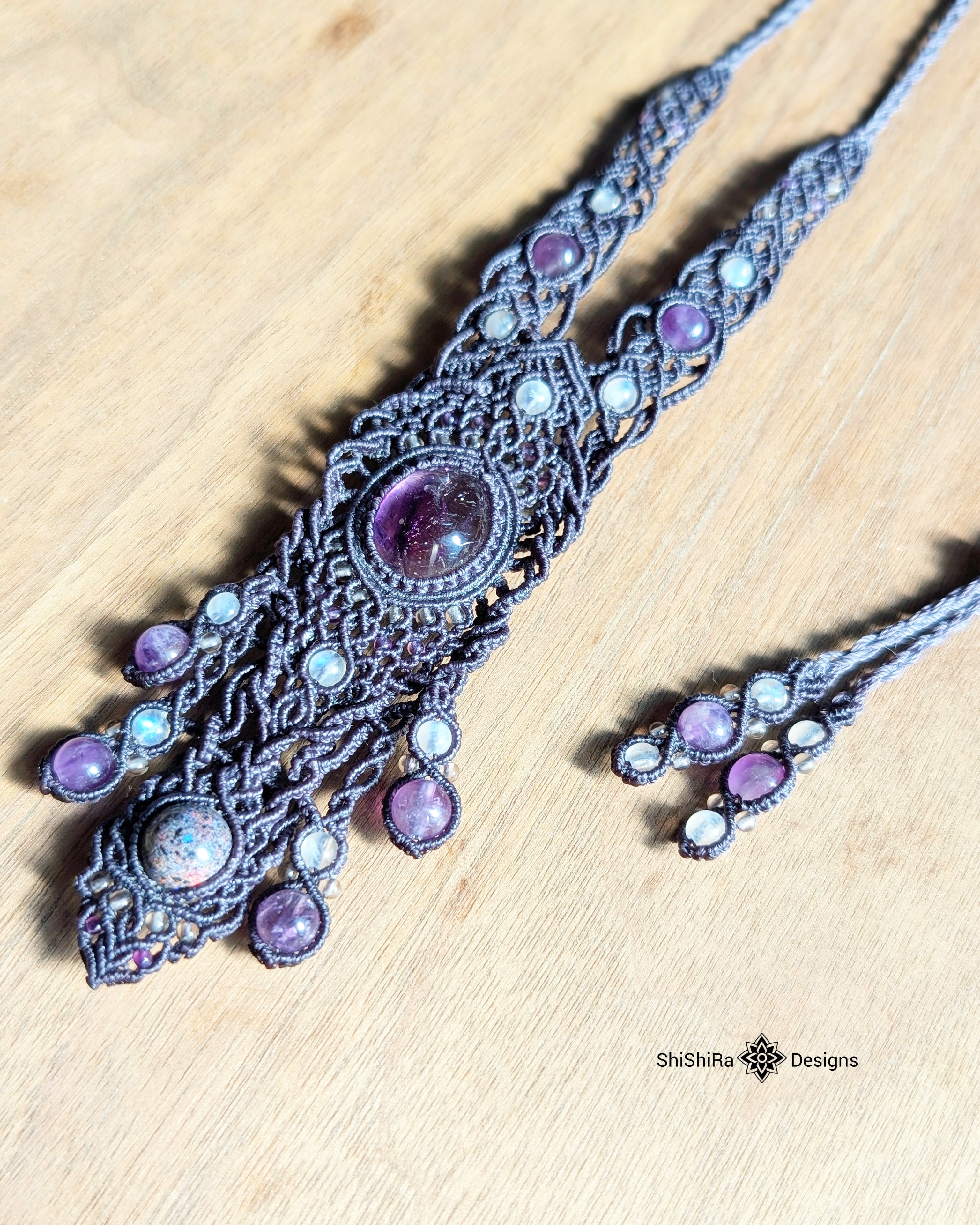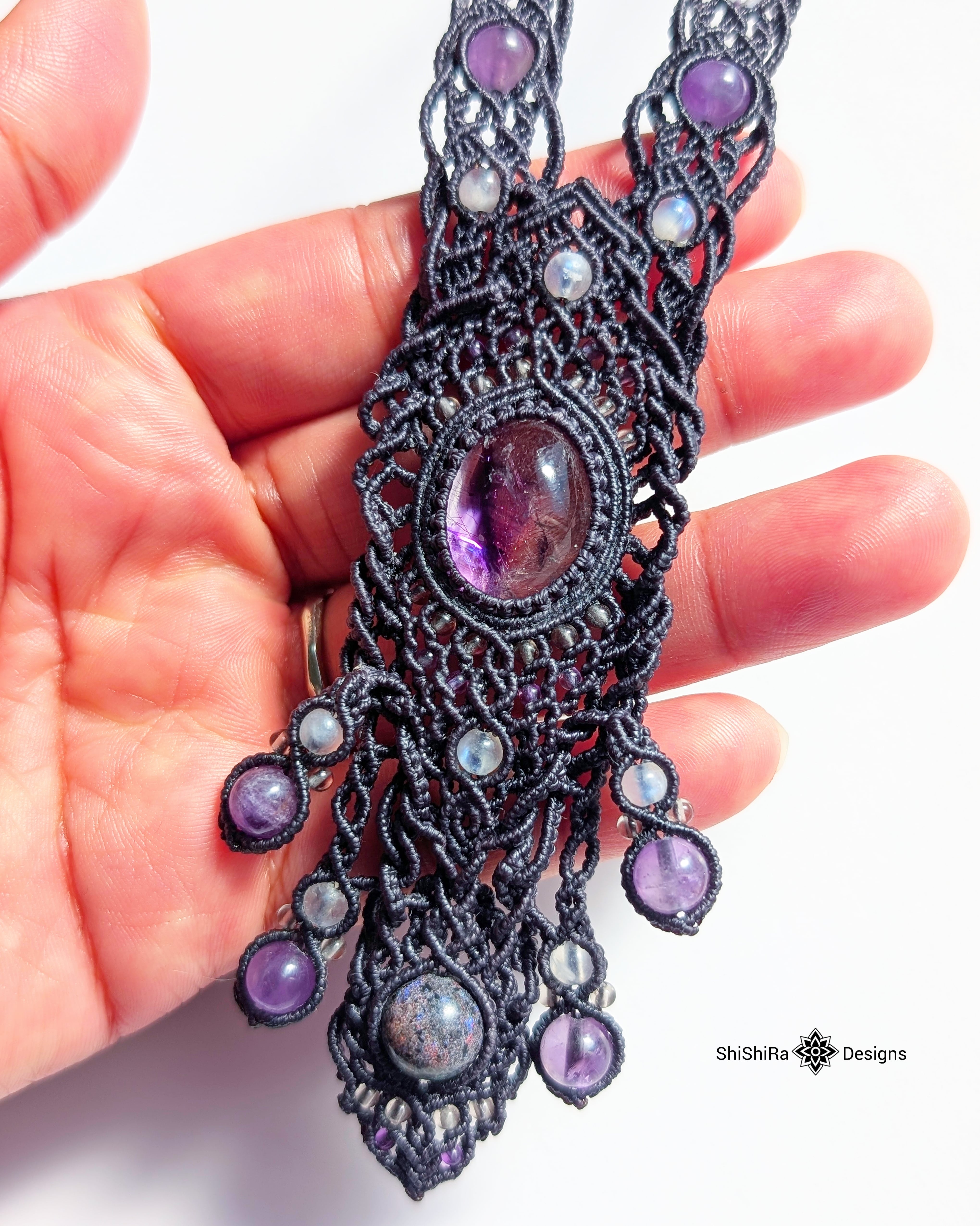 【ShiShiRa’s Premium Collection】スーパーセブンとマトリクスオパールのジュエリーマクラメネックレス [金属アレルギー対応]