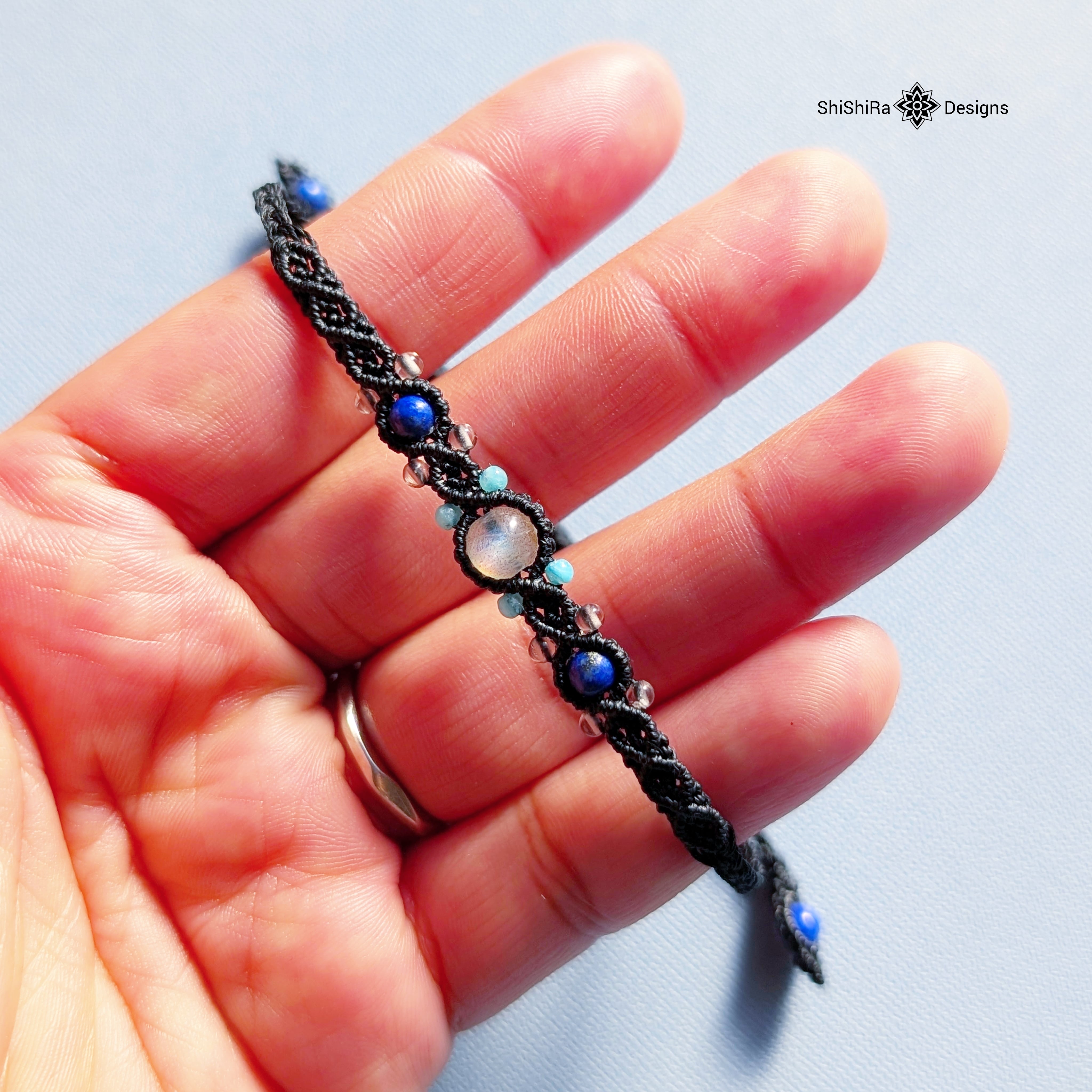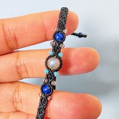 ラピスラズリも合わせて、黒のワックスコードで編み込むことでオトナな仕上がりです。